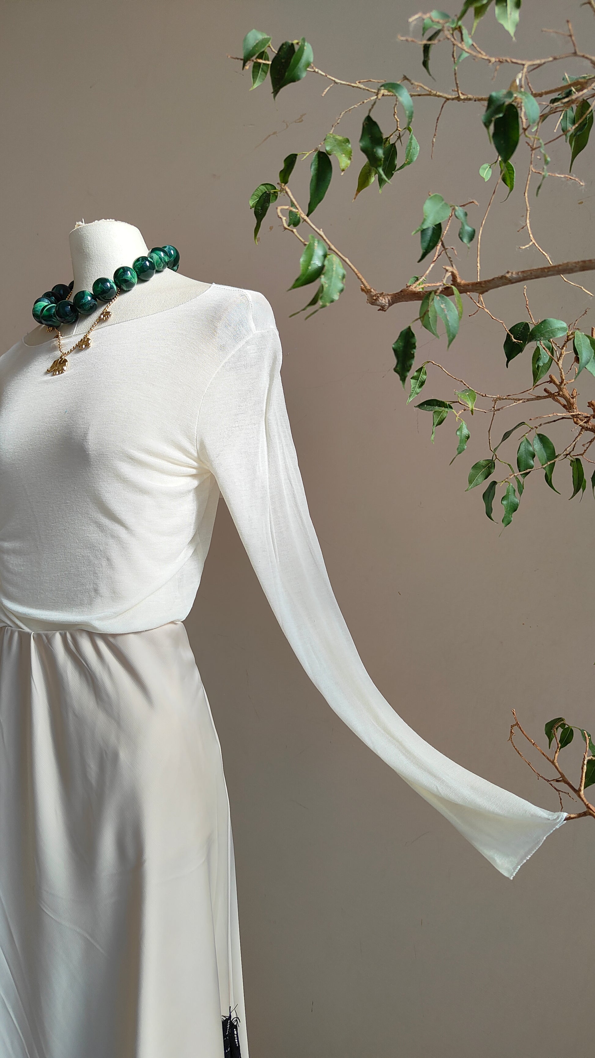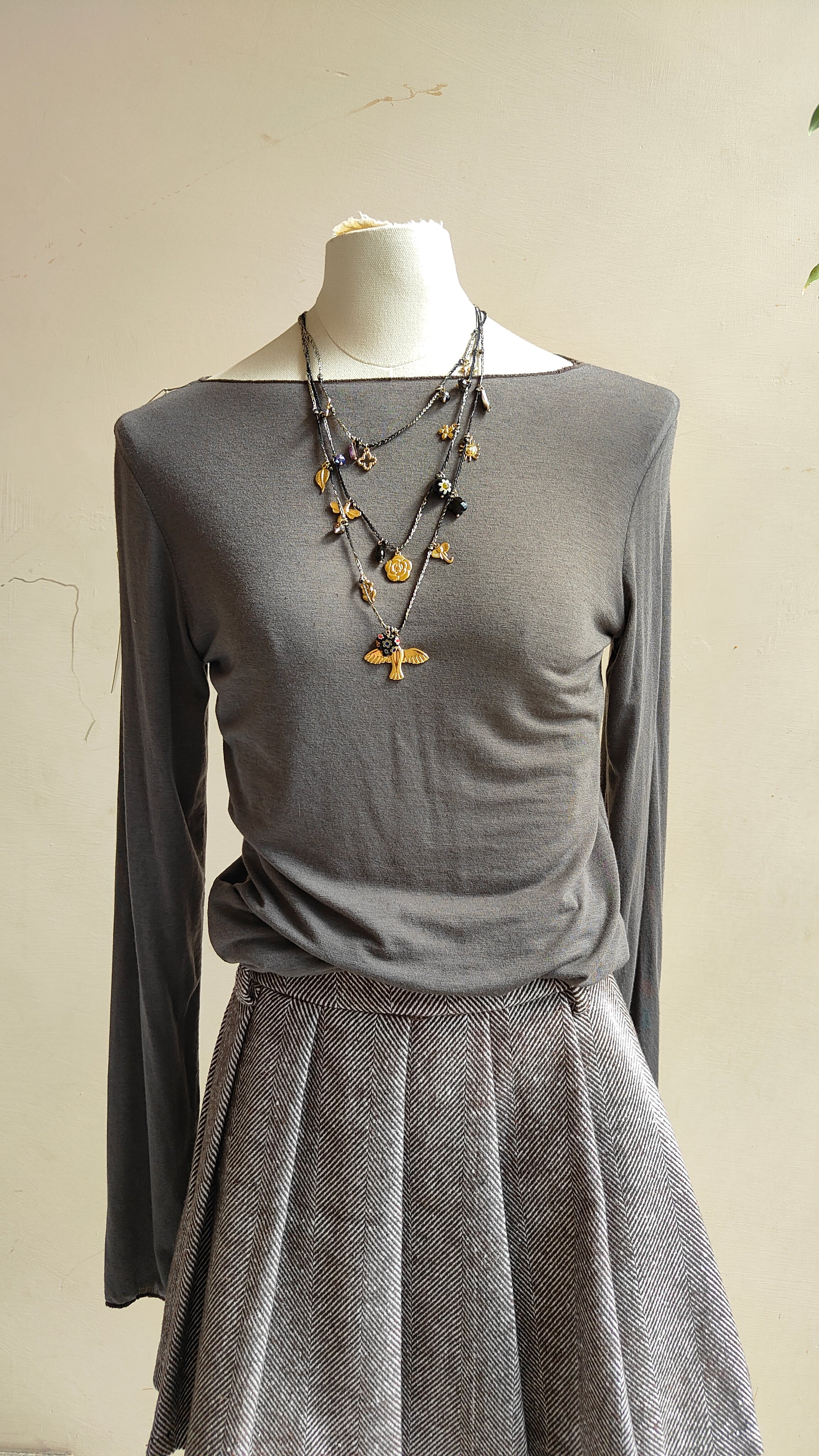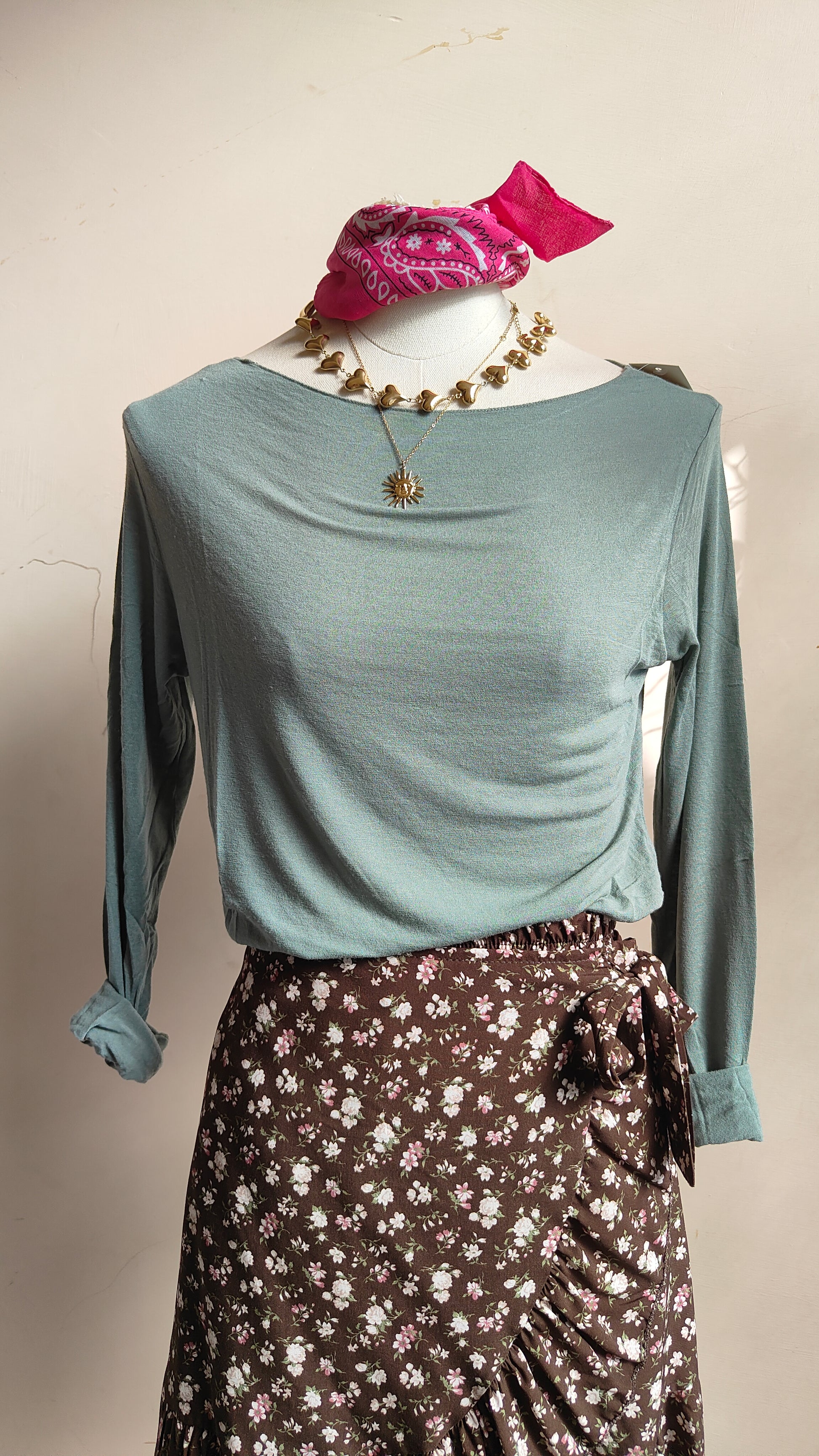 Una maglia dal taglio essenziale e raffinato, perfetta come base per costruire look versatili e contemporanei. La linea semplice e la morbidezza del tessuto la rendono un capo immancabile nel guardaroba quotidiano. Grazie alla sua vestibilità comoda ed elegante, è ideale da indossare con gonne, pantaloni sartoriali o sotto giacche e cardigan.