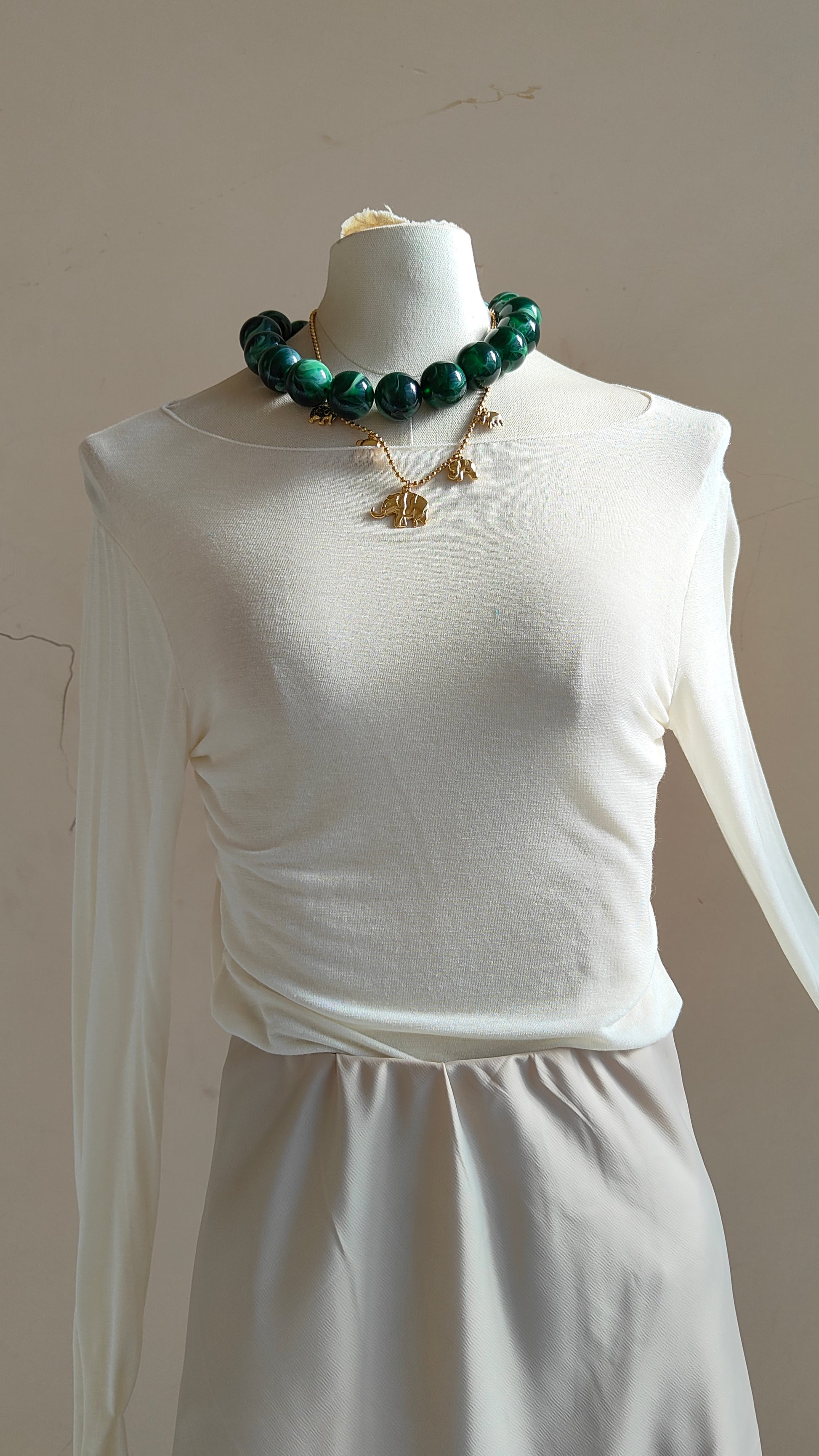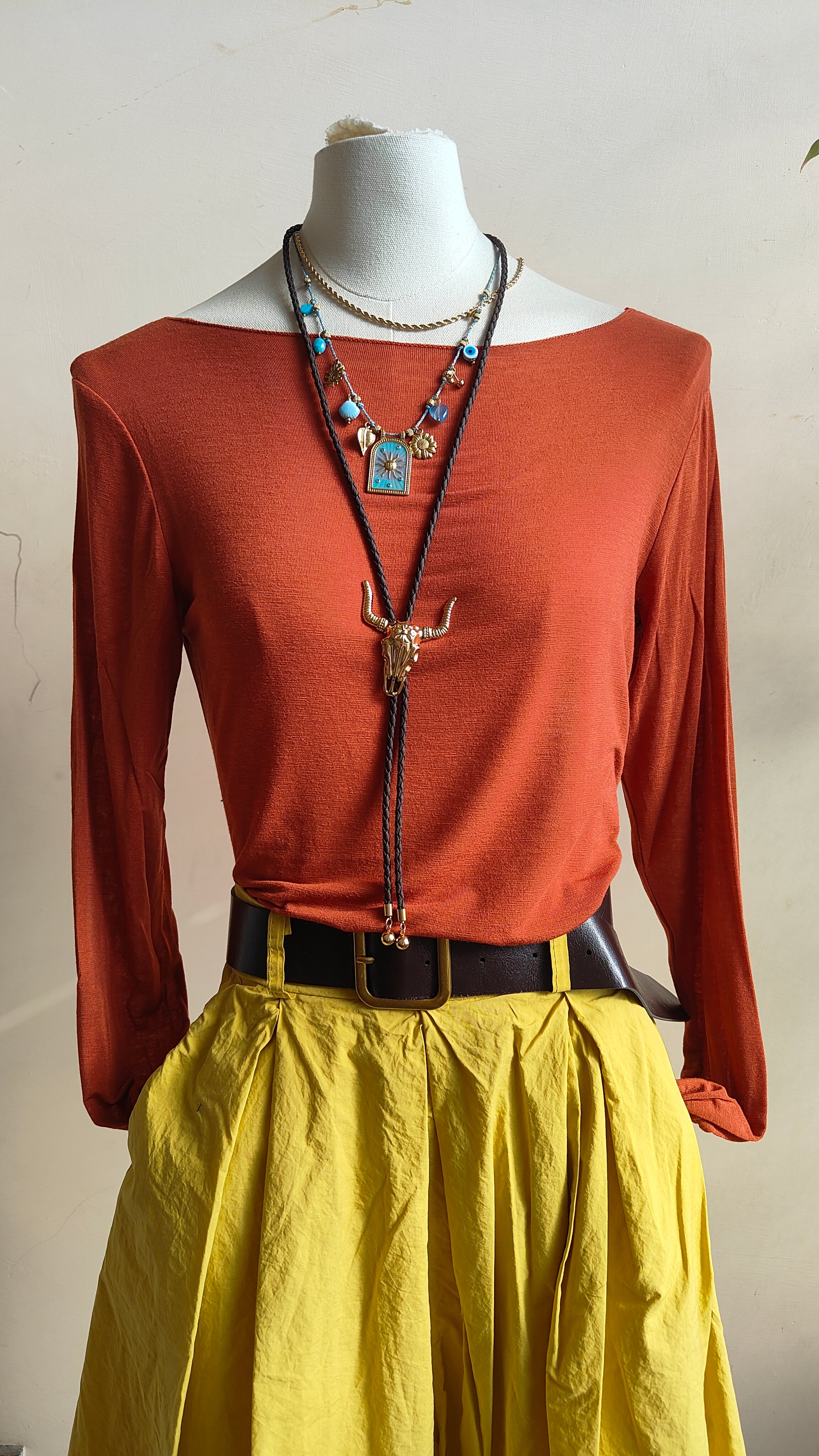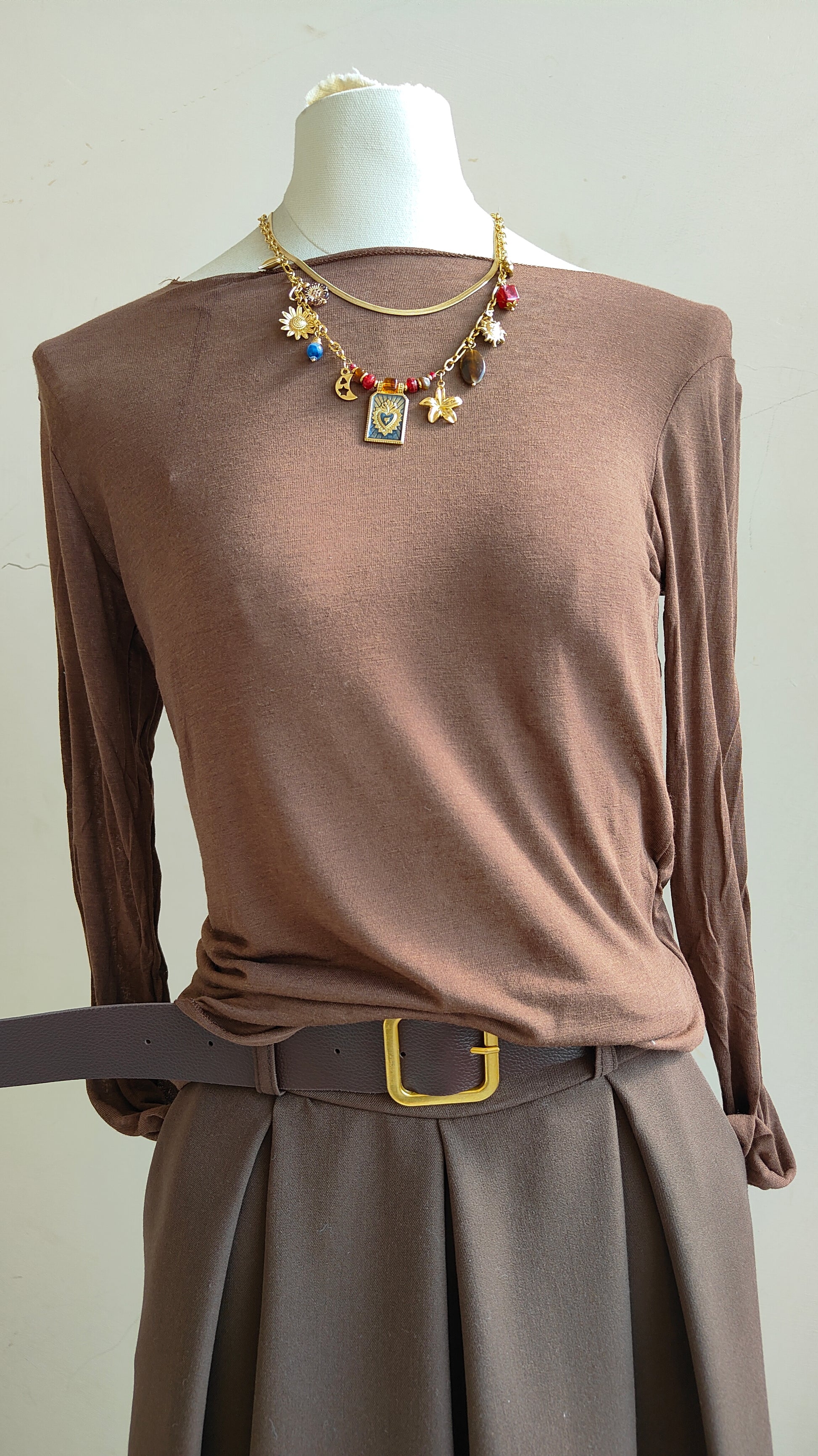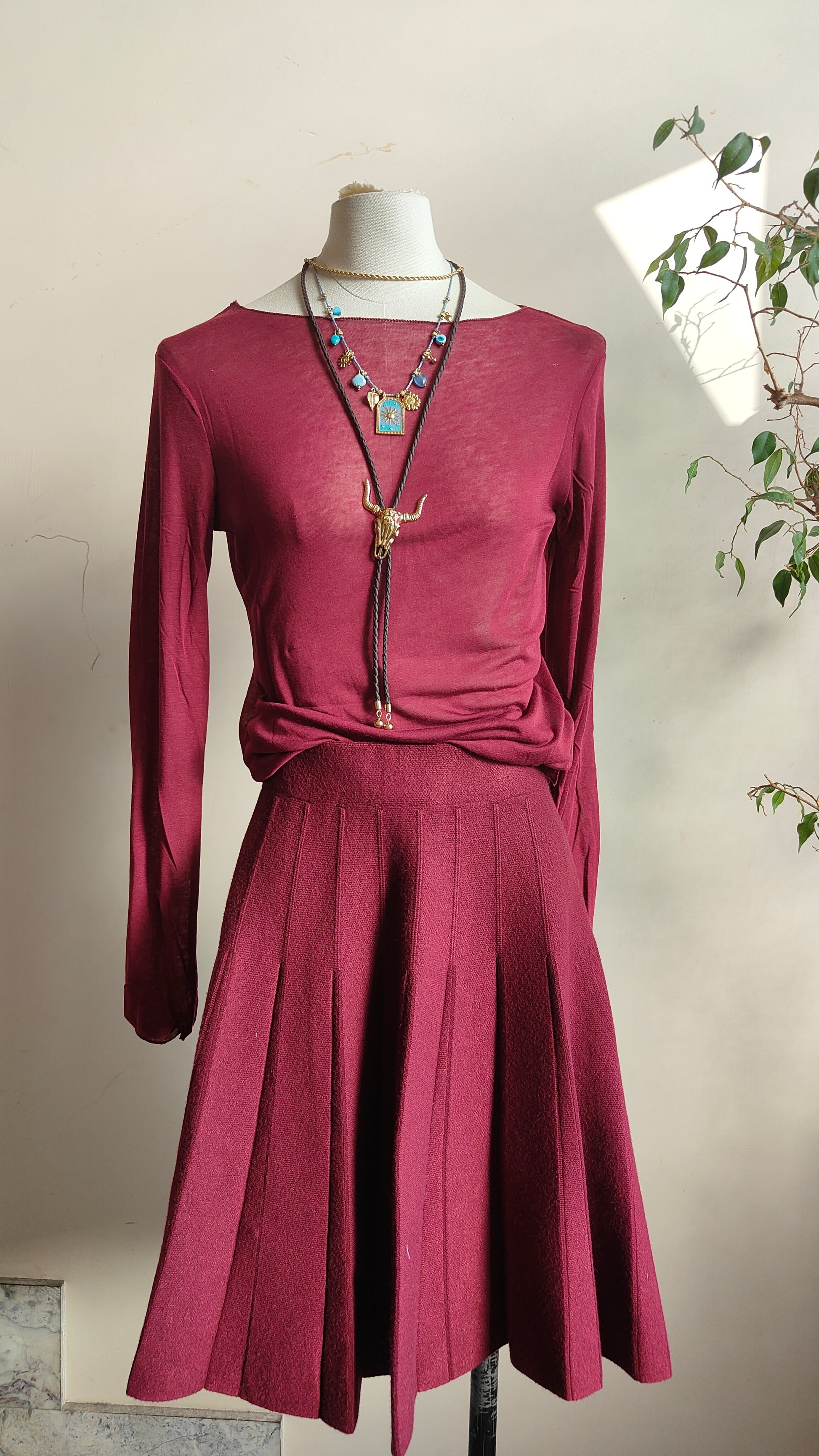 Una maglia dal taglio essenziale e raffinato, perfetta come base per costruire look versatili e contemporanei. La linea semplice e la morbidezza del tessuto la rendono un capo immancabile nel guardaroba quotidiano. Grazie alla sua vestibilità comoda ed elegante, è ideale da indossare con gonne, pantaloni sartoriali o sotto giacche e cardigan.