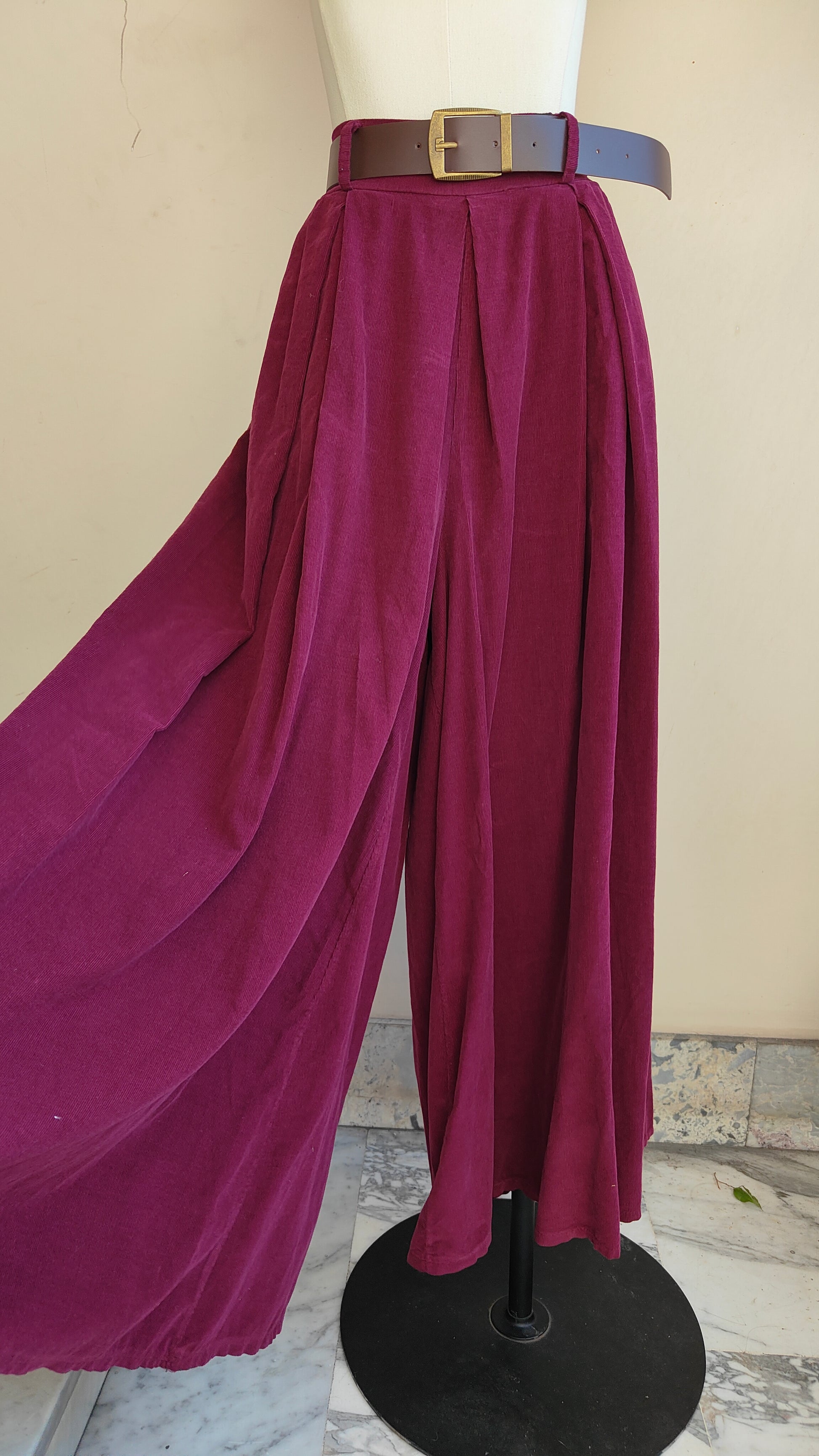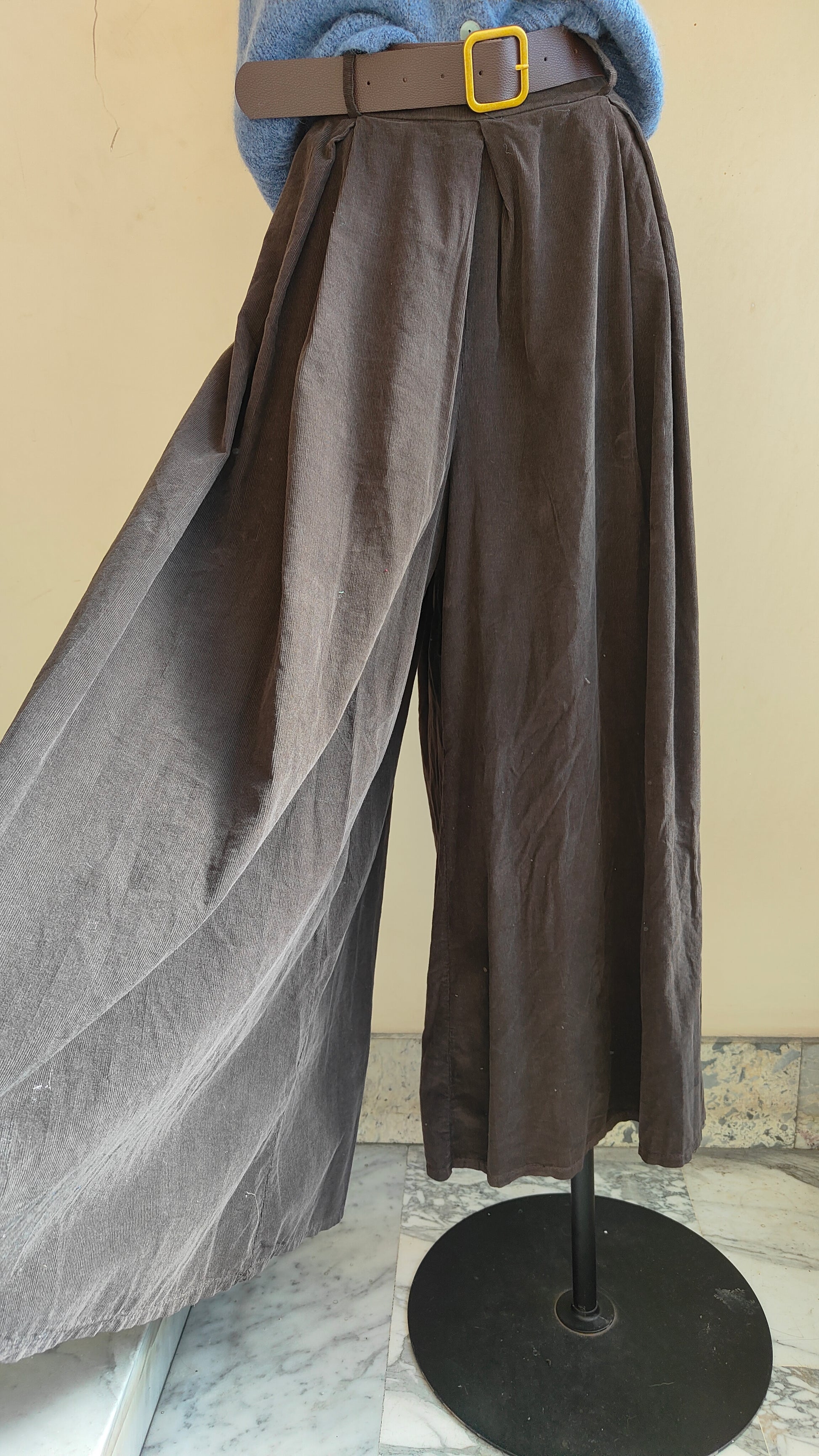 Pantagonna ampia e fluida in morbido cotone, caratterizzata da pieghe scenografiche che donano movimento a ogni passo. La vita elasticizzata sul retro assicura comfort e adattabilità, mentre le tasche laterali rendono il modello pratico e funzionale. Completa di cintura coordinata, è il capo ideale per un look sofisticato e originale, facile da portare dal giorno alla sera.
