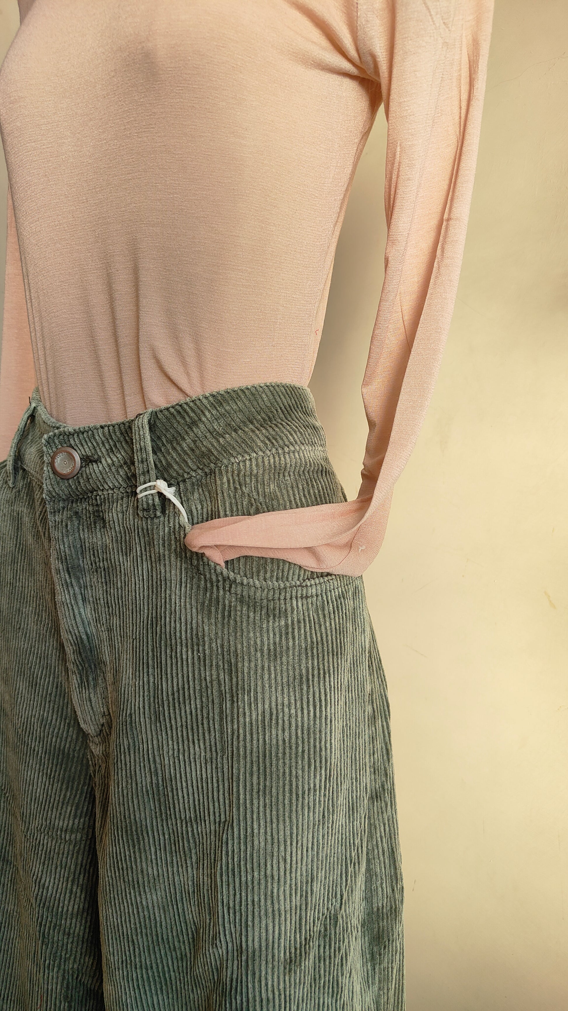 Un modello in velluto a coste dal fascino senza tempo, pensato per unire praticità e raffinatezza. La gamba morbida e leggermente ampia dona comfort e movimento, mentre le tasche laterali aggiungono un tocco casual e funzionale. Versatili e sofisticati, sono ideali sia per look quotidiani che per abbinamenti più ricercati.