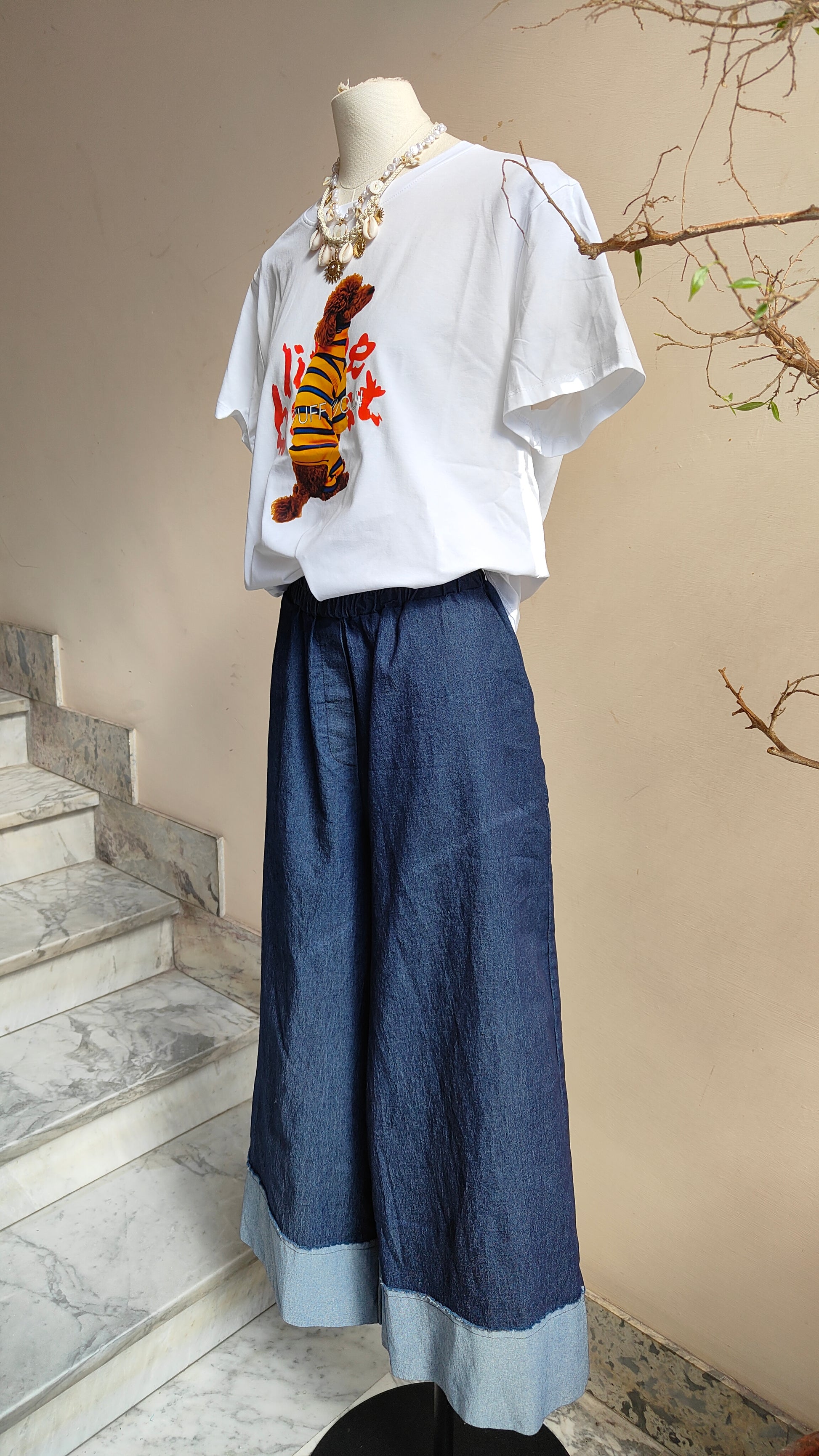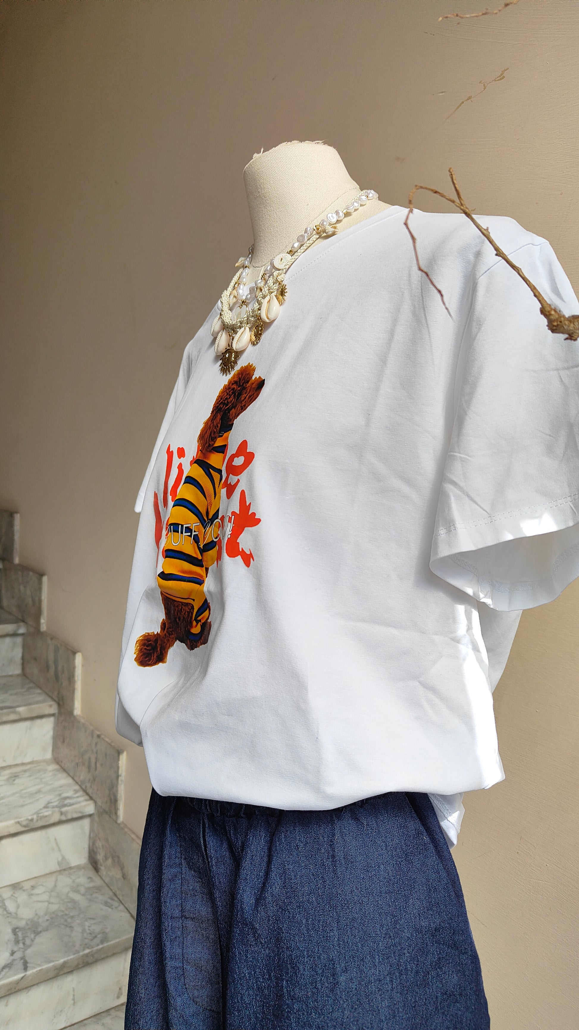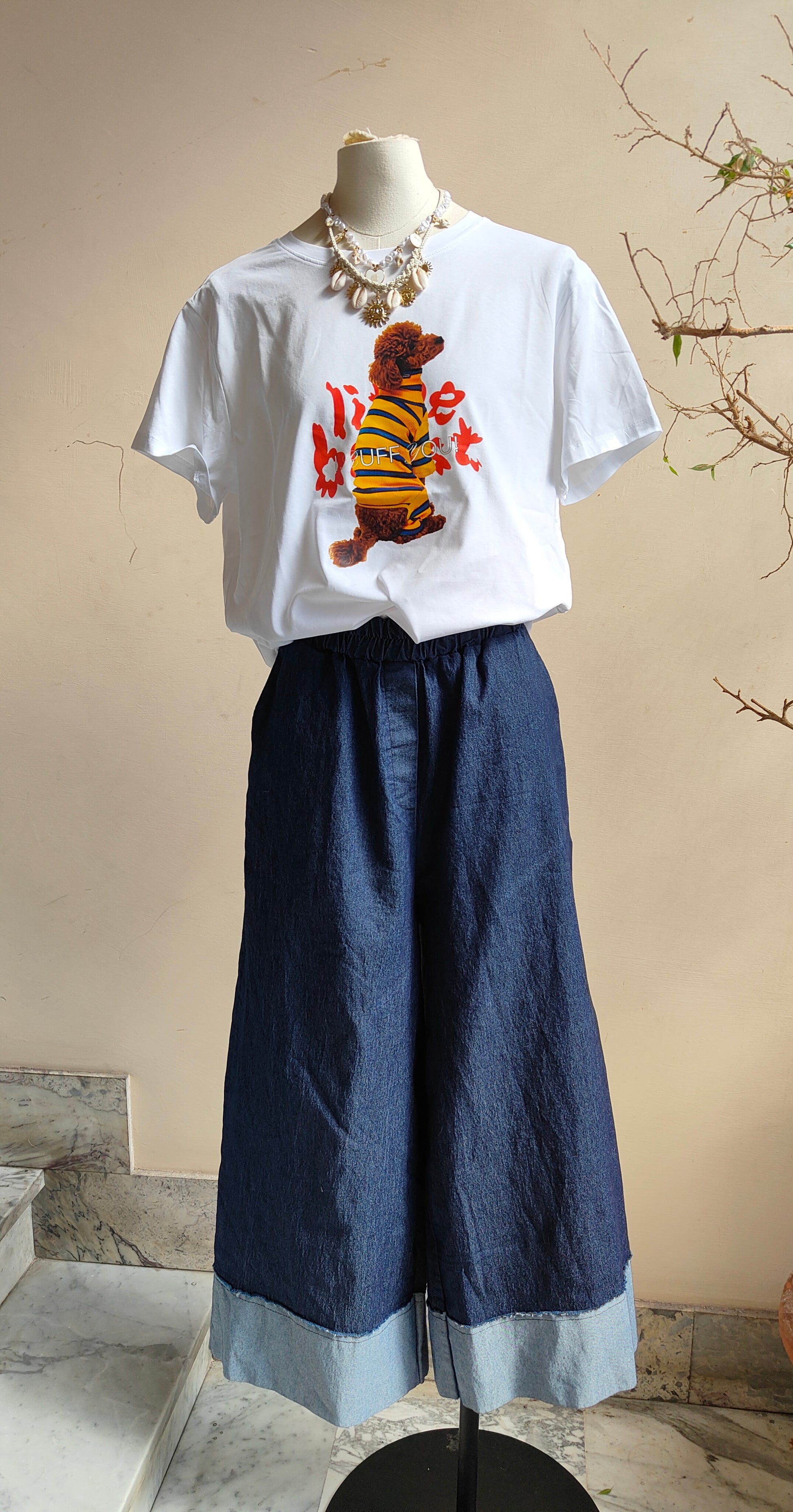 La T-shirt Muffin è il capo perfetto per dare carattere anche ai look più semplici. La stampa centrale cattura subito l’attenzione e rende l’outfit più personale, senza perdere eleganza.