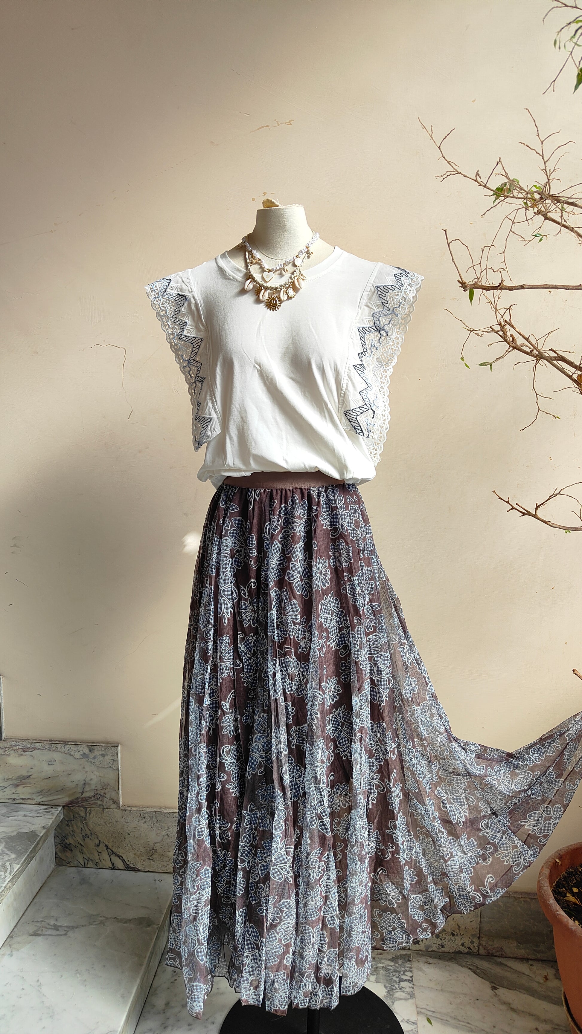 T-shirt Volant Ricamo