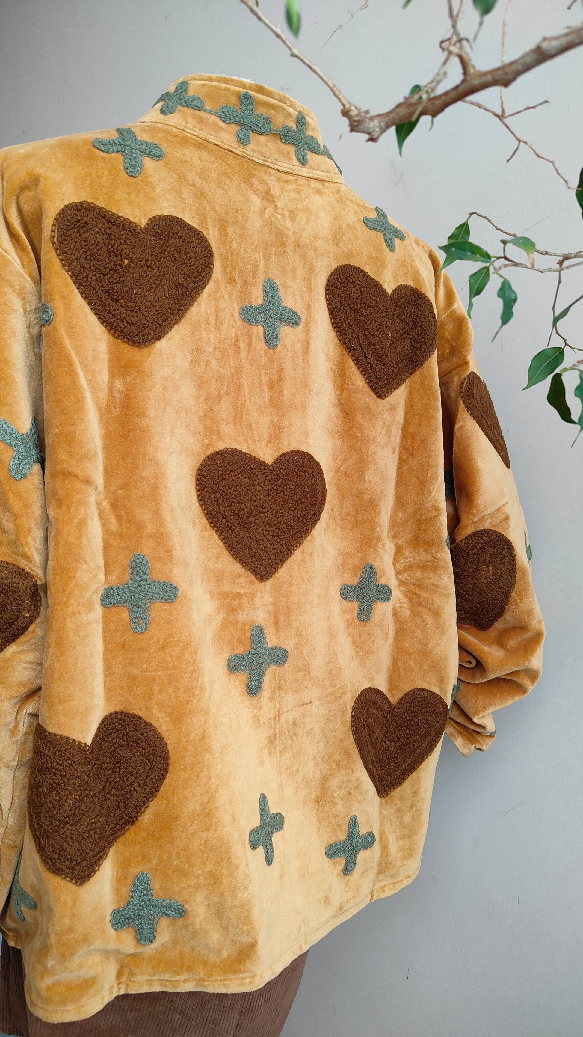 Giacca double face dal carattere boho e ricercato, pensata per dare personalità a ogni look. Da un lato presenta un ricco ricamo floreale con dettagli in rilievo, dall’altro una fantasia più essenziale e versatile, ideale per cambiare stile con un semplice gesto.