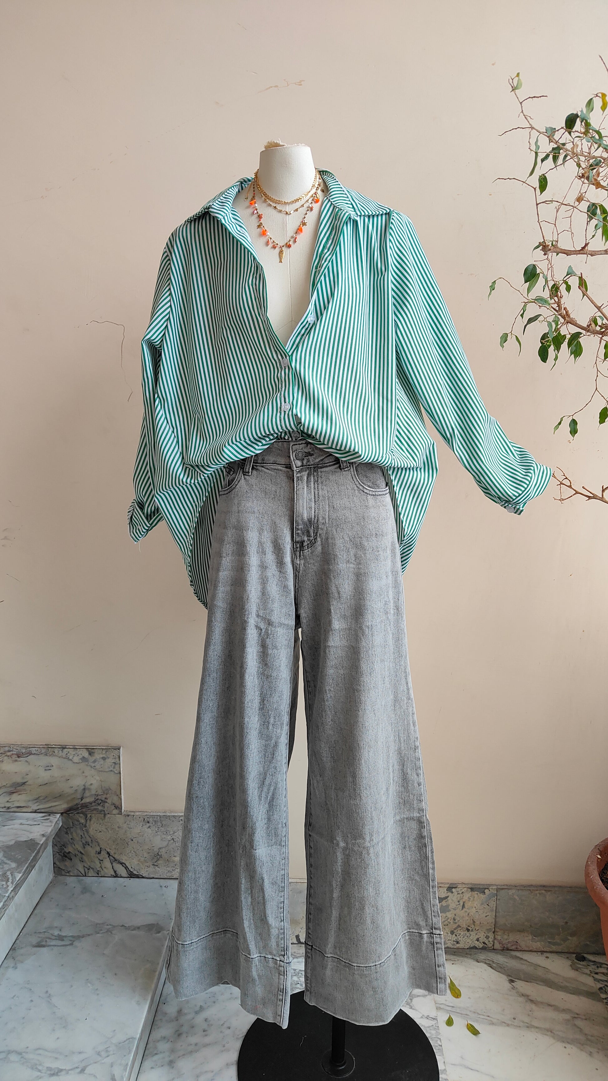Pantalone a vita alta dal taglio ampio e pulito, pensato per slanciare la figura e dare equilibrio alla silhouette. La linea morbida della gamba accompagna il movimento senza costringere, rendendolo un capo comodo ma estremamente curato. Realizzato in cotone con una leggera componente elastica, unisce struttura e comfort. È il classico pantalone che funziona sempre: con una maglia essenziale per il giorno, con una camicia o un blazer per un look più costruito.