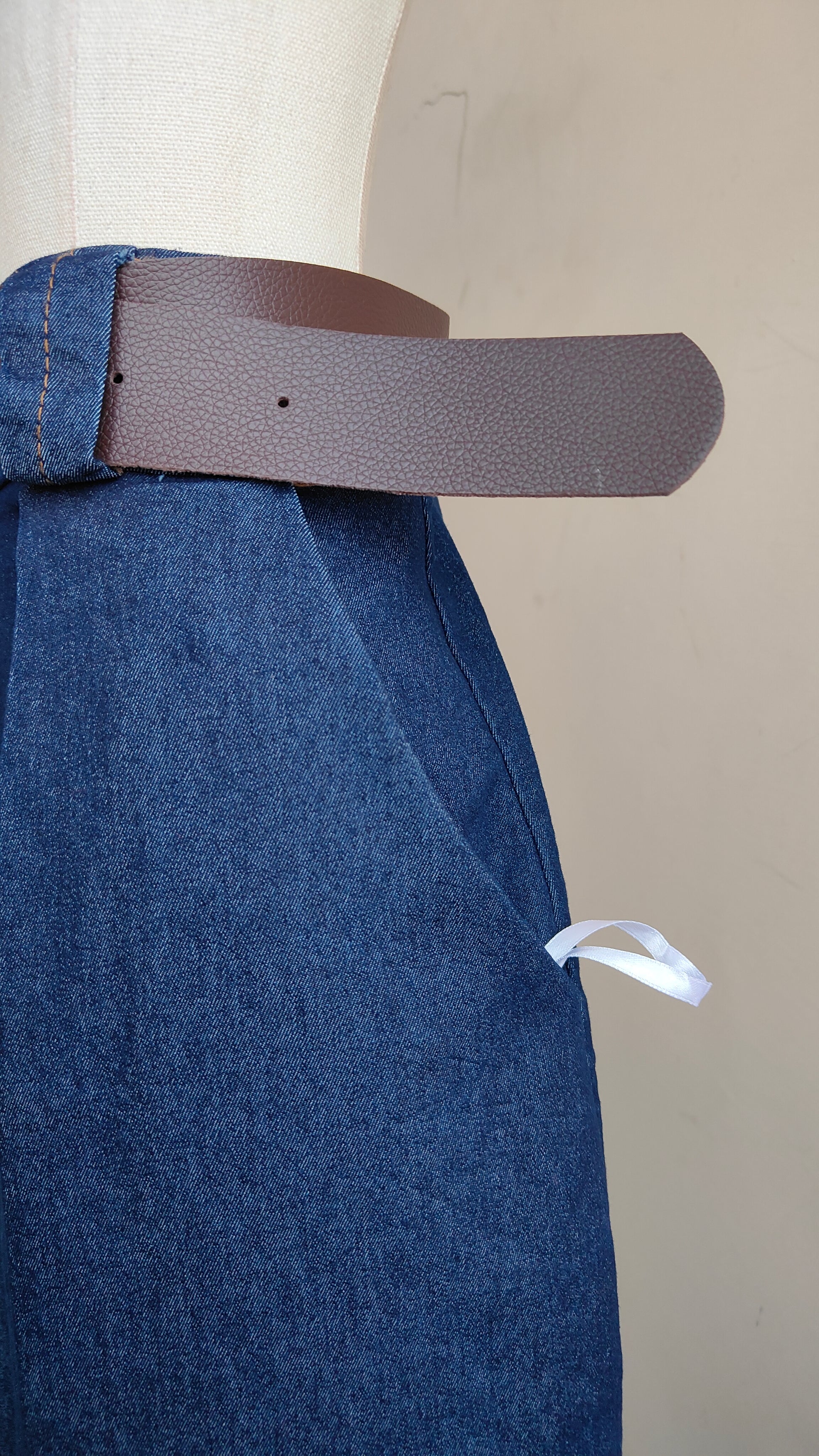 Dal taglio moderno e ricercato, questi pantaloni in denim si distinguono per la loro silhouette balloon, ampia sulla gamba e leggermente affusolata sul fondo, pensata per valorizzare la figura con naturalezza. Il punto vita definito e la cintura inclusa enfatizzano la linea, creando un equilibrio perfetto tra struttura e comfort.