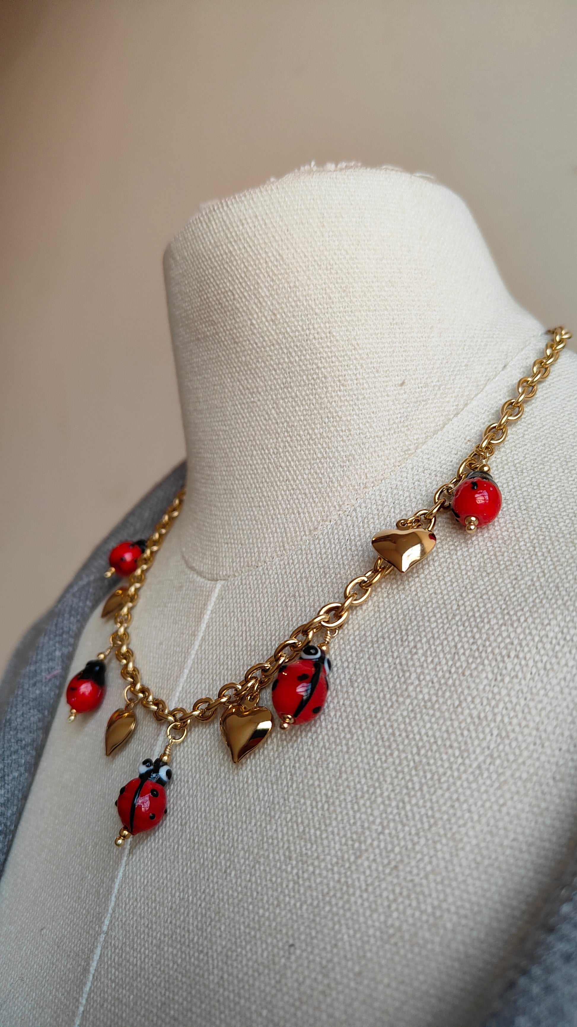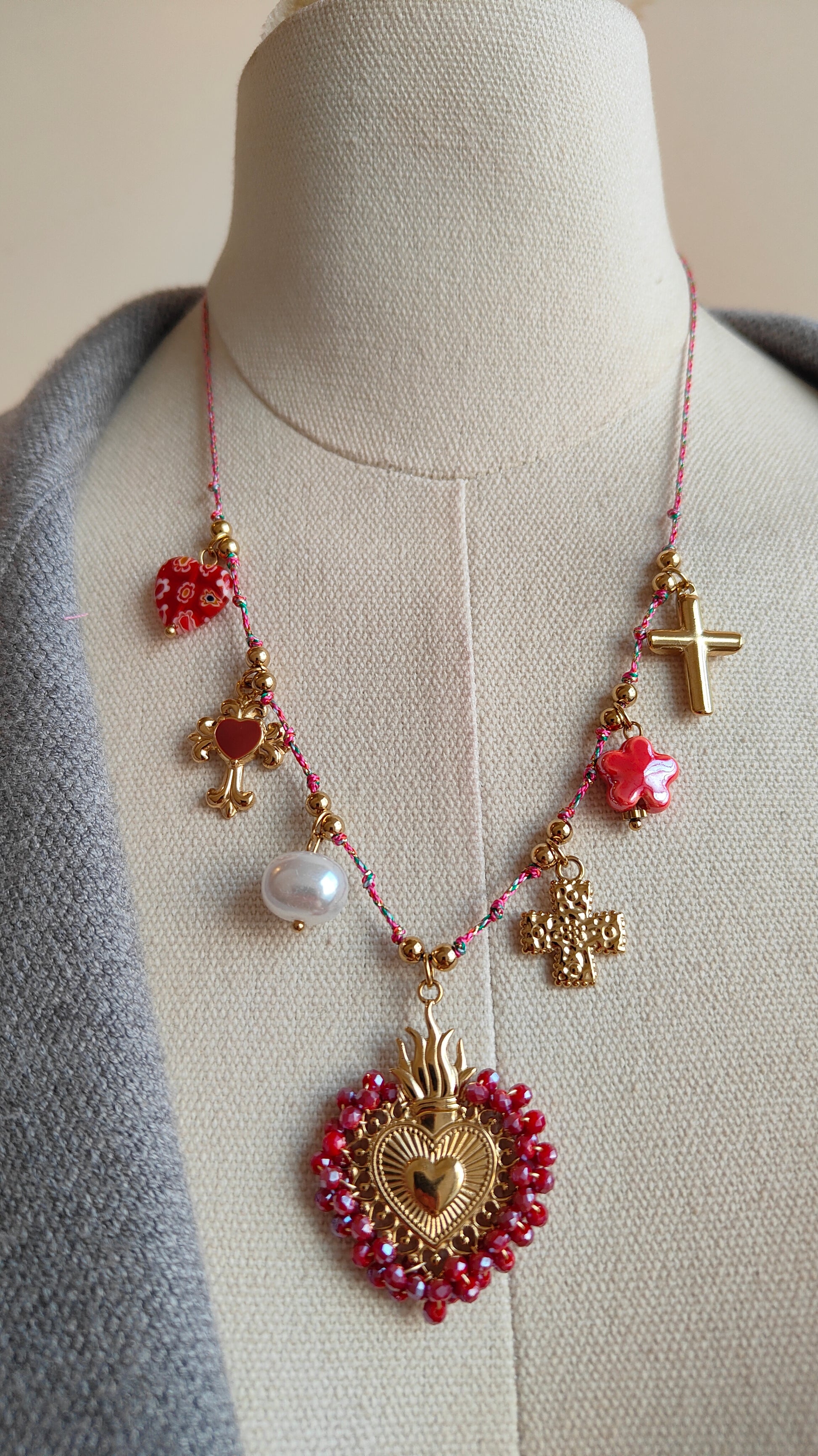 Un mix di collane pensato per creare un effetto layered ricco e personale. Ogni pezzo ha un carattere diverso, tra dettagli simbolici, piccoli charms e elementi più importanti che diventano il punto luce del look.