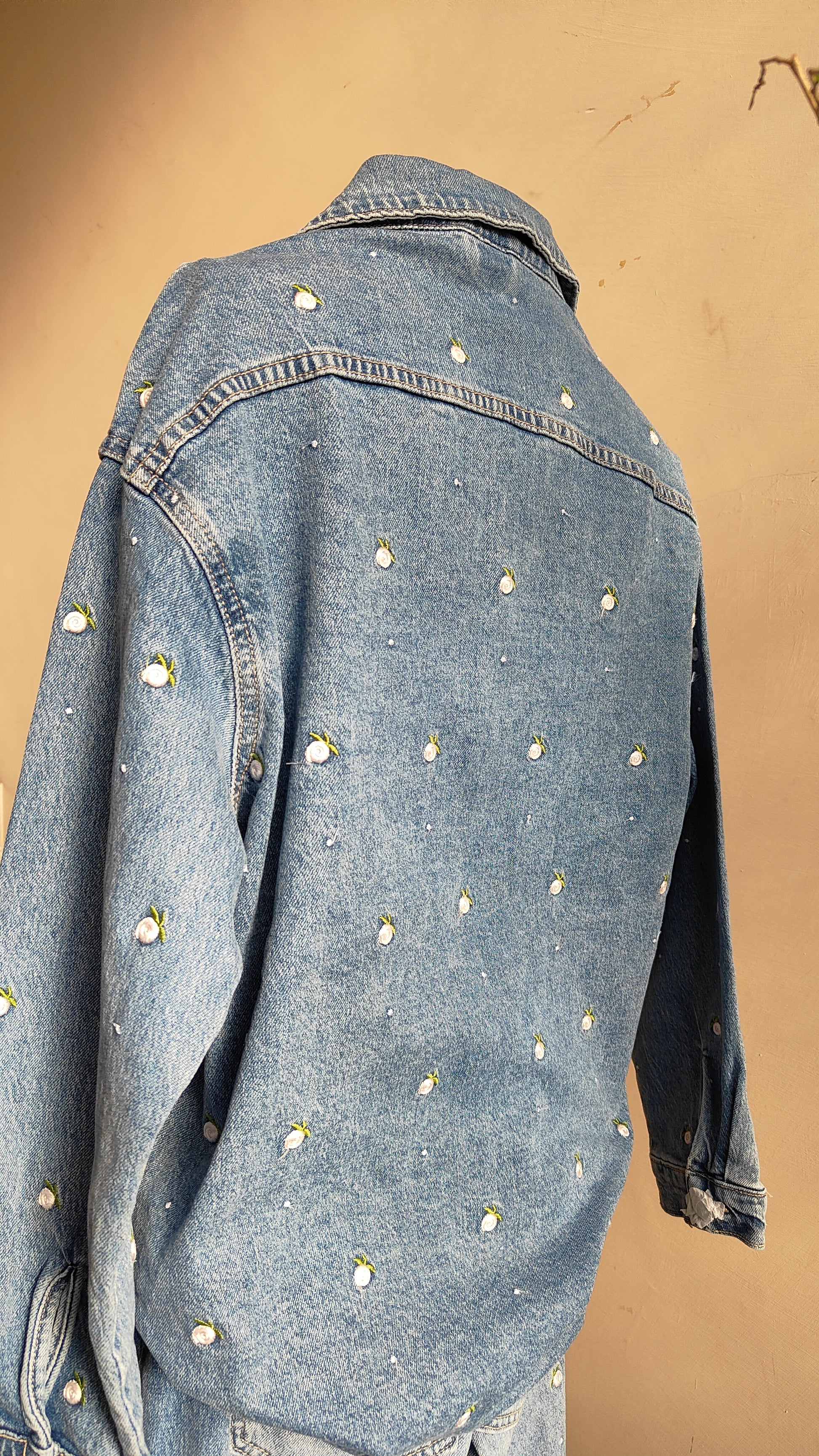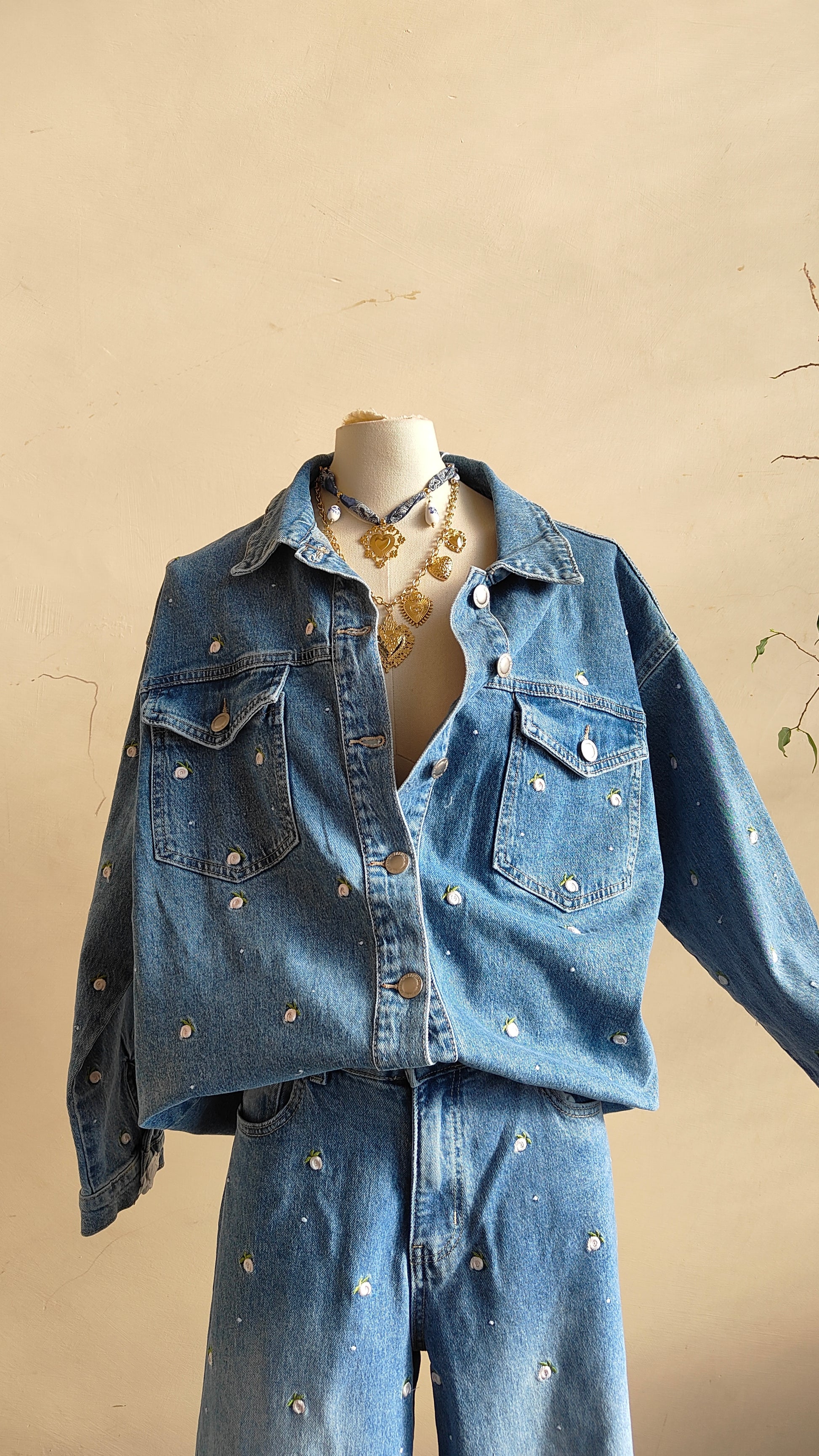 Rosalie è la camicia in denim che unisce delicatezza e personalità. I piccoli ricami floreali donano luce al tessuto e trasformano un grande classico in un capo originale ma facile da indossare. La linea morbida la rende perfetta sia portata chiusa, per un effetto più curato, sia aperta sopra una t-shirt o un top per uno stile più rilassato.
