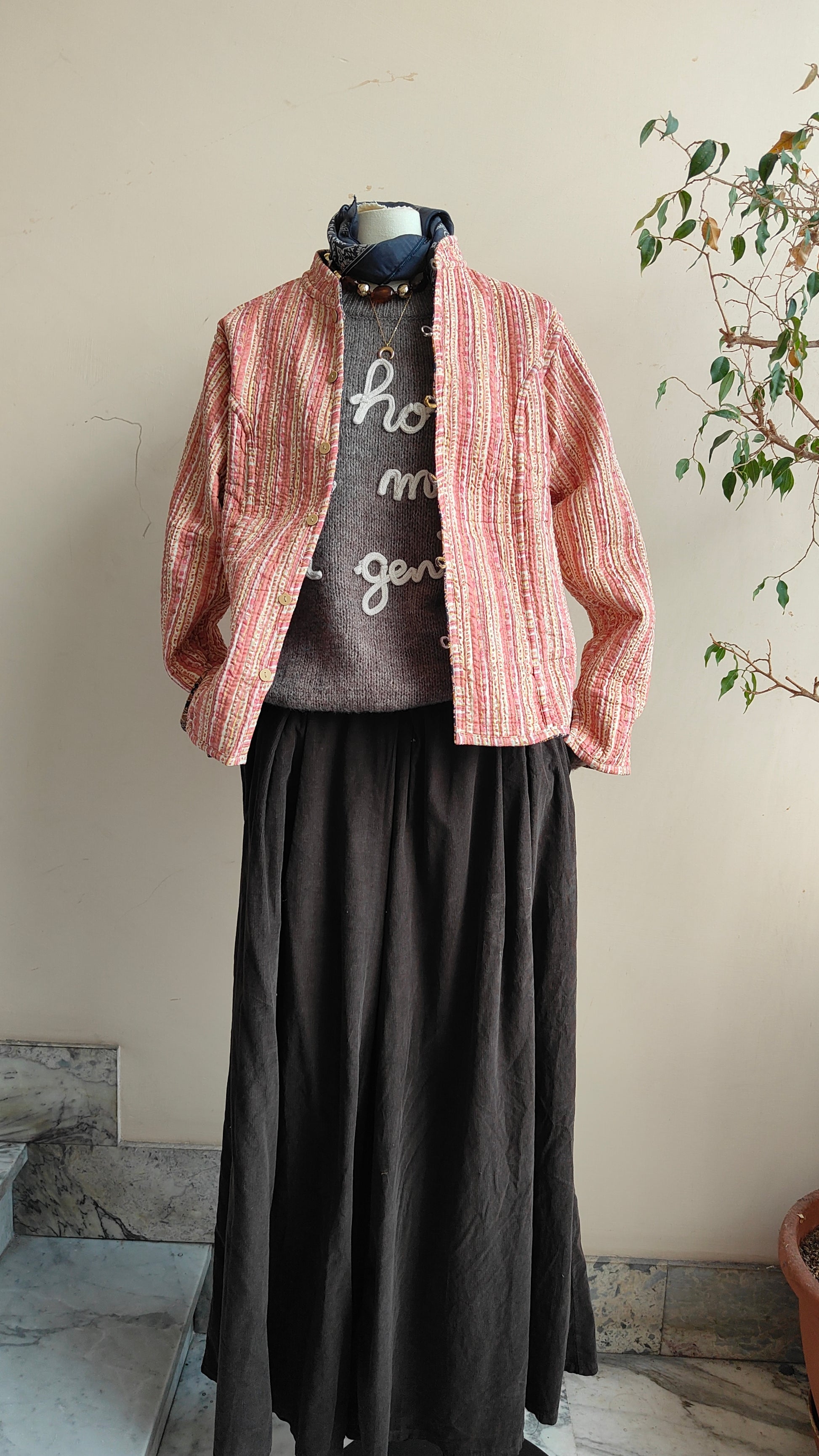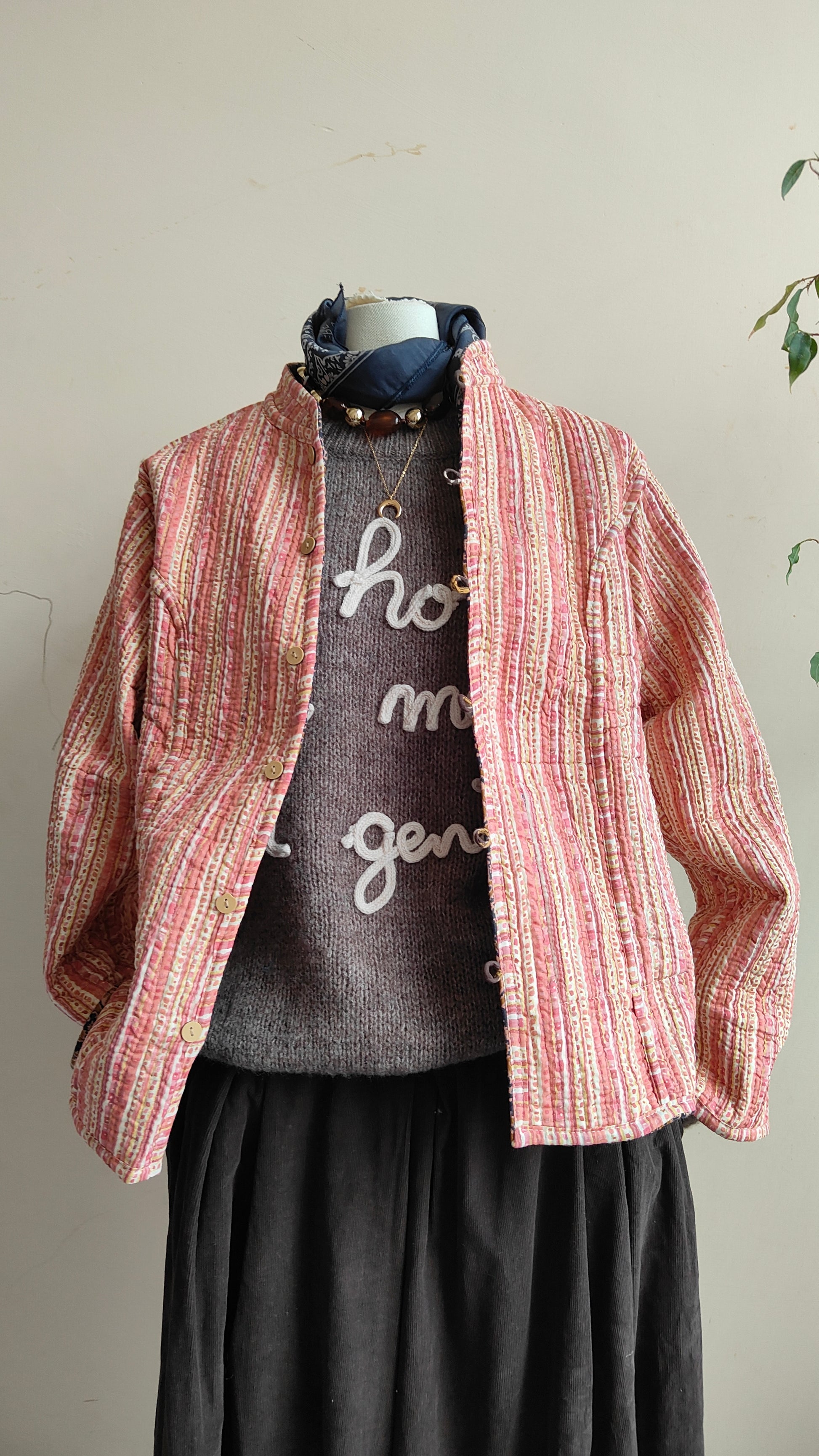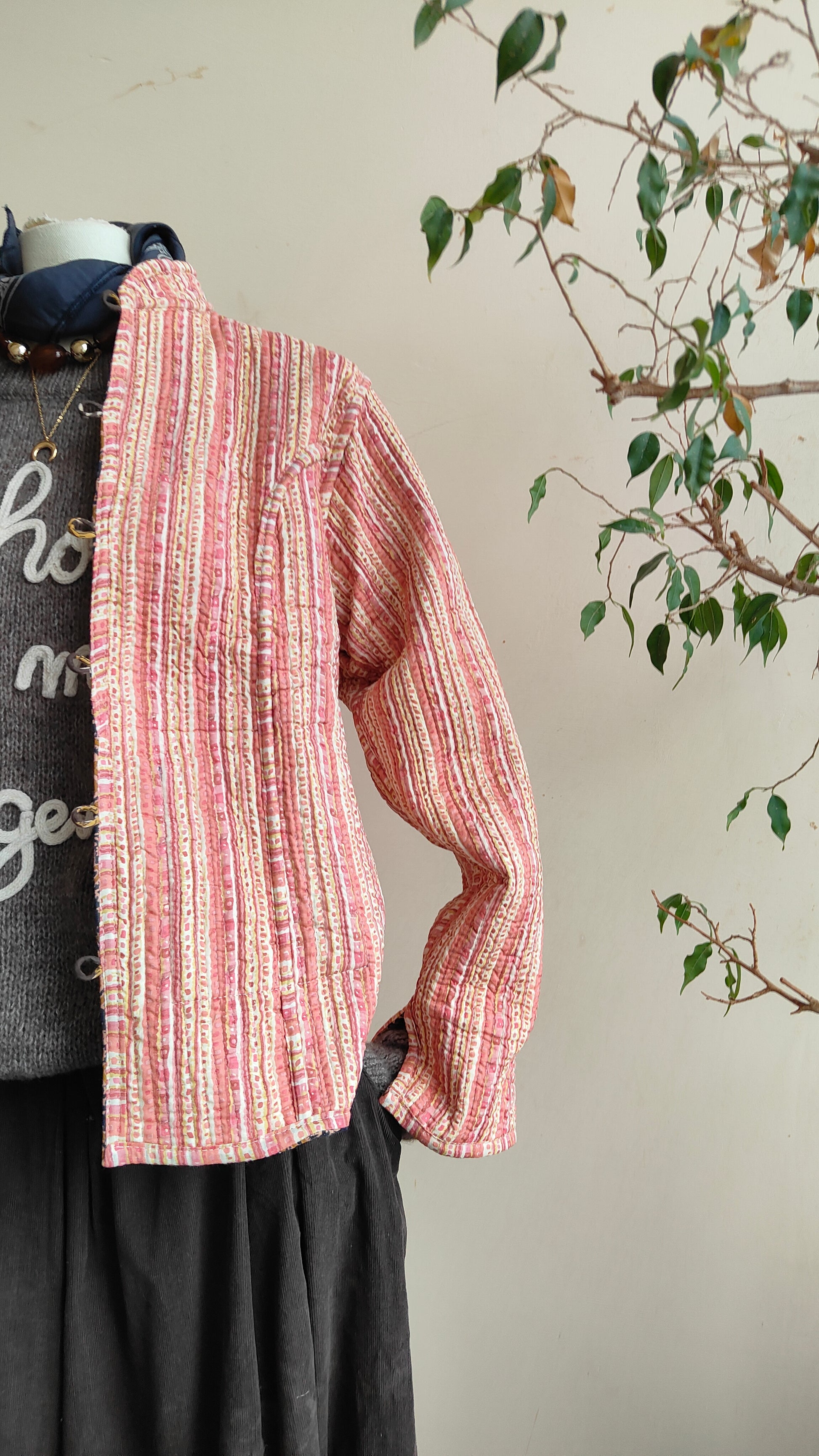 La linea morbida e il tessuto leggermente trapuntato la rendono perfetta per la mezza stagione. Indossarla aperta su un abito o stringi in vita con una cintura per un look più definito.