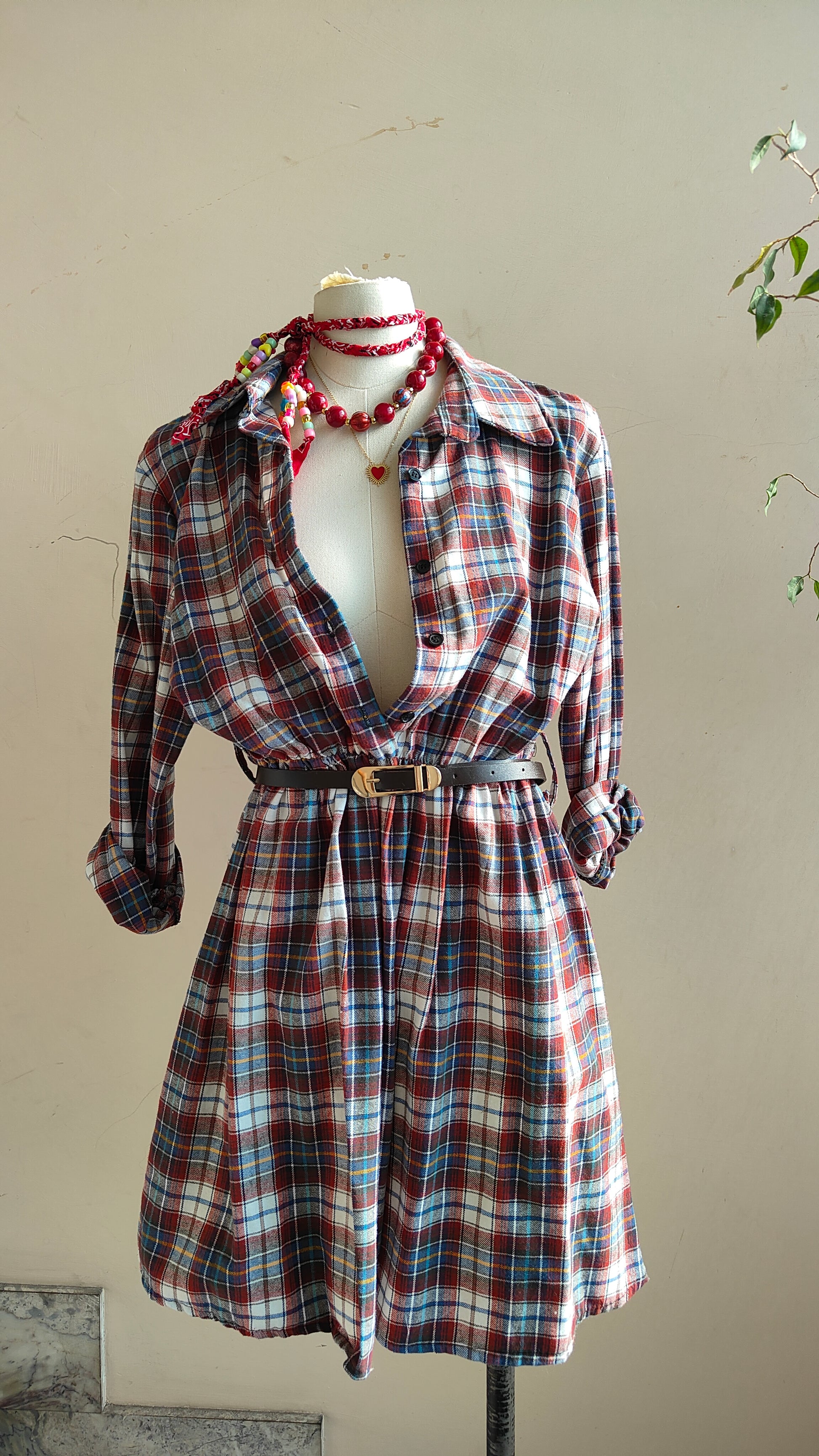 Un abito camicia dal carattere disinvolto, con un taglio morbido che accompagna la figura senza costringerla. Il tessuto leggero lo rende perfetto per le giornate in movimento, mentre la linea versatile permette di indossarlo sia sciolto che con una cintura per definire il punto vita.