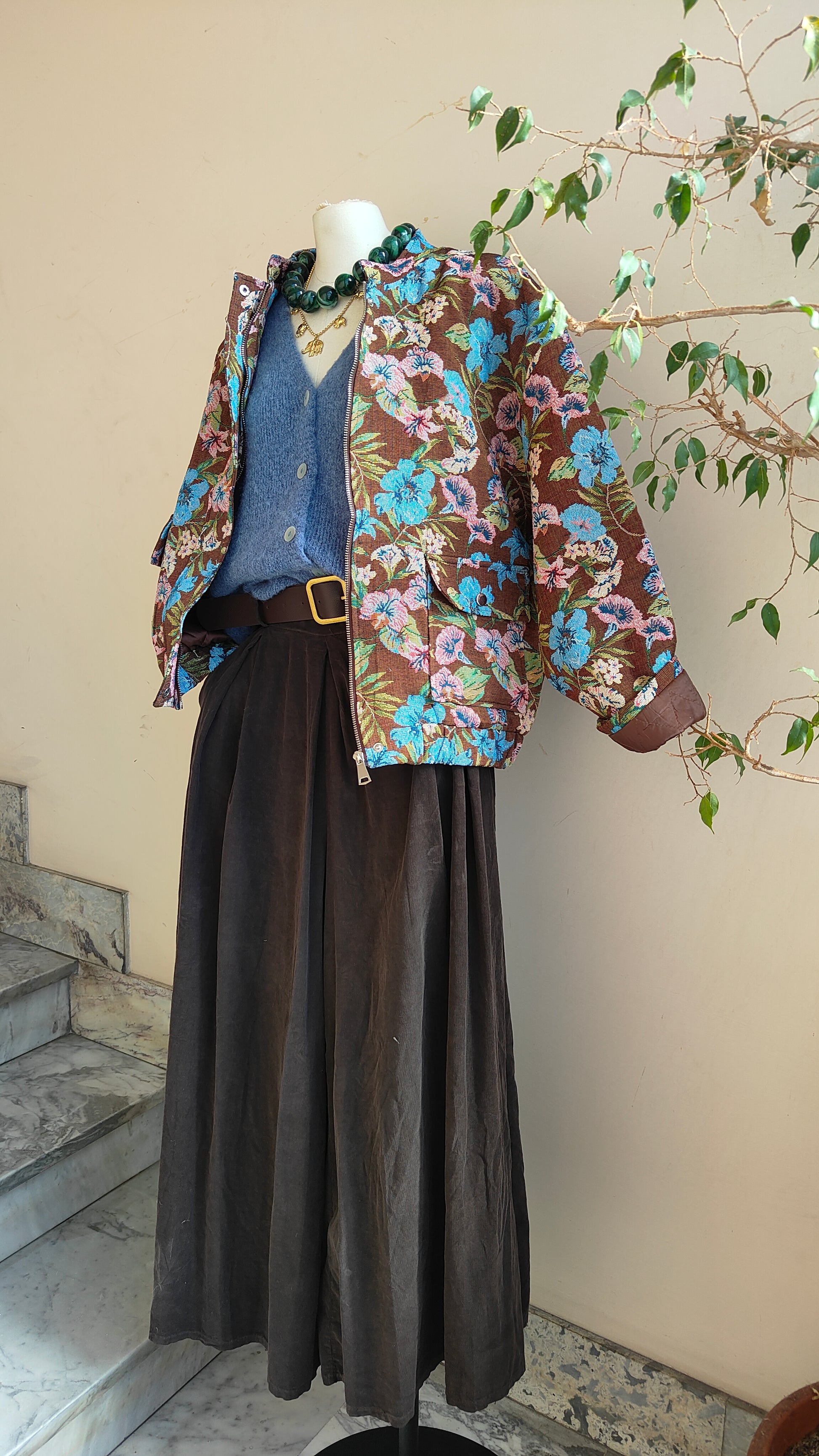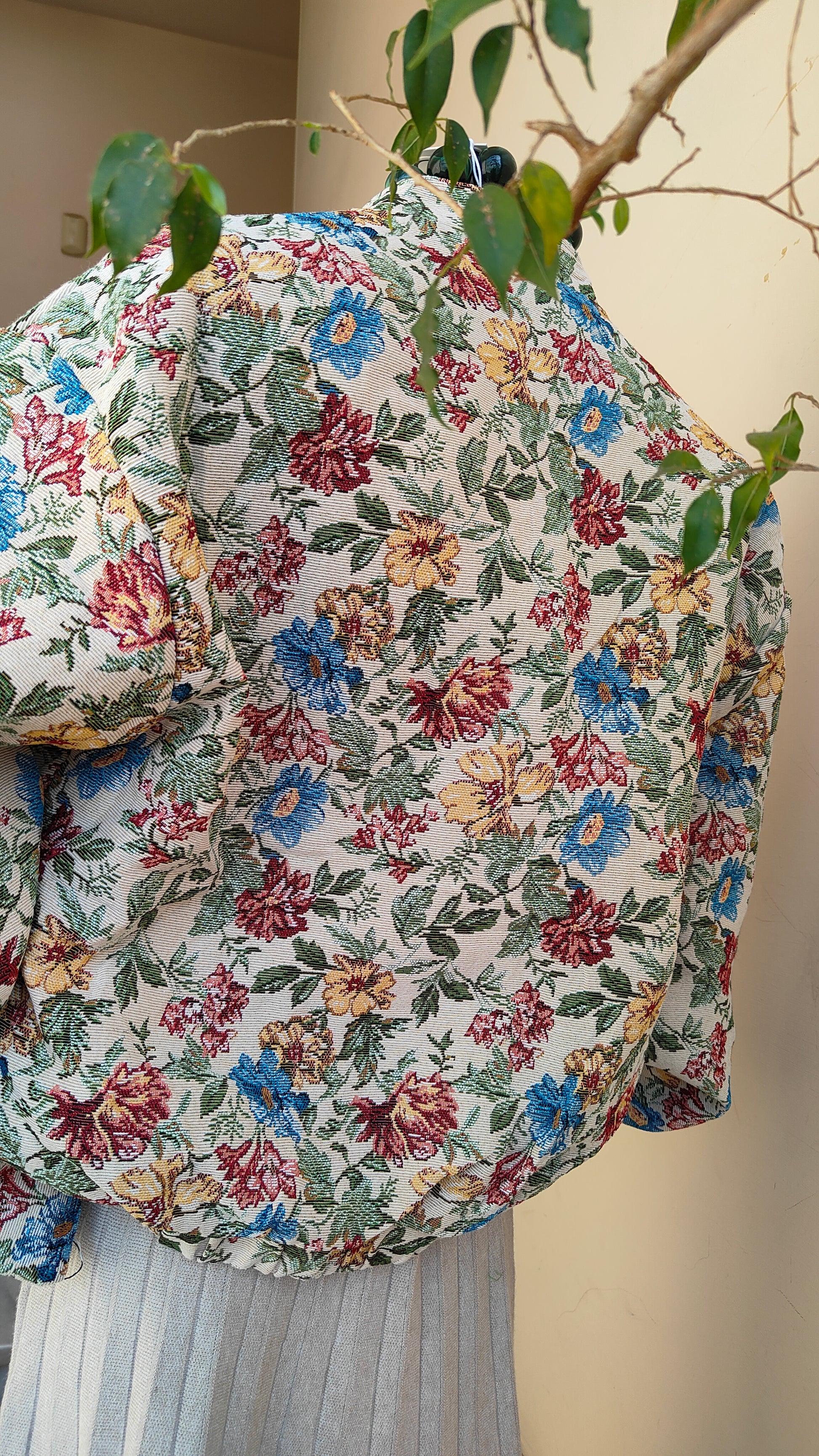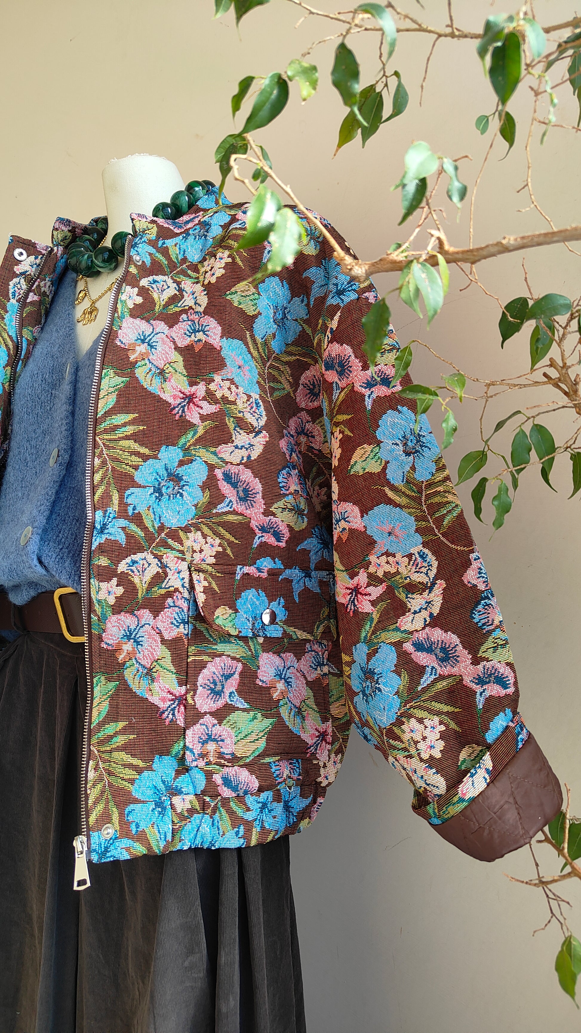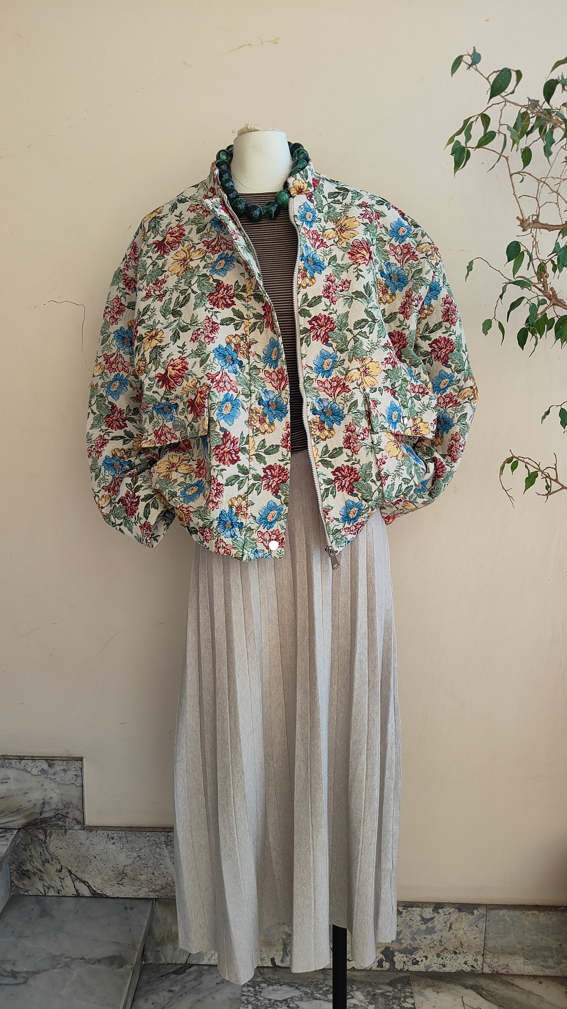 Un bomber dallo stile unico, con tessuto lavorato a motivo floreale che dona carattere e originalità a ogni look. La vestibilità ampia lo rende comodo e versatile, perfetto da indossare sia su outfit casual che più ricercati. L’interno trapuntato garantisce calore e comfort, mentre la zip frontale e i dettagli elastici sul fondo completano il design.