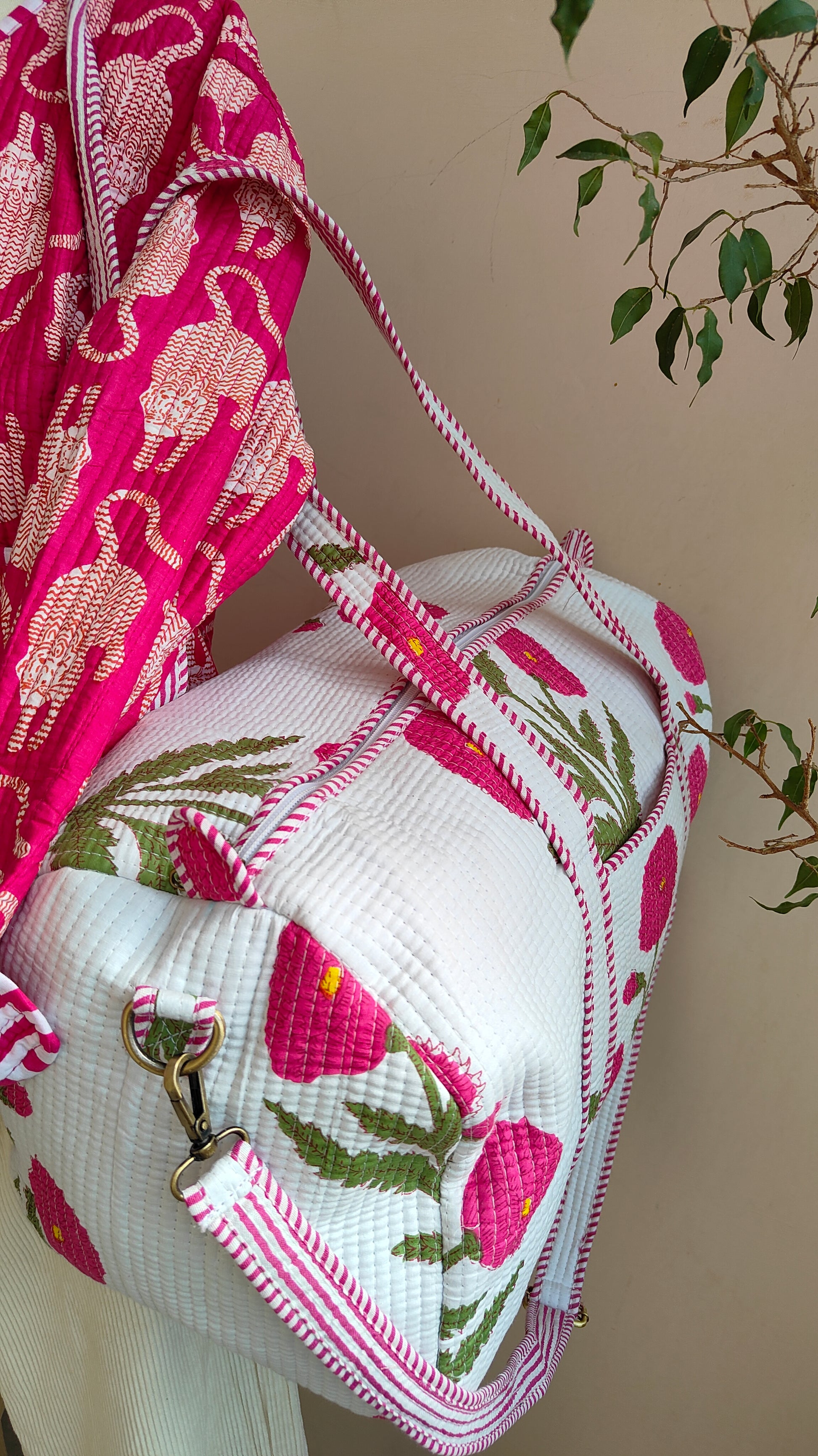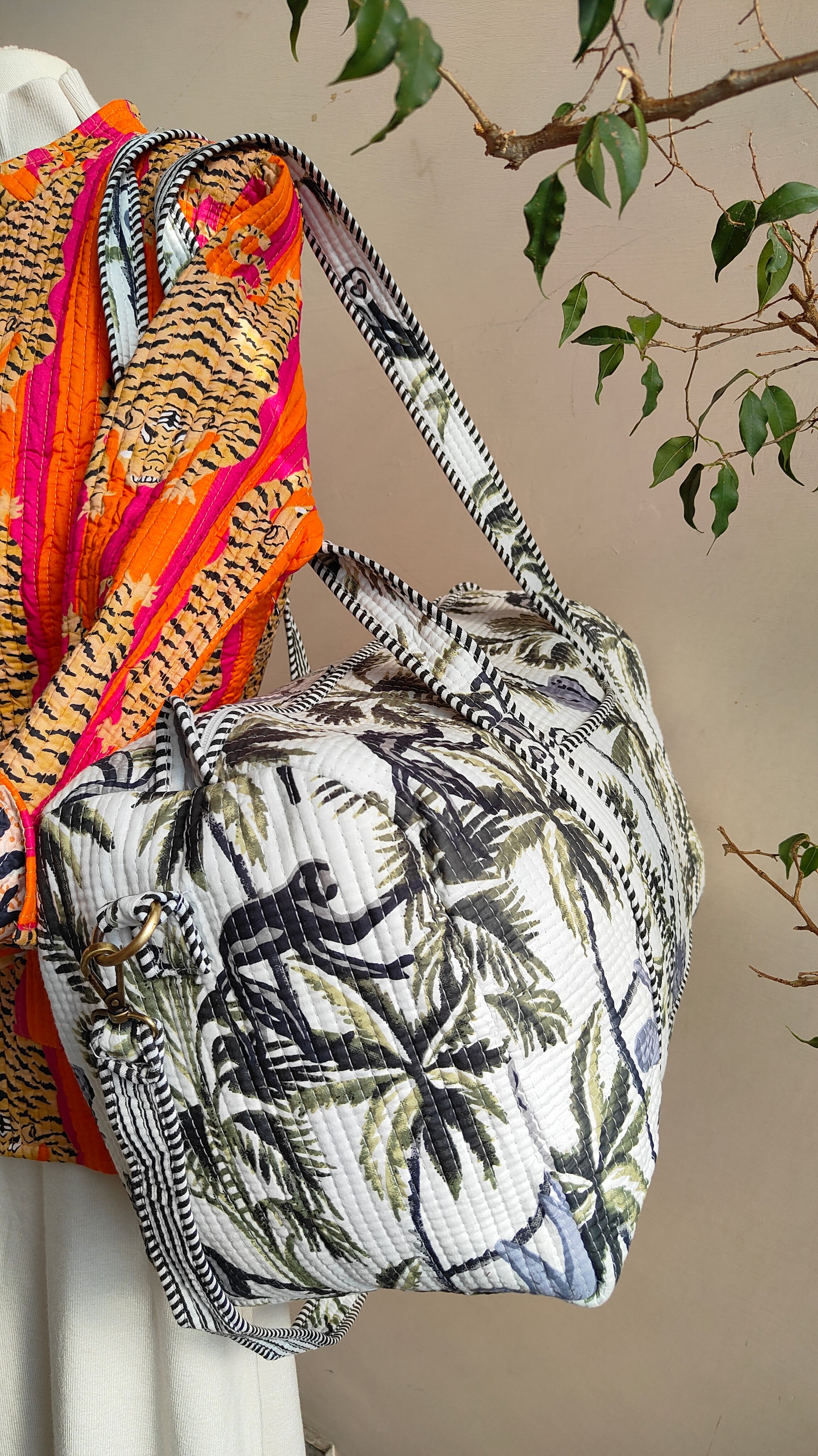 Il compagno perfetto per i tuoi viaggi, le fughe del weekend o una giornata piena di impegni. Realizzato in 100% cotone trapuntato, il Borsone Weekender unisce capienza e leggerezza con uno stile unico e ricercato.