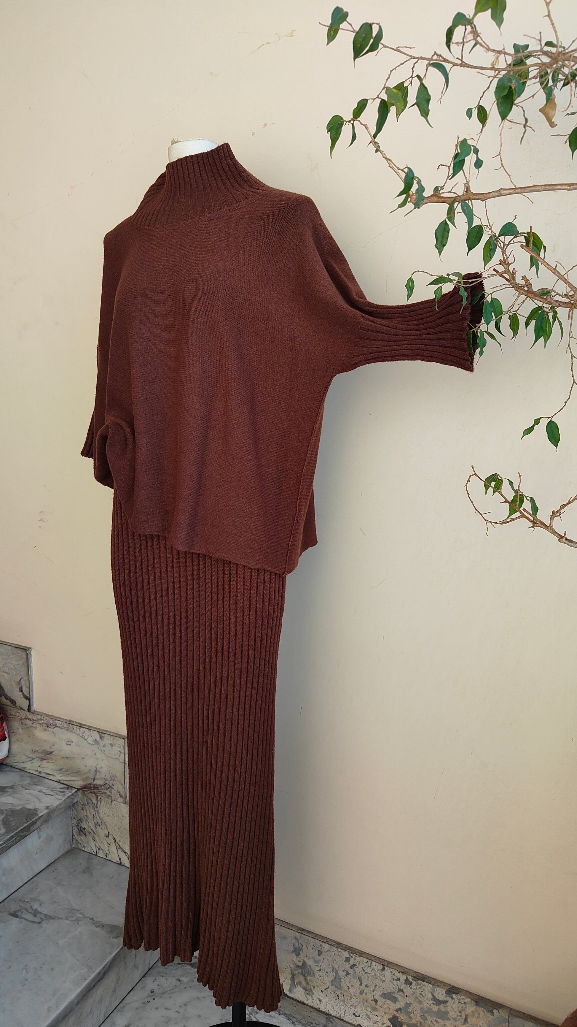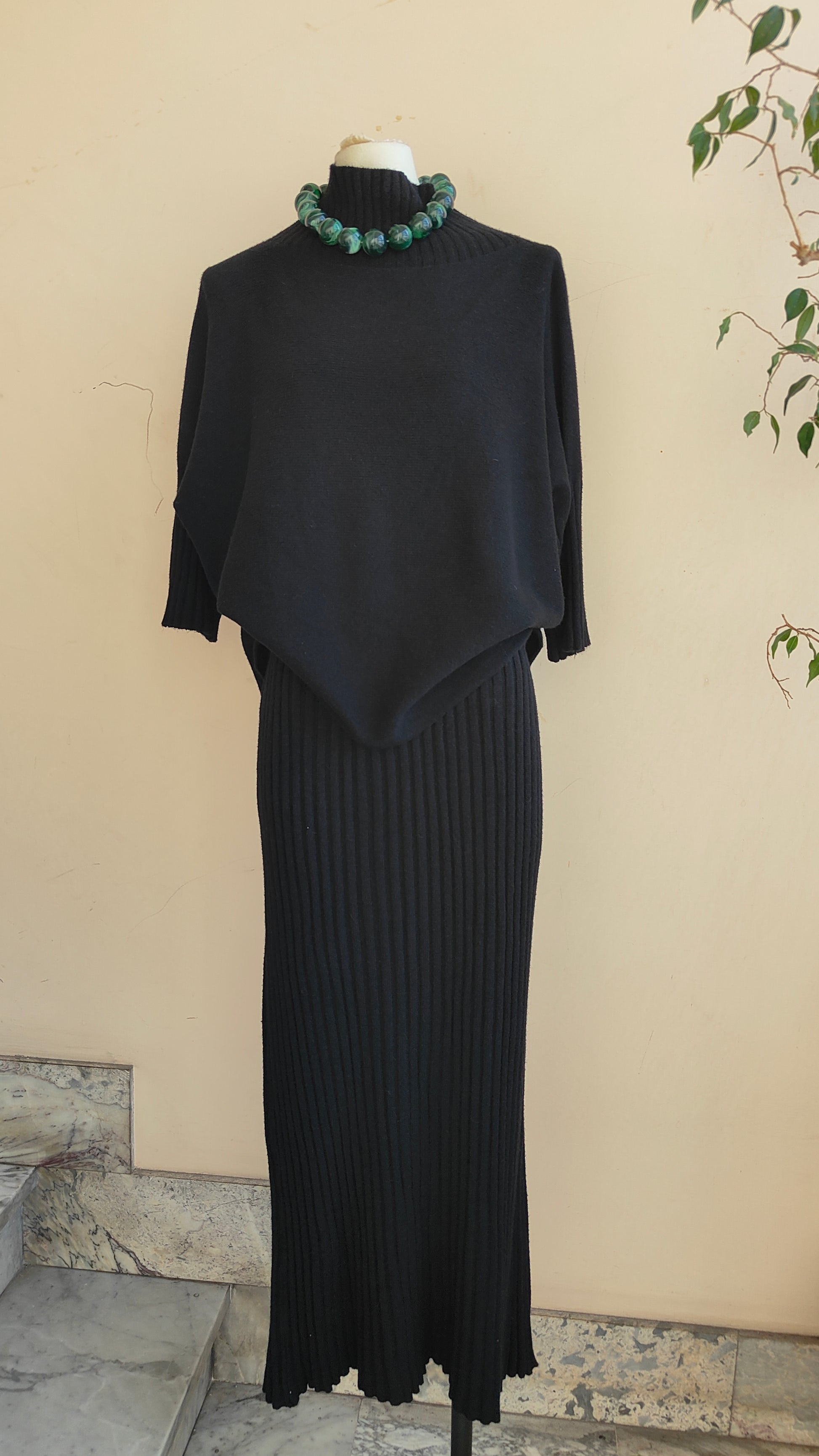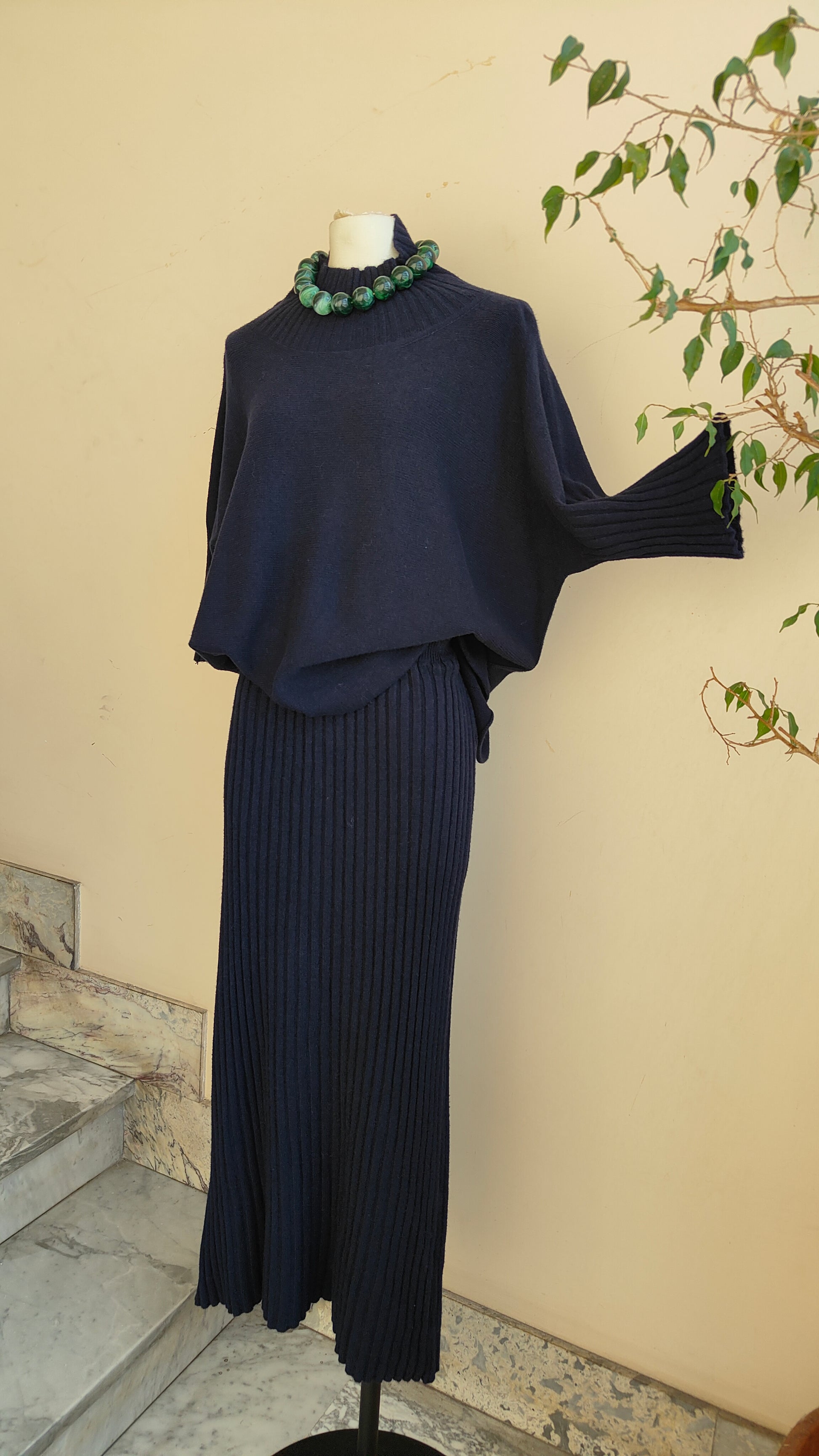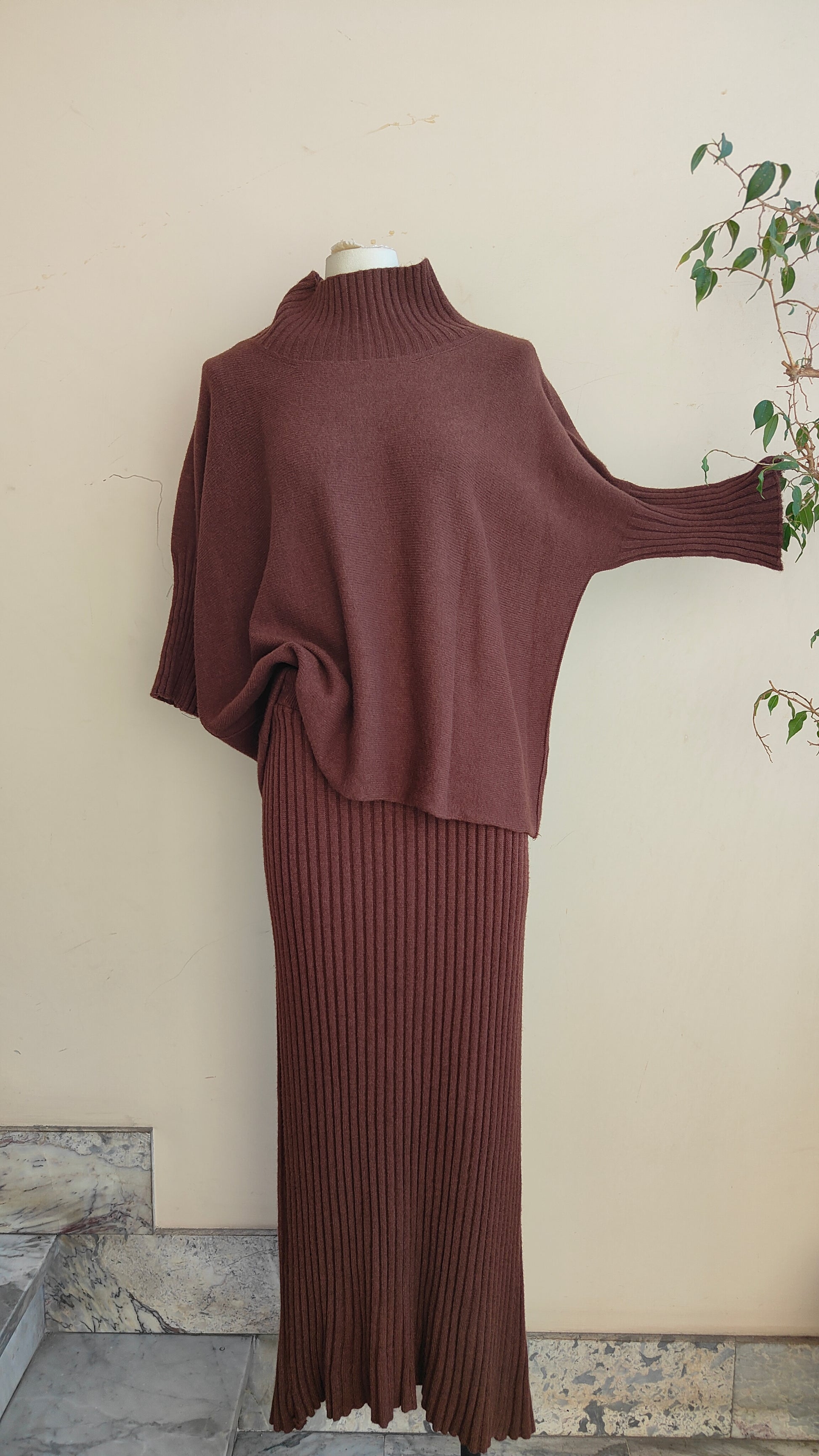 Un completo raffinato e senza tempo, composto da pullover morbido con linea fluida e da una gonna lunga a costine che avvolge la silhouette con eleganza. La maglia dalla vestibilità confortevole si abbina perfettamente alla gonna a vita alta, creando un look armonioso e sofisticato, ideale sia per il quotidiano che per le occasioni speciali.