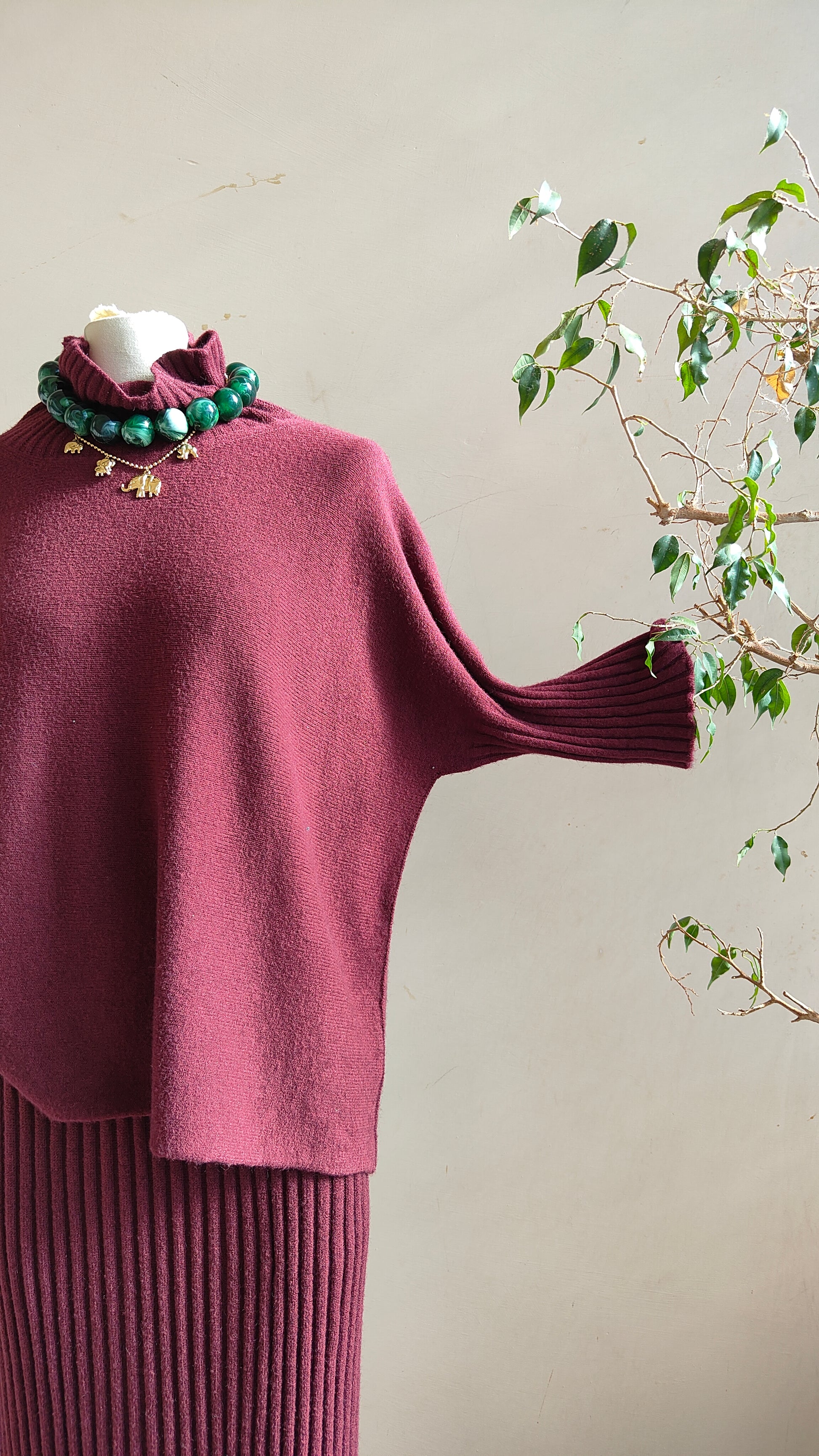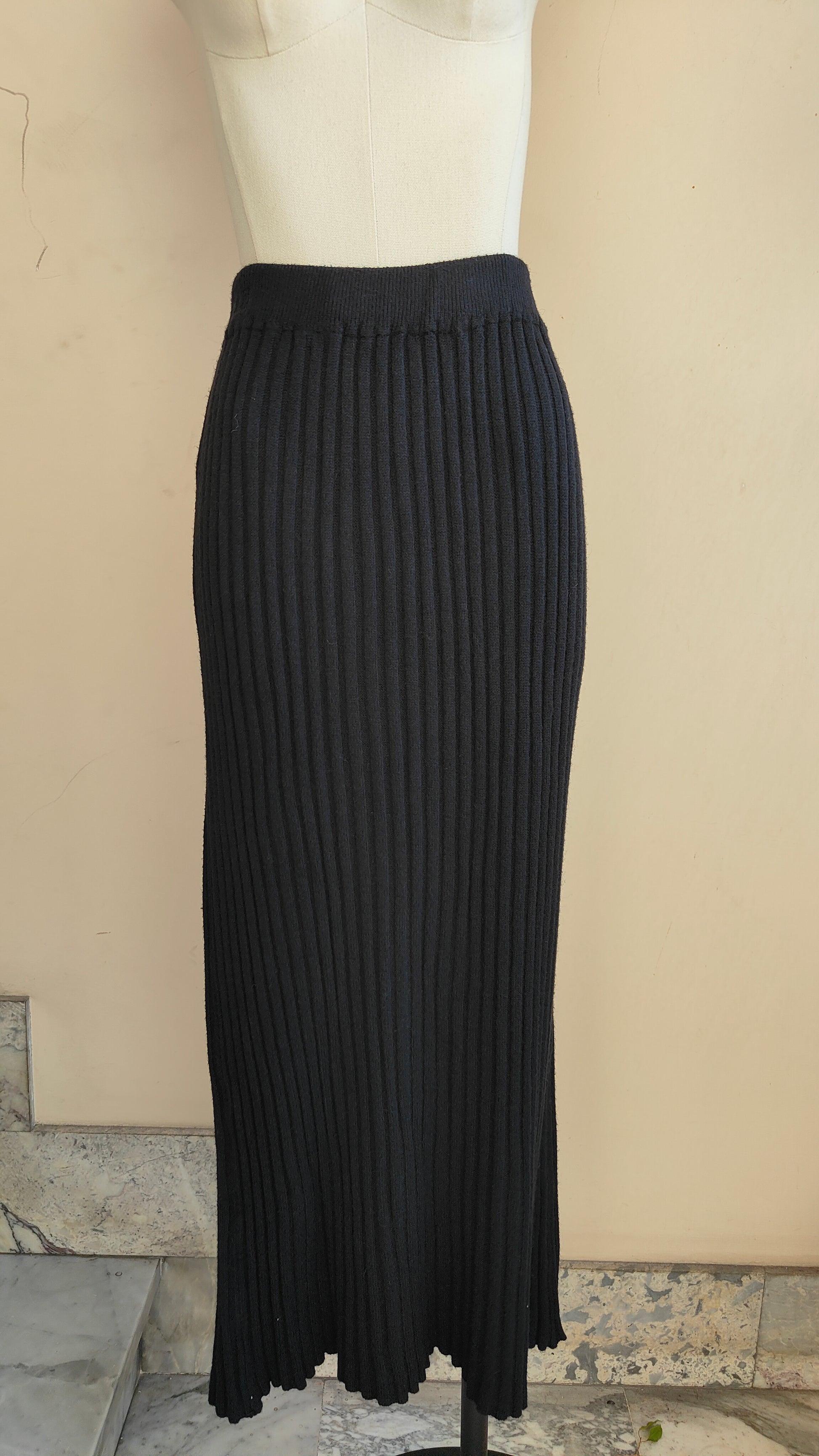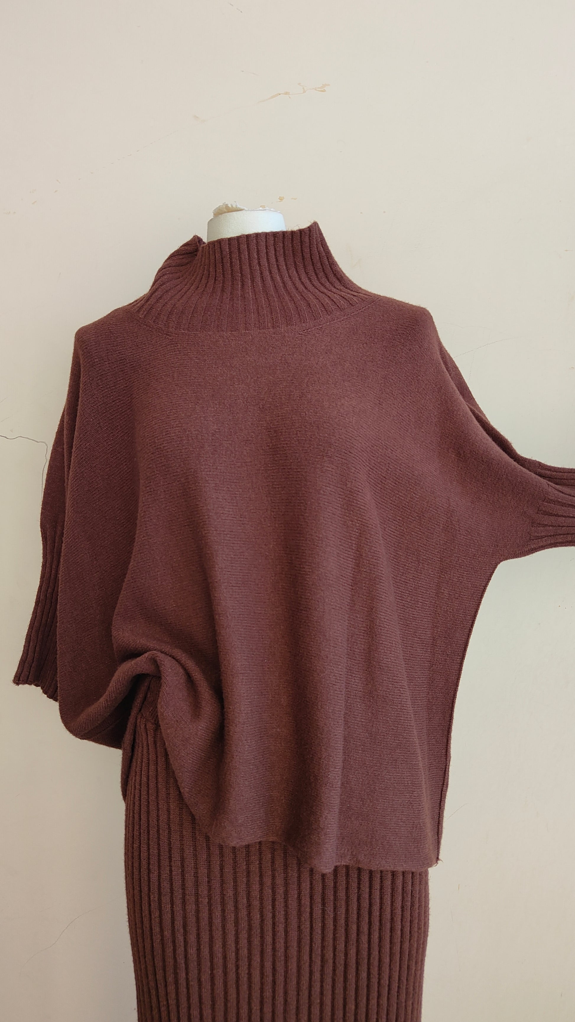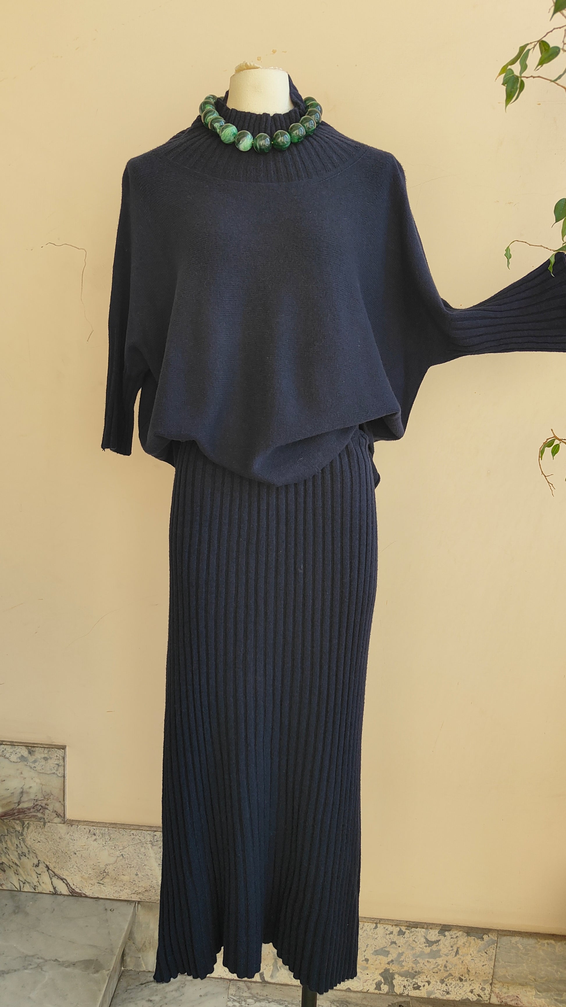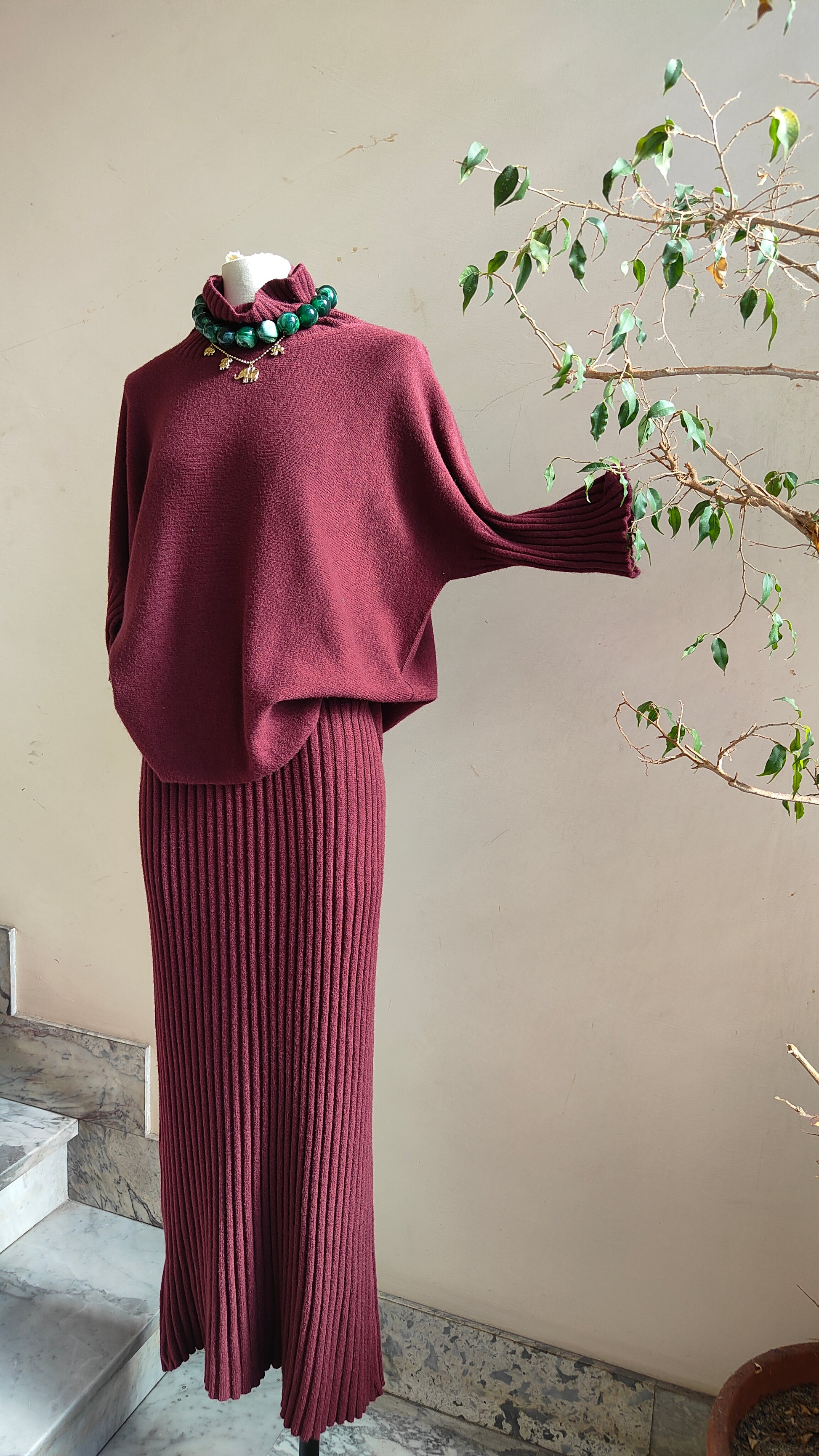 Un completo raffinato e senza tempo, composto da pullover morbido con linea fluida e da una gonna lunga a costine che avvolge la silhouette con eleganza. La maglia dalla vestibilità confortevole si abbina perfettamente alla gonna a vita alta, creando un look armonioso e sofisticato, ideale sia per il quotidiano che per le occasioni speciali.