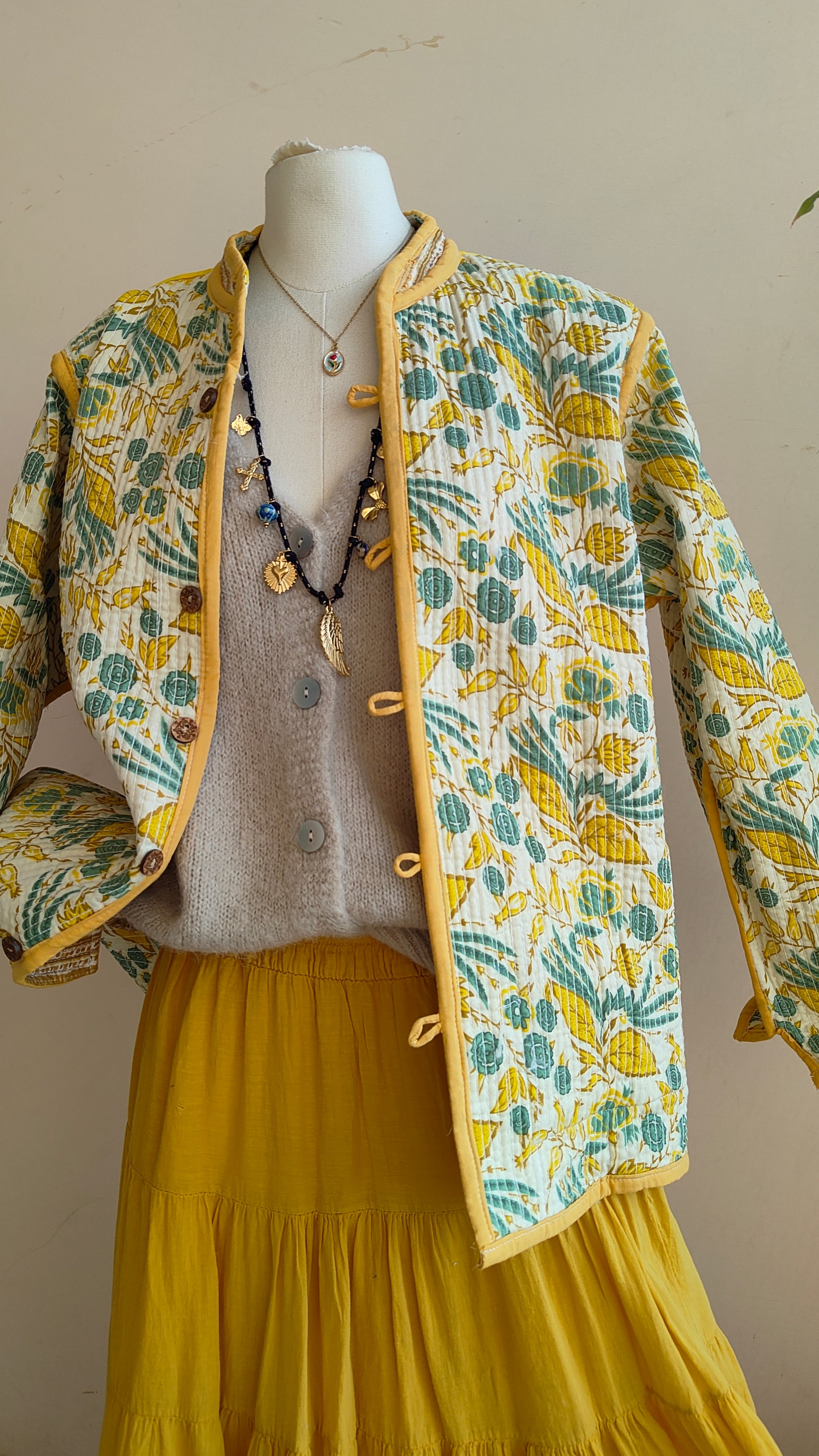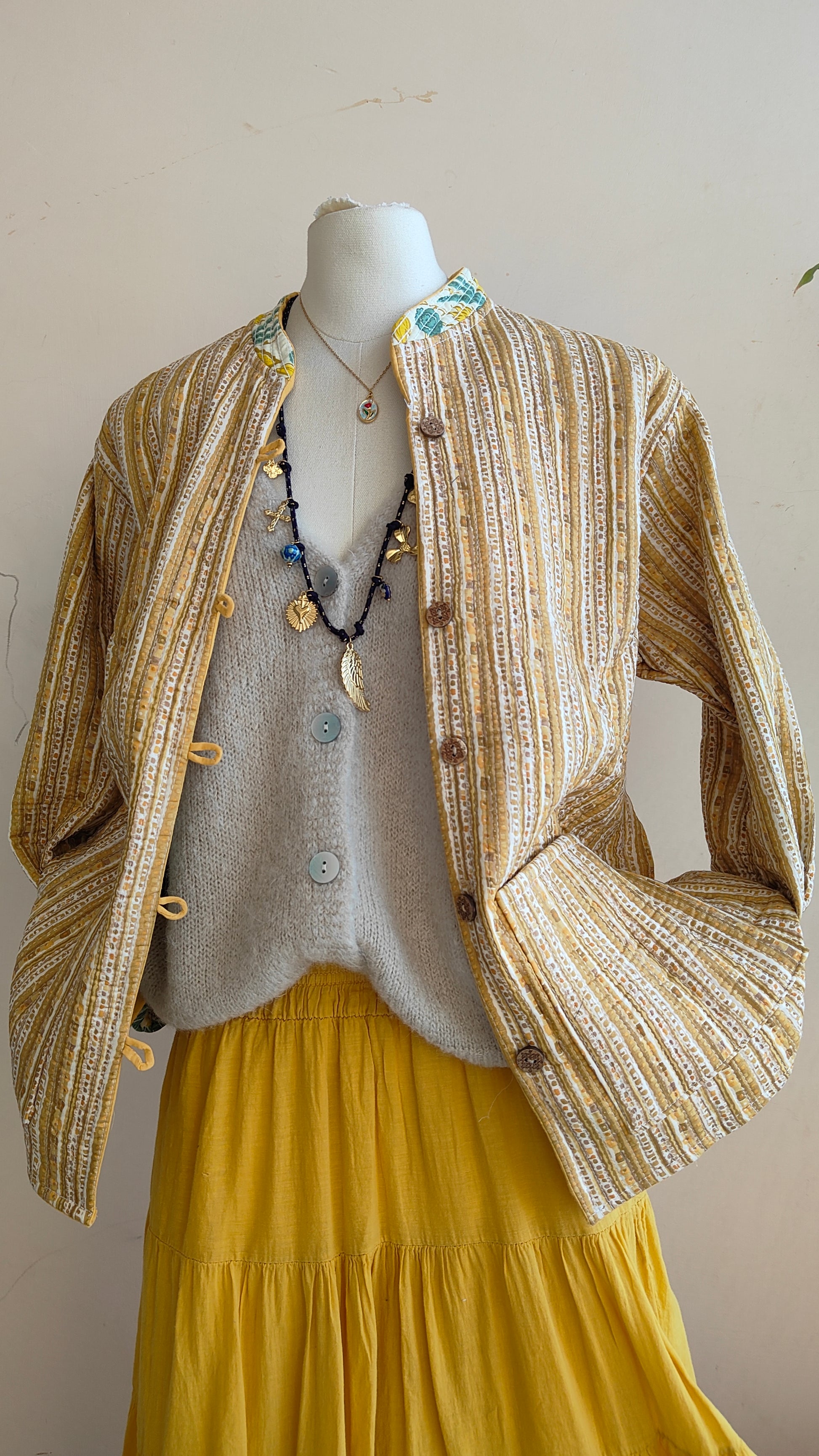 La linea morbida e il tessuto leggermente trapuntato la rendono perfetta per la mezza stagione. Indossarla aperta su un abito o stringi in vita con una cintura per un look più definito.