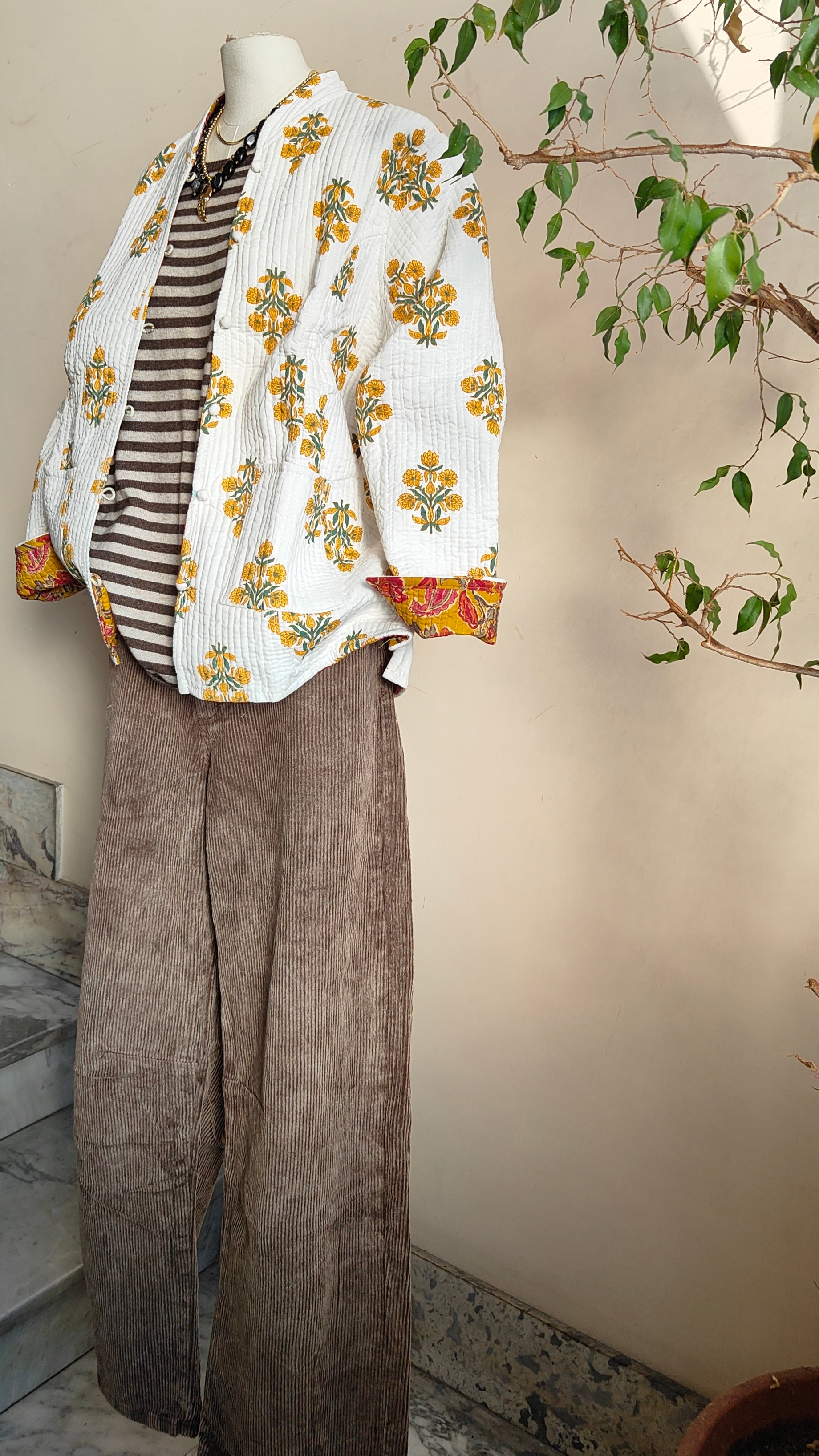 Un capo speciale, pensato per accompagnarti con stile e versatilità. La Giacca Duale è realizzata interamente in cotone e presenta due fantasie differenti, da indossare in base all’umore o all’occasione: un lato più deciso, l’altro più delicato. È come avere due giacche in una sola.