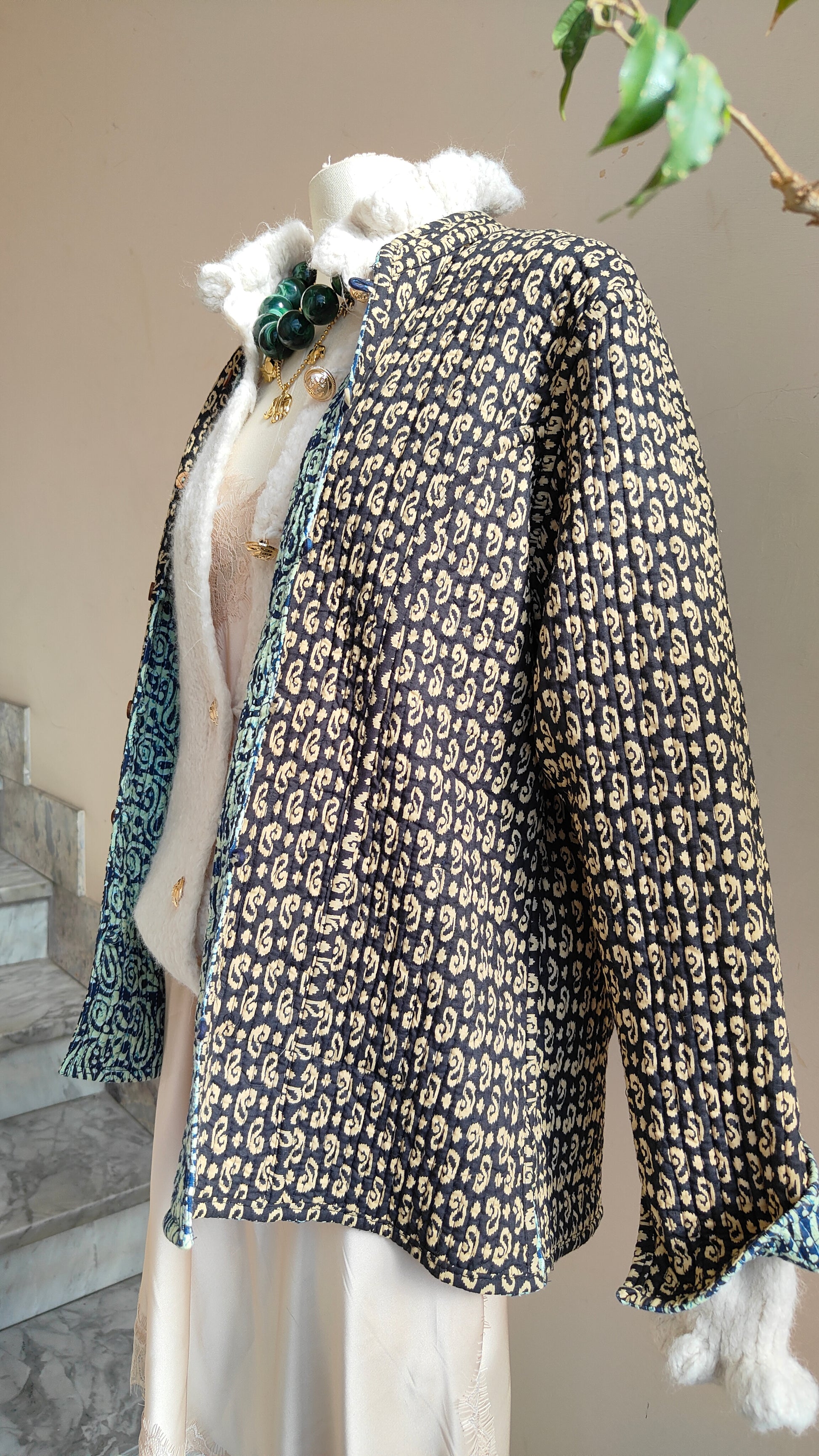 Un capo speciale, pensato per accompagnarti con stile e versatilità. La Giacca Duale è realizzata interamente in cotone e presenta due fantasie differenti, da indossare in base all’umore o all’occasione: un lato più deciso, l’altro più delicato. È come avere due giacche in una sola.