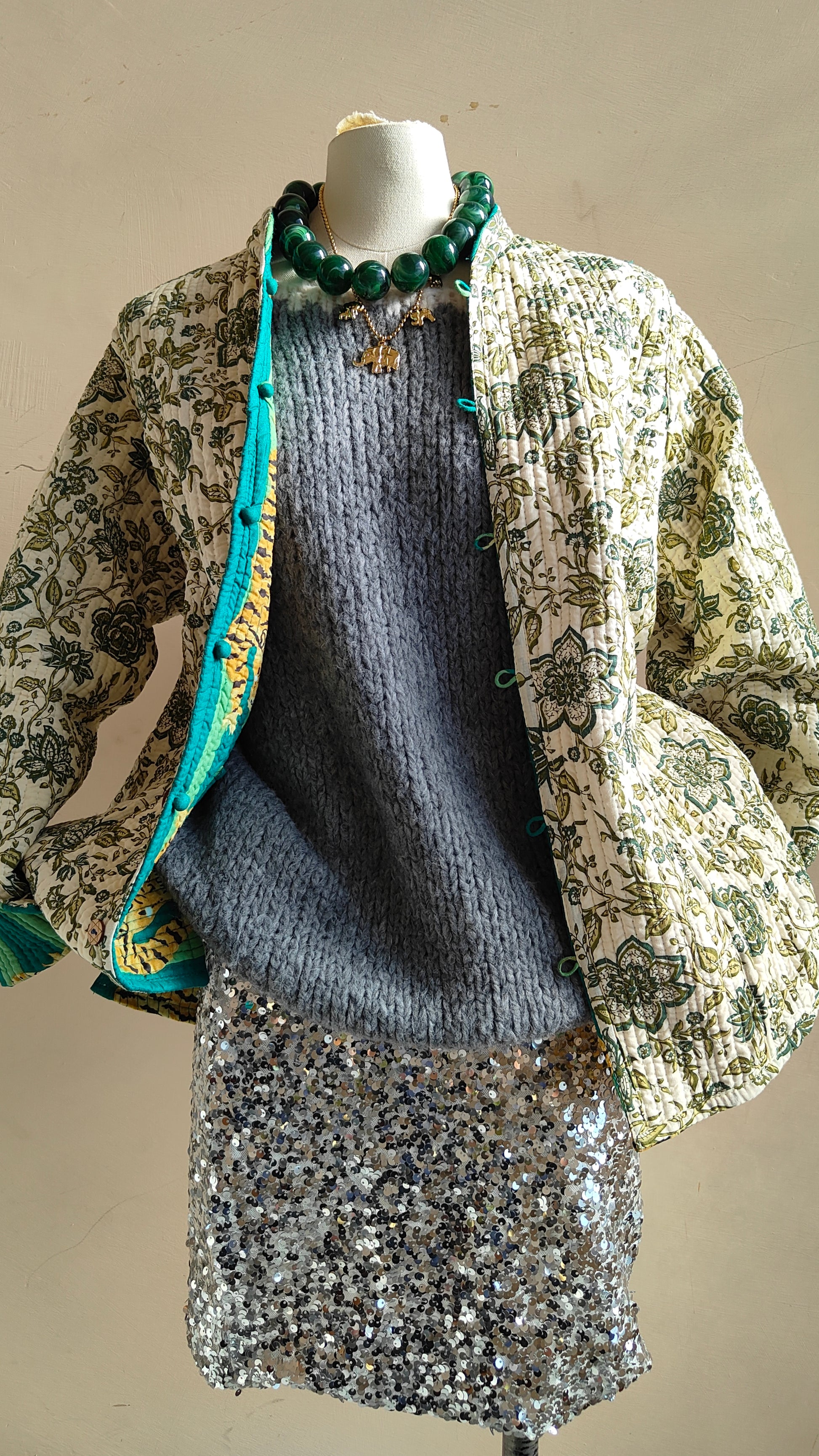 La linea morbida e il tessuto leggermente trapuntato la rendono perfetta per la mezza stagione. Indossarla aperta su un abito o stringi in vita con una cintura per un look più definito.