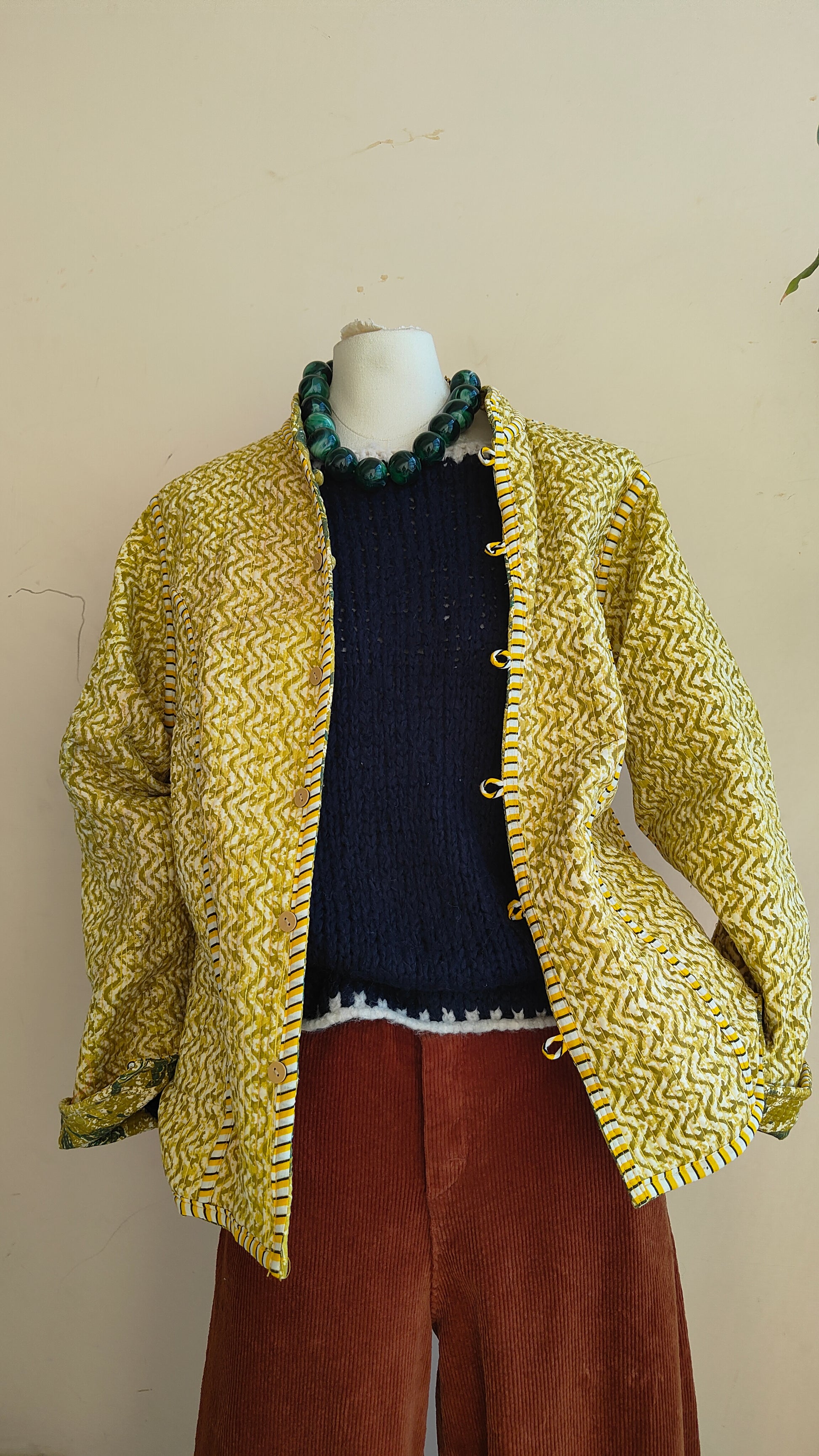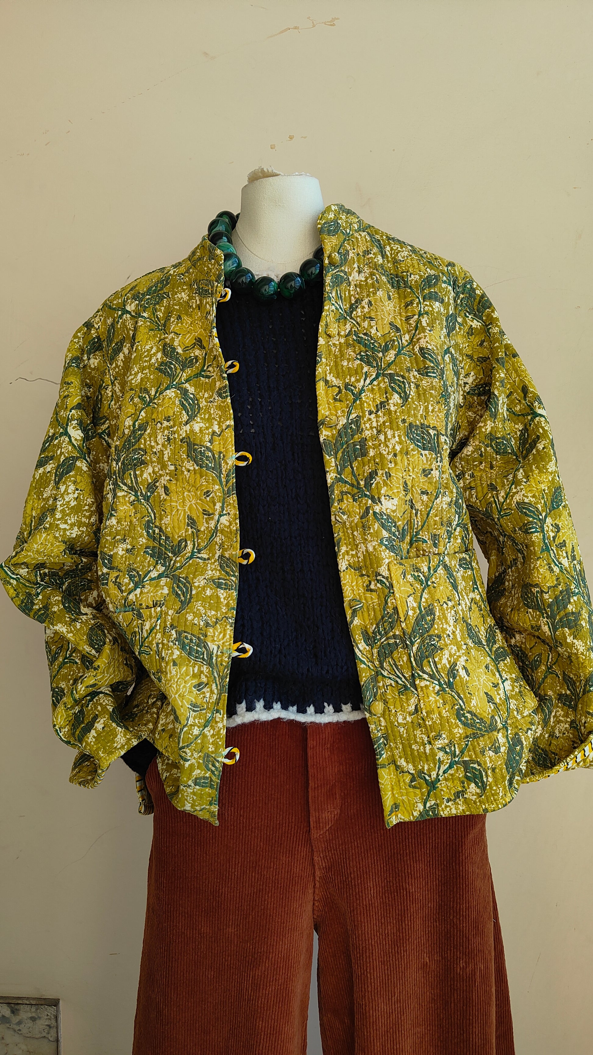 La linea morbida e il tessuto leggermente trapuntato la rendono perfetta per la mezza stagione. Indossarla aperta su un abito o stringi in vita con una cintura per un look più definito.