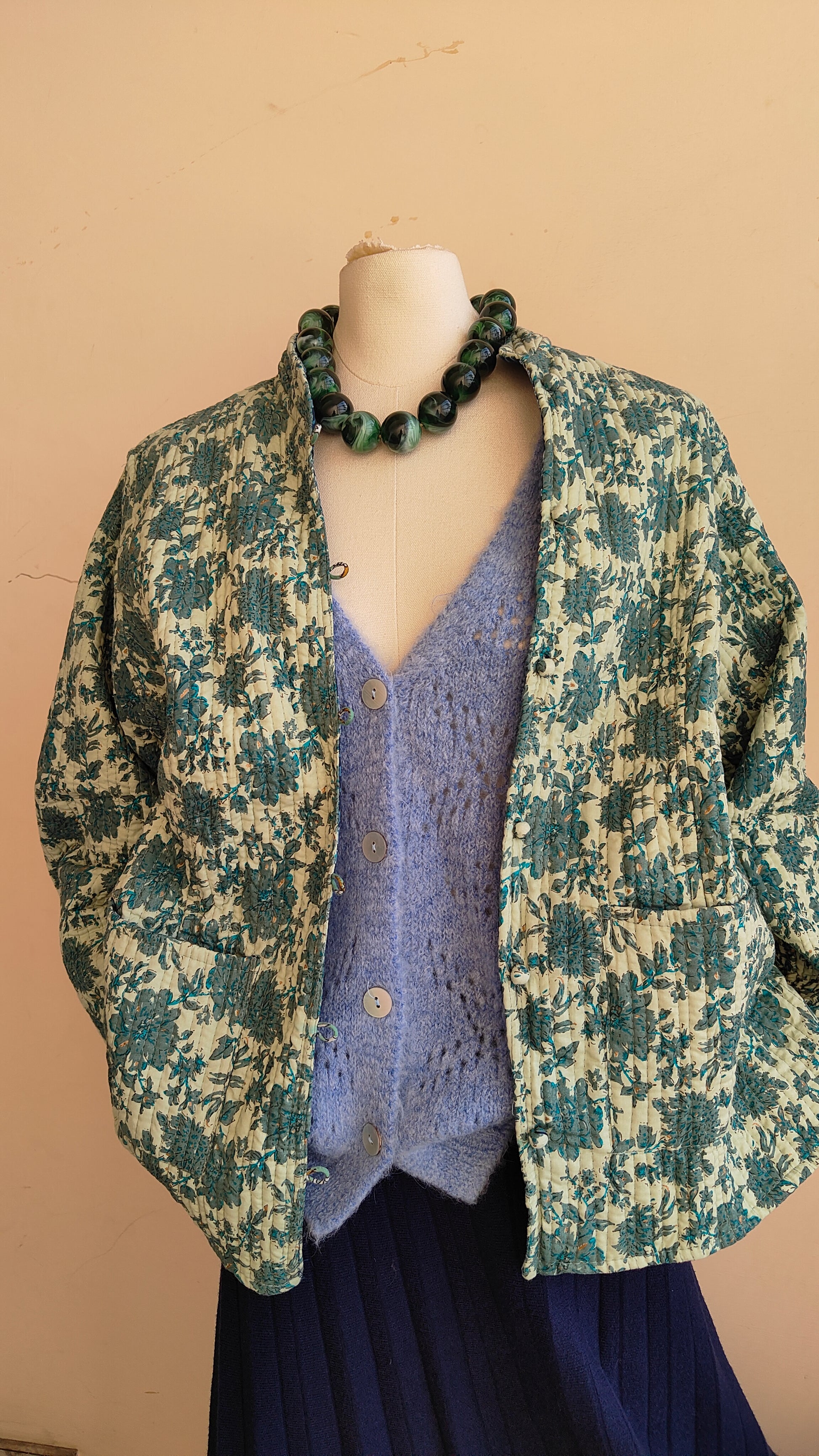 La linea morbida e il tessuto leggermente trapuntato la rendono perfetta per la mezza stagione. Indossarla aperta su un abito o stringi in vita con una cintura per un look più definito.