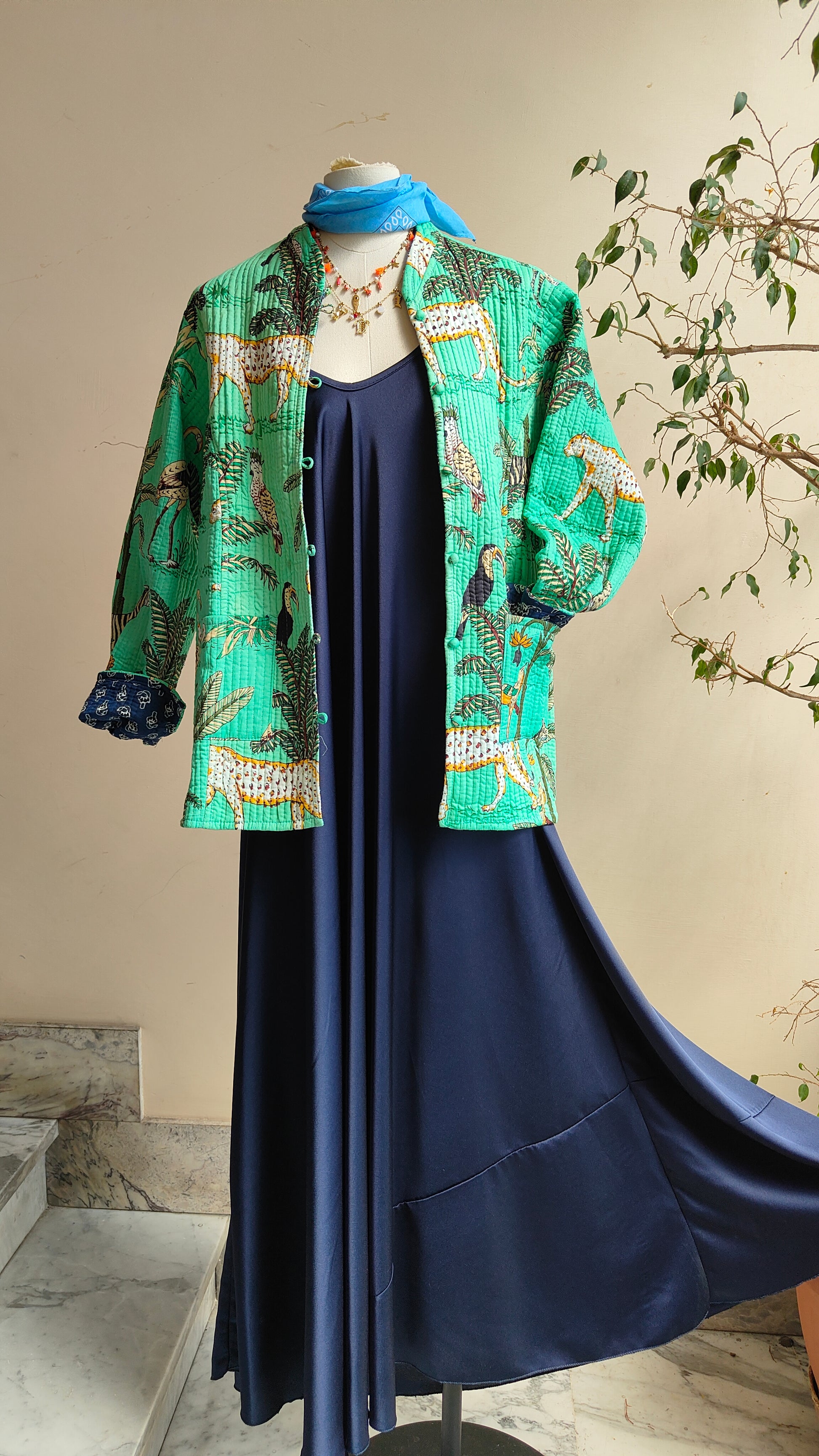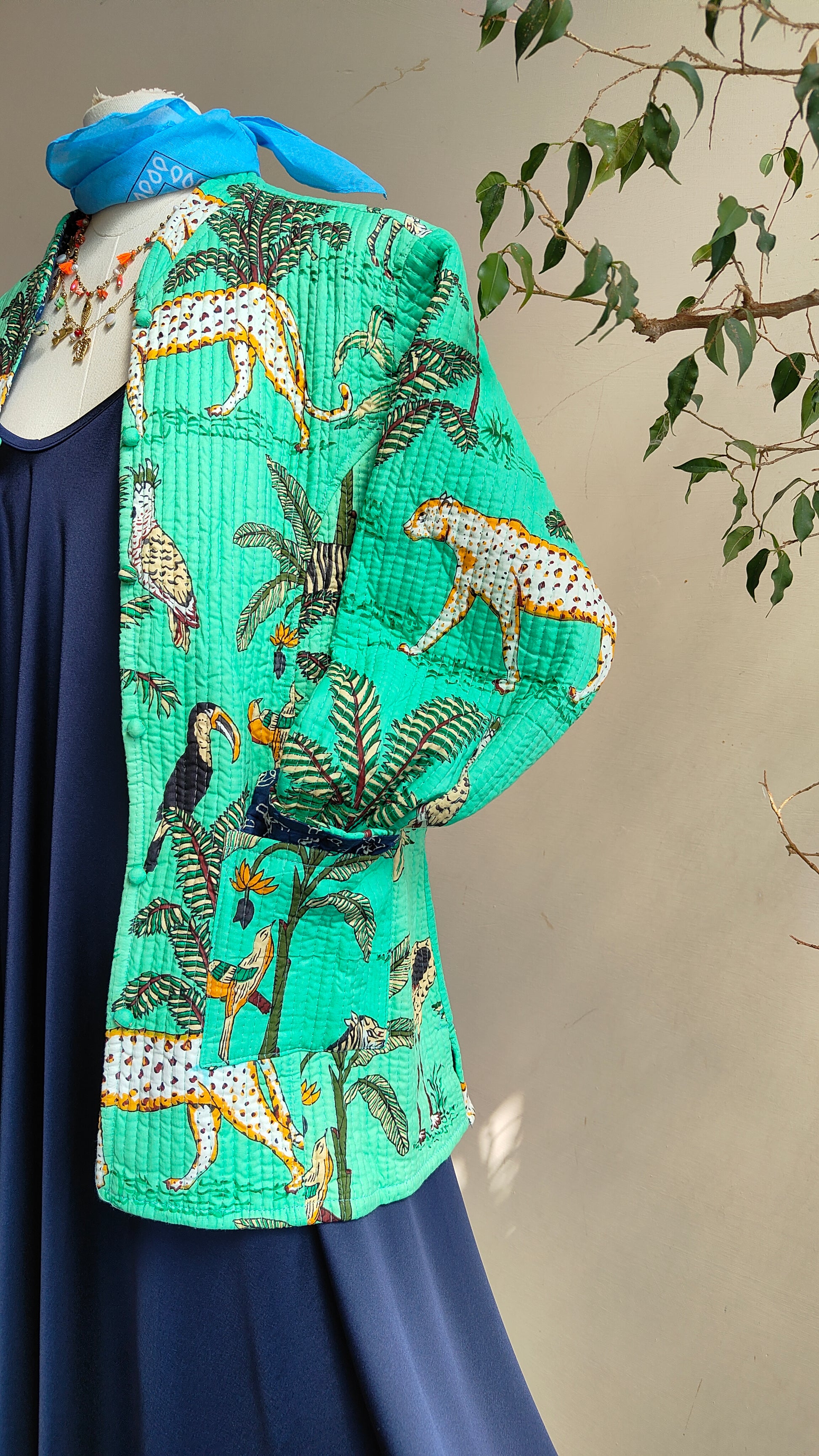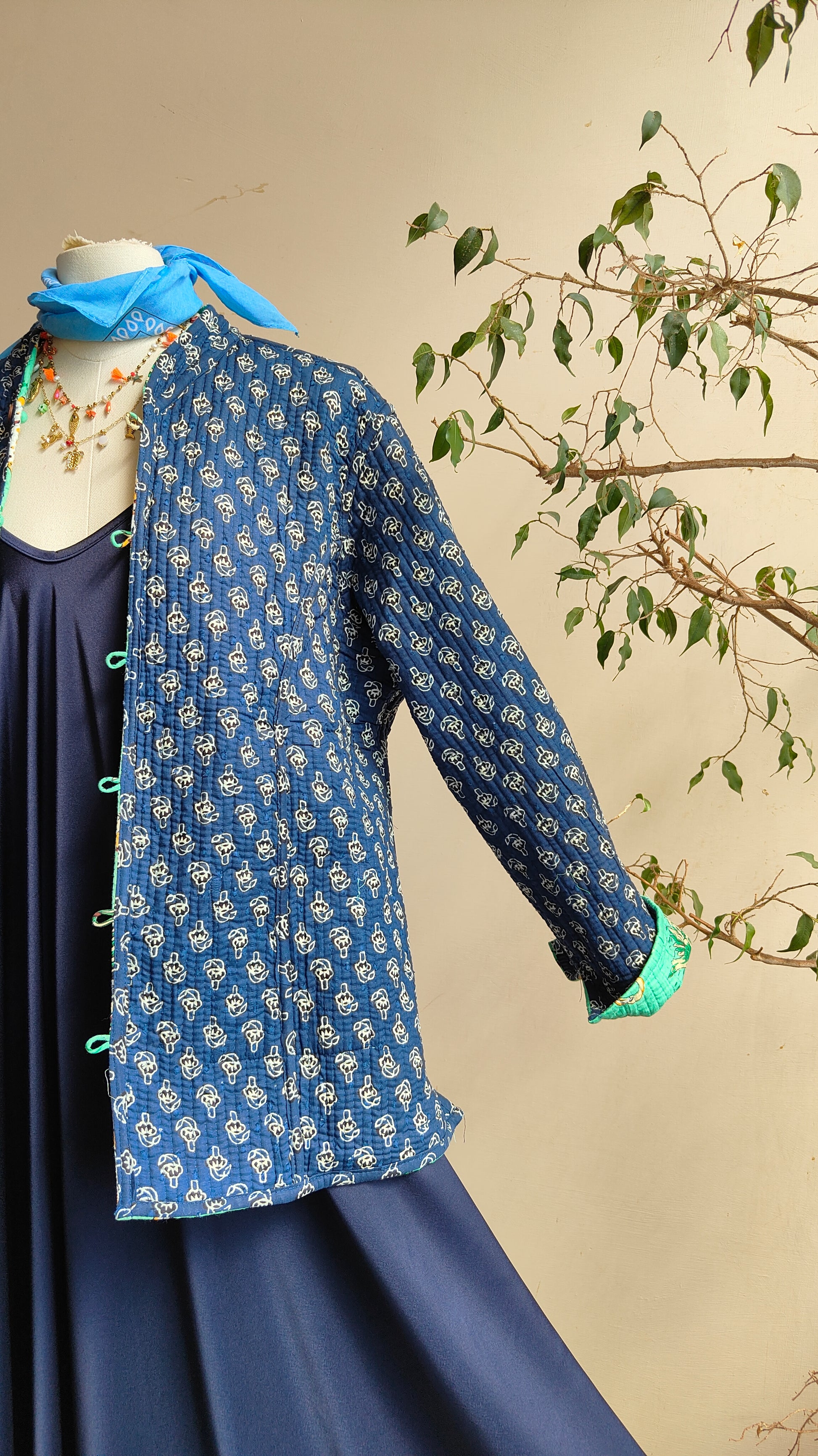 La linea morbida e il tessuto leggermente trapuntato la rendono perfetta per la mezza stagione. Indossarla aperta su un abito o stringi in vita con una cintura per un look più definito.