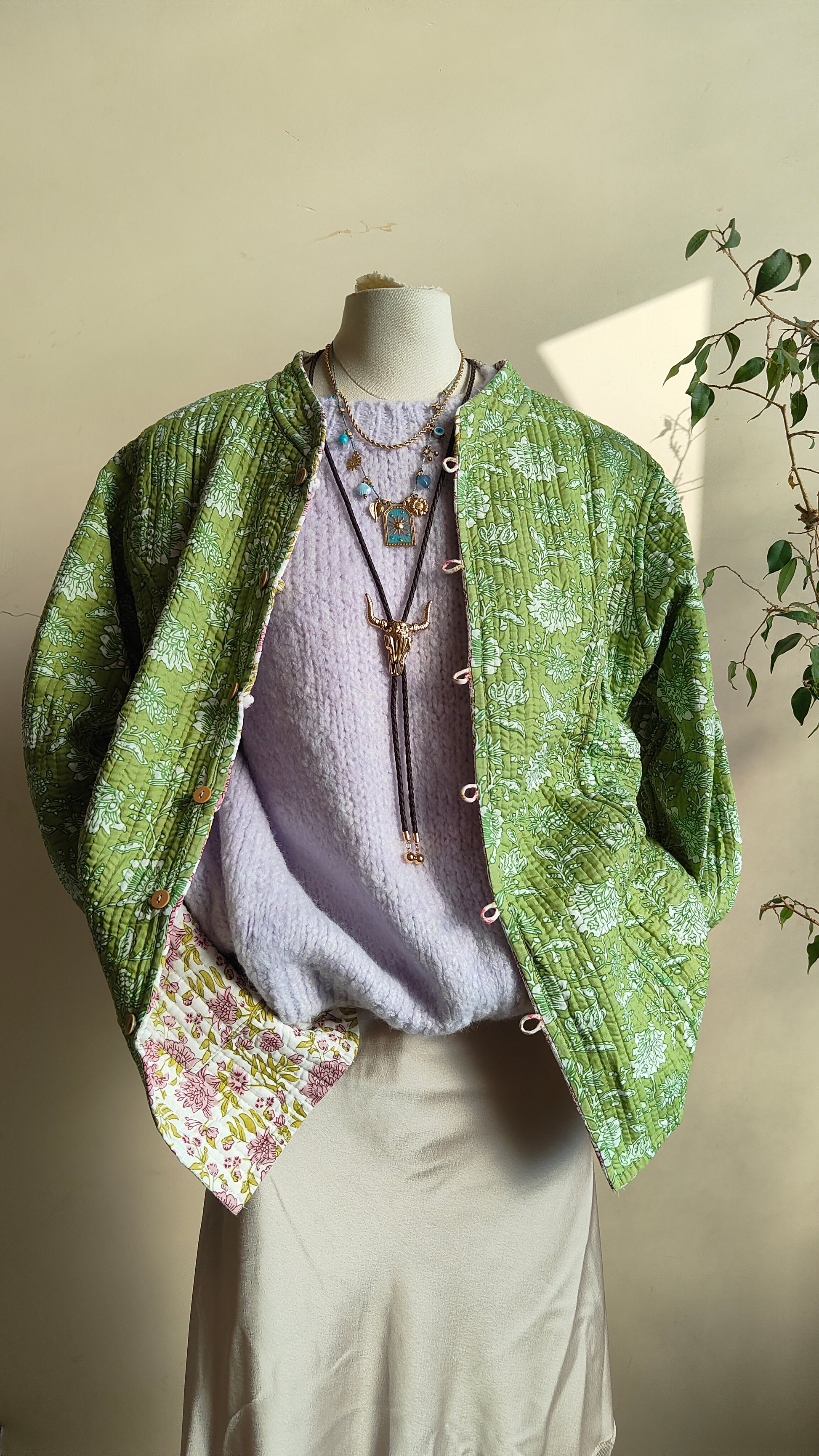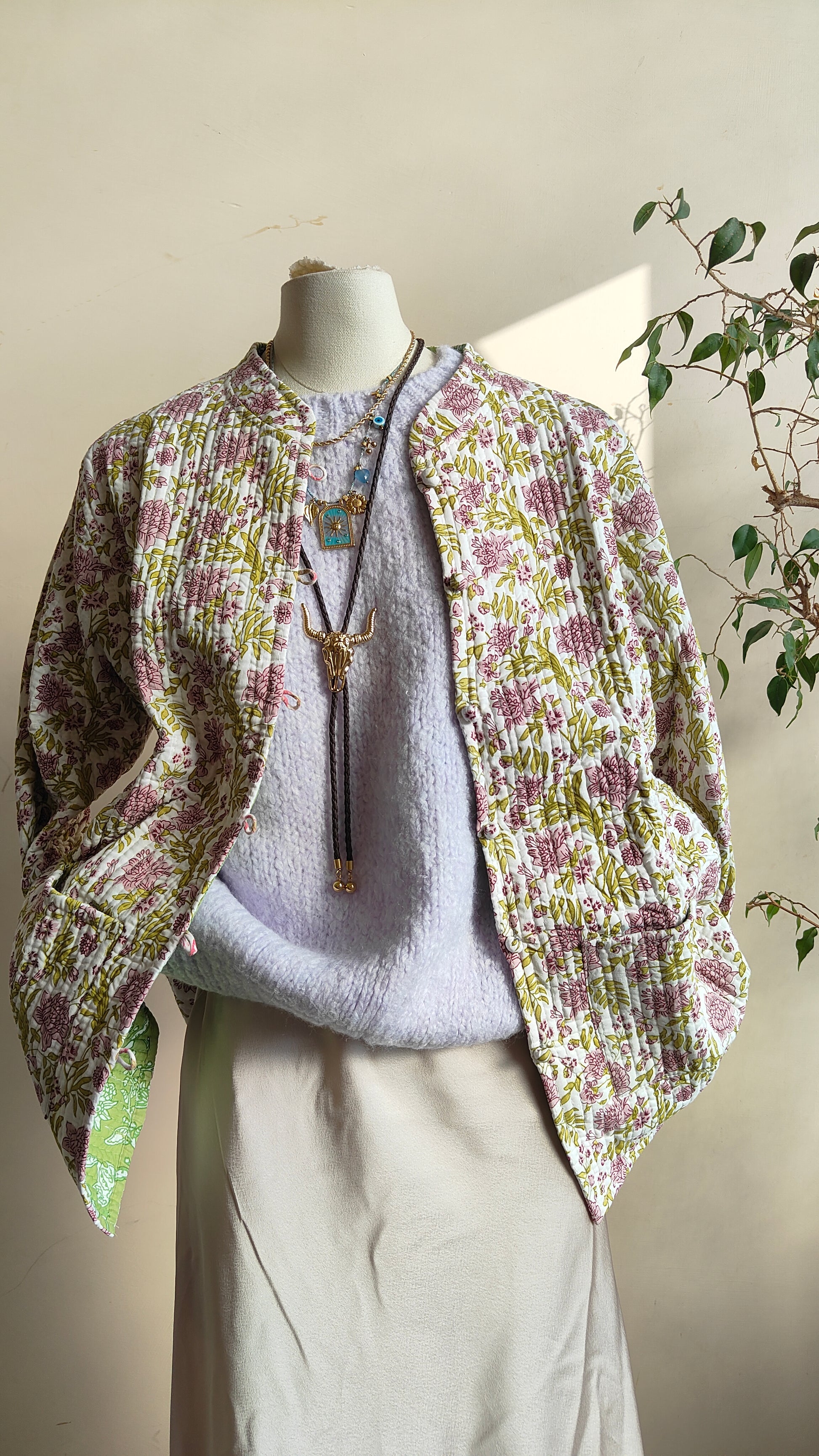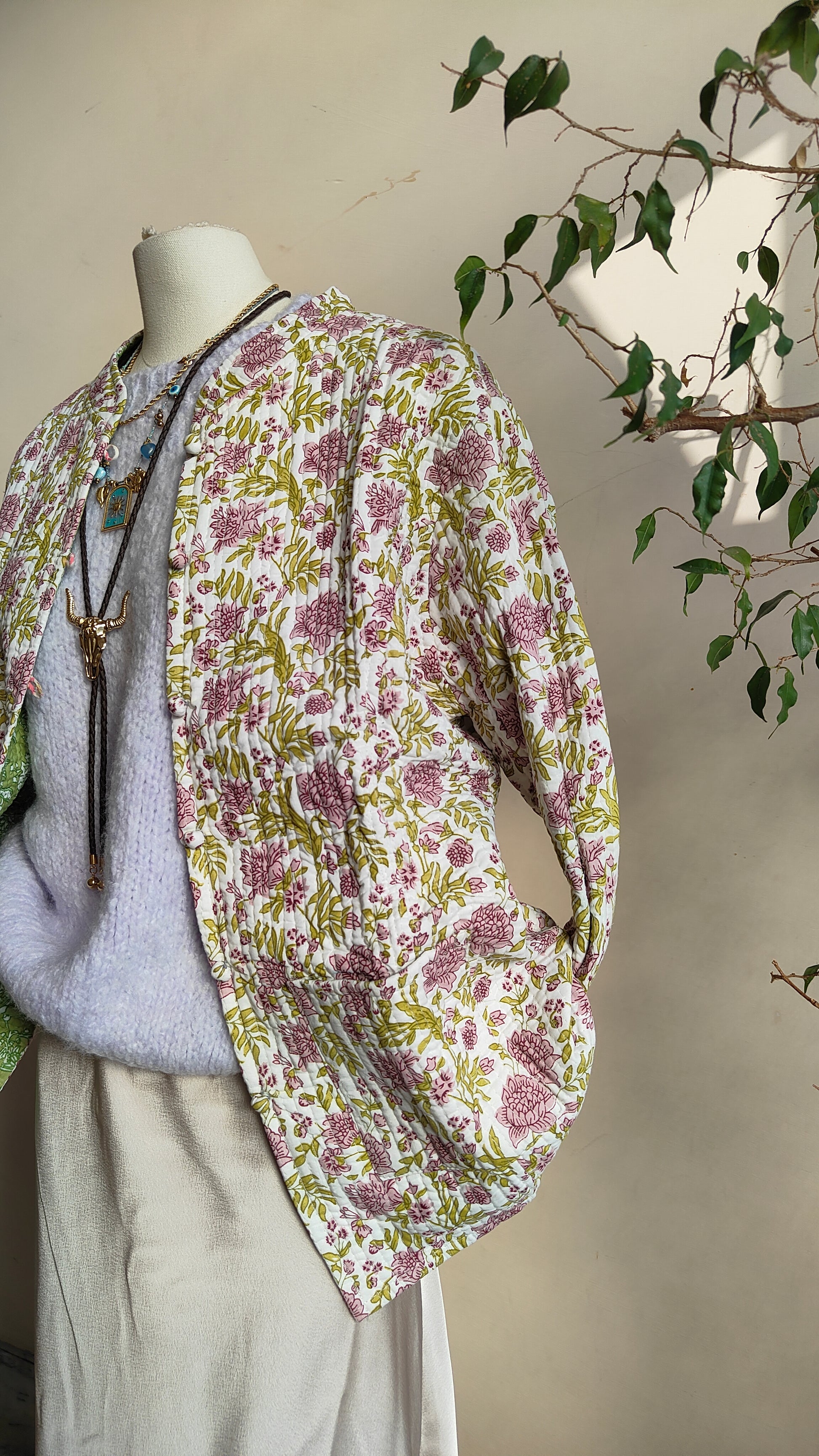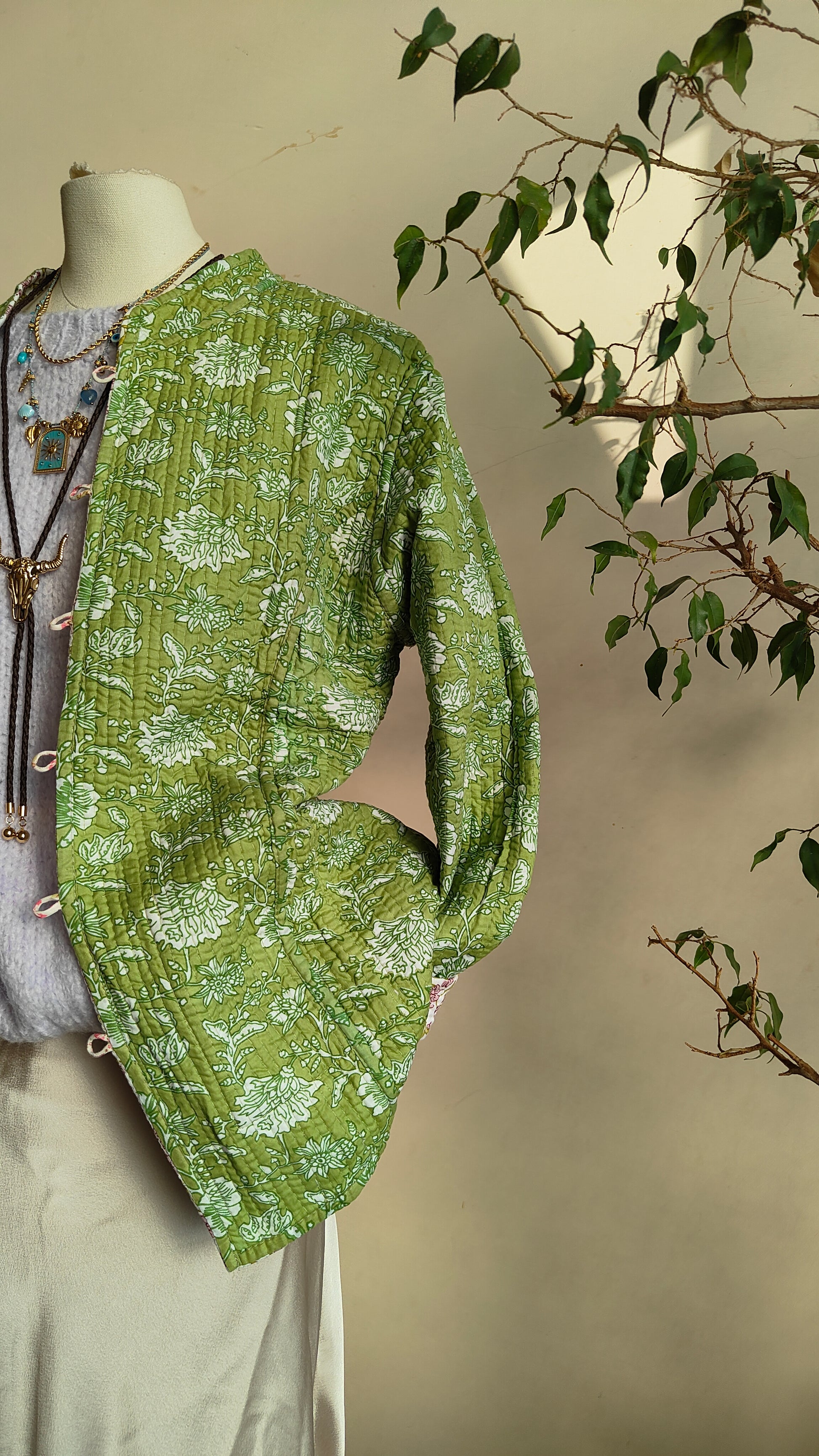 La linea morbida e il tessuto leggermente trapuntato la rendono perfetta per la mezza stagione. Indossarla aperta su un abito o stringi in vita con una cintura per un look più definito.