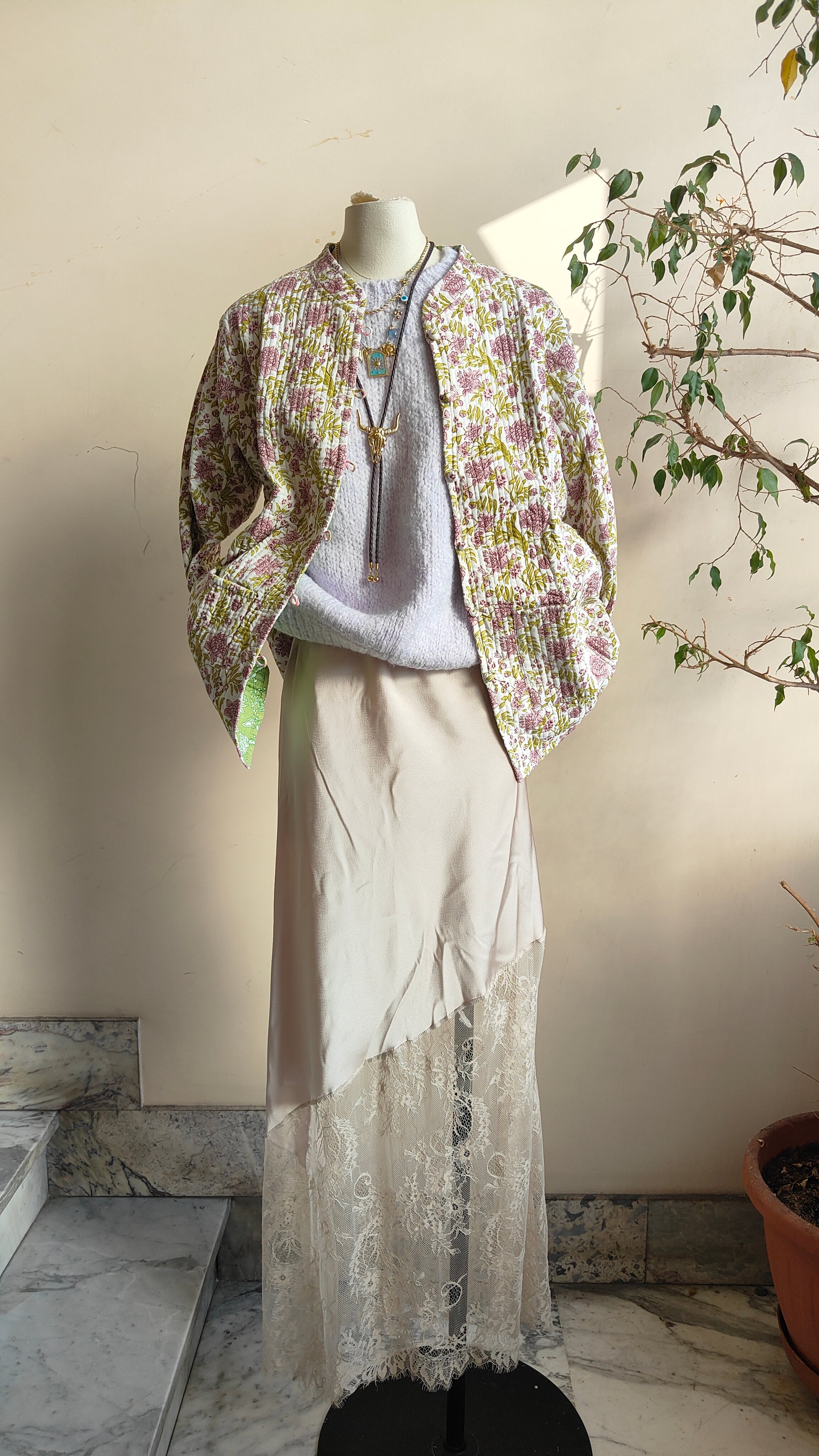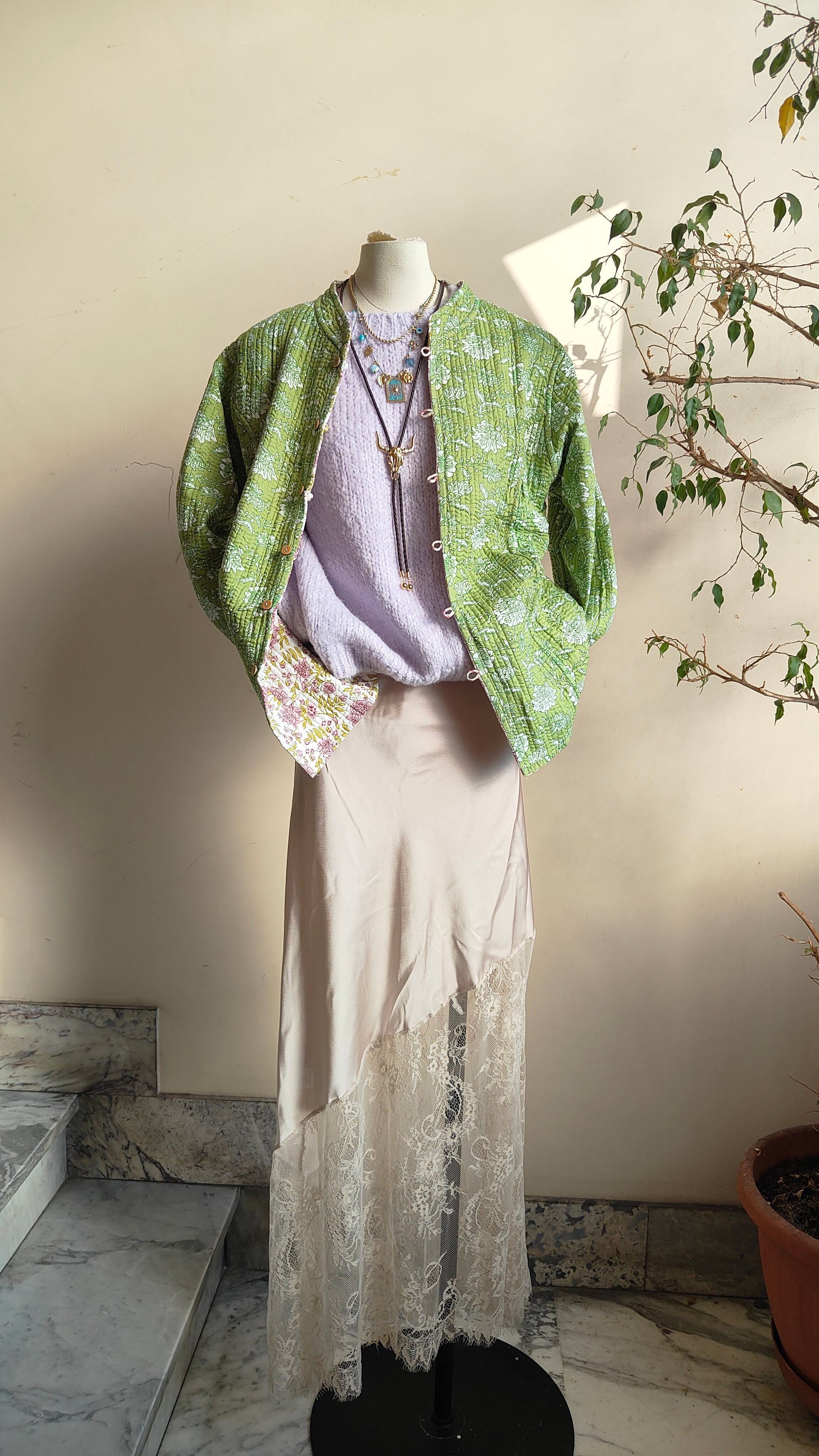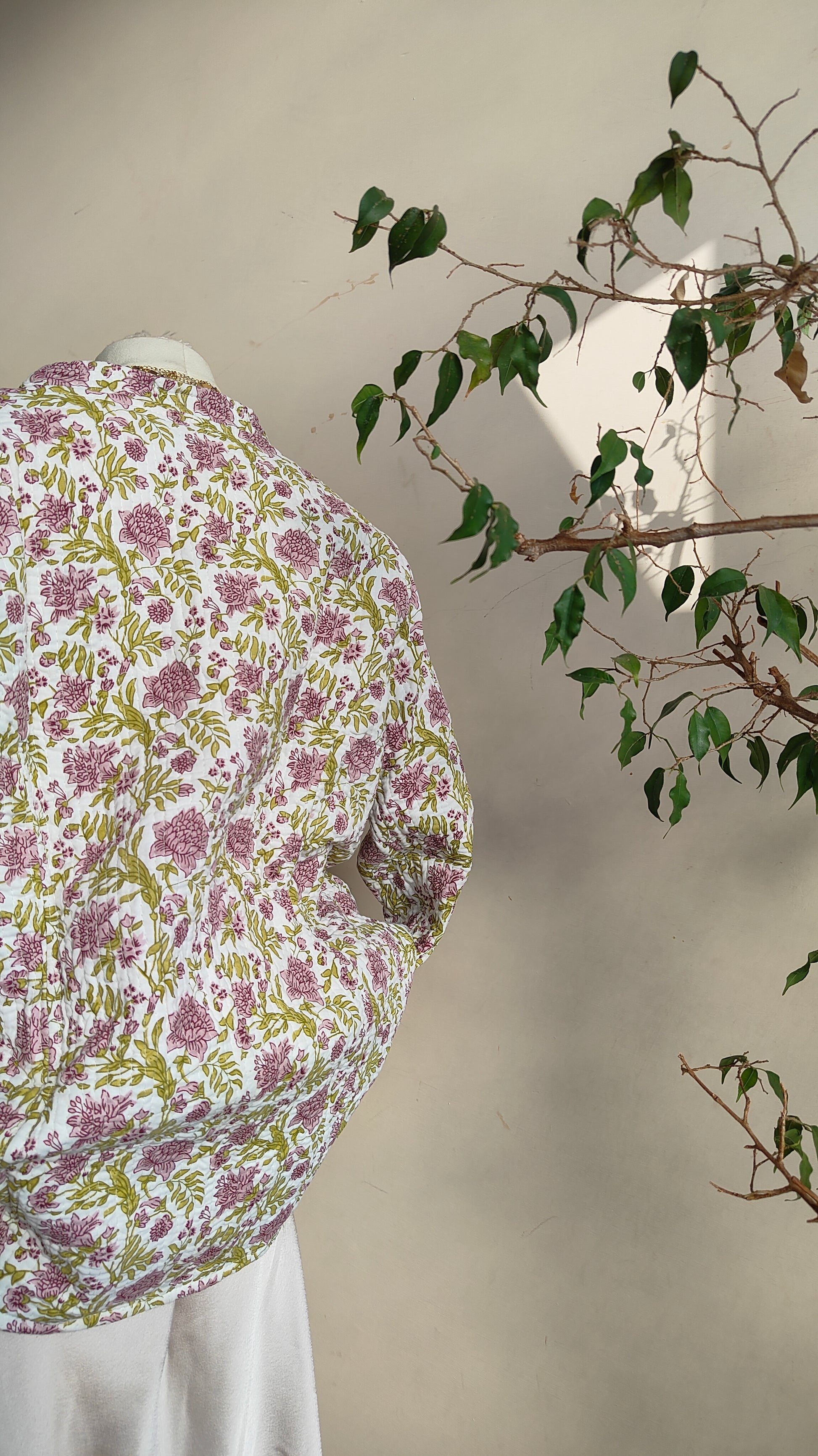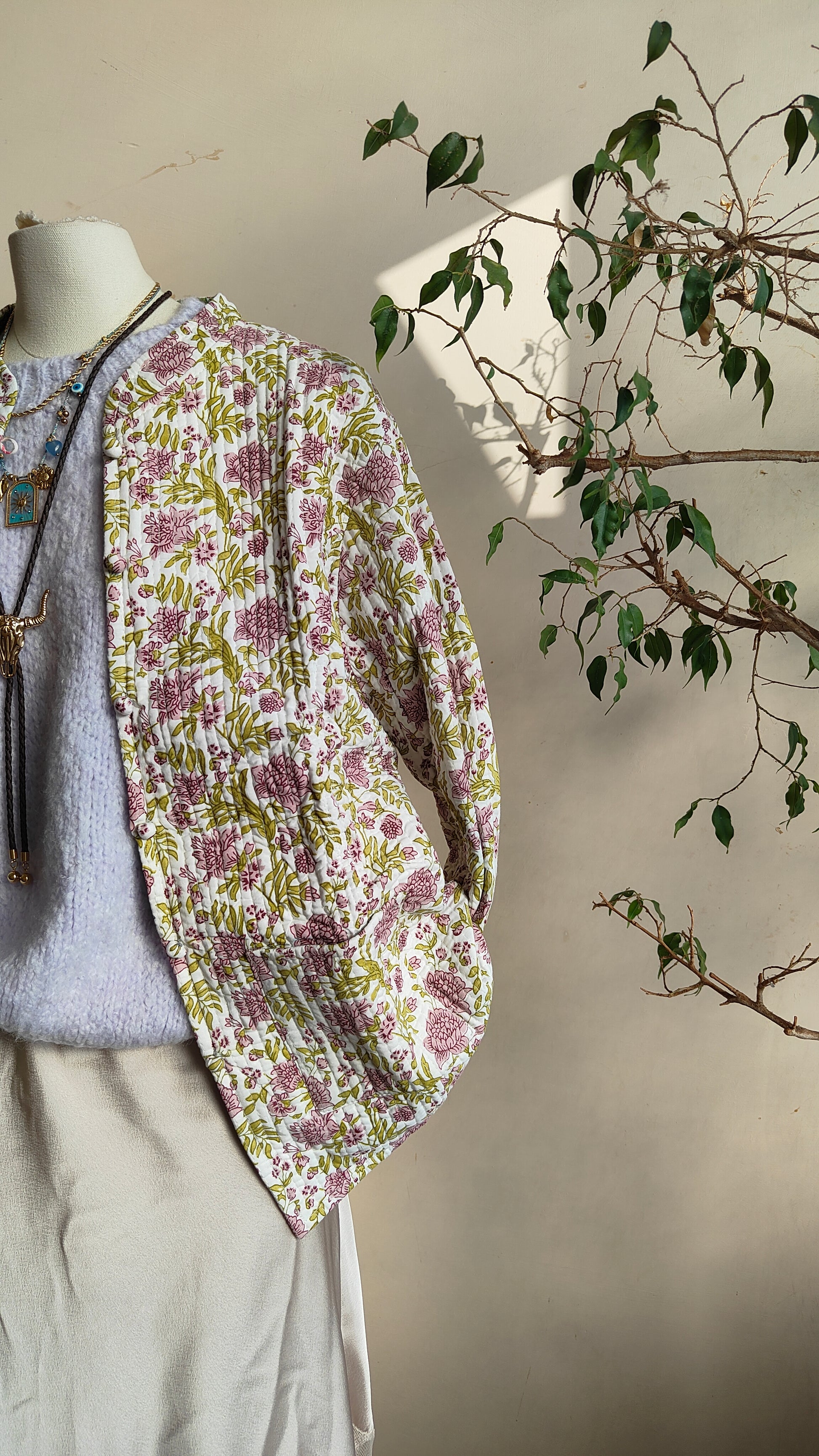 La linea morbida e il tessuto leggermente trapuntato la rendono perfetta per la mezza stagione. Indossarla aperta su un abito o stringi in vita con una cintura per un look più definito.