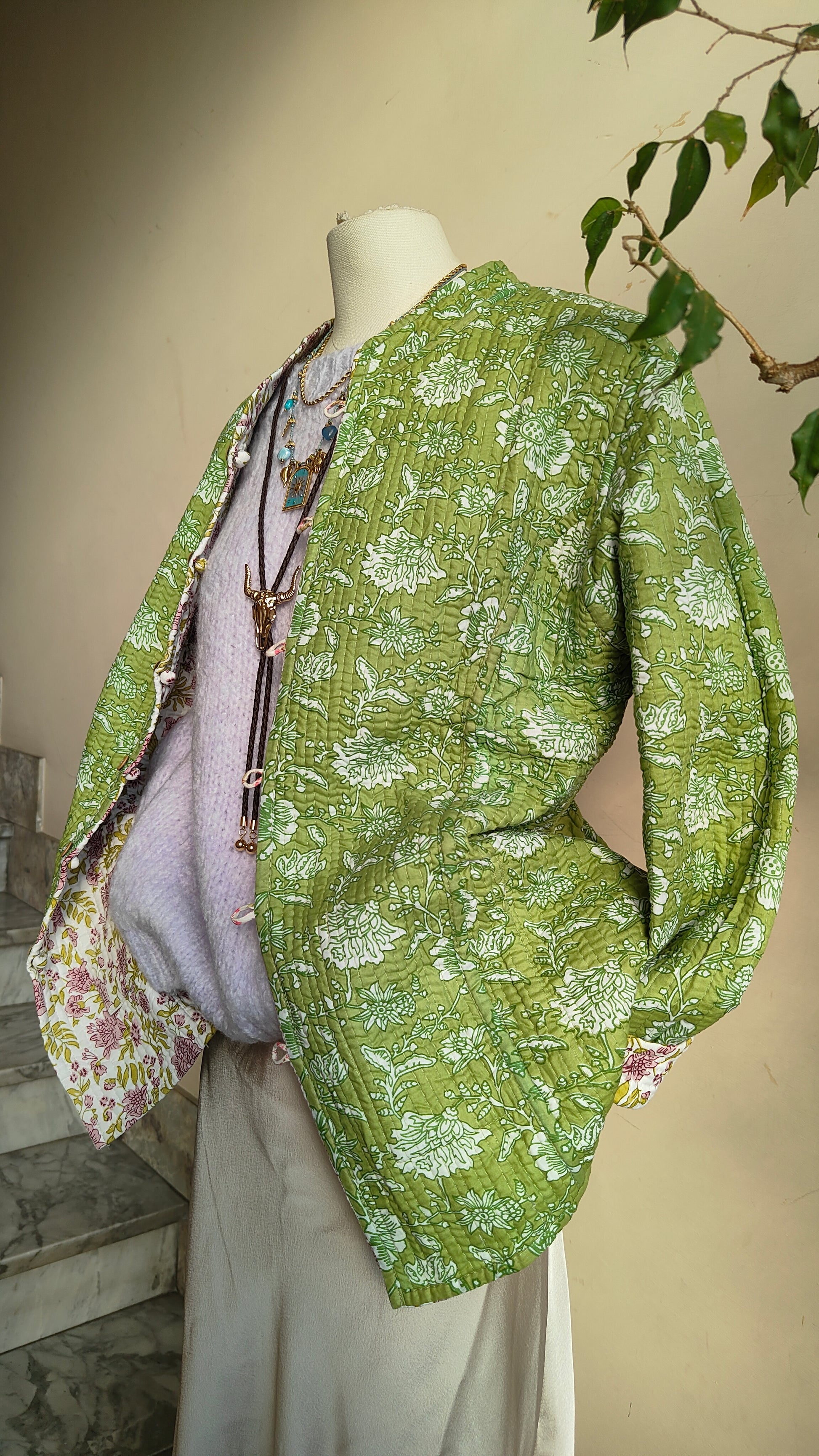 Un capo speciale, pensato per accompagnarti con stile e versatilità. La Giacca Duale è realizzata interamente in cotone e presenta due fantasie differenti, da indossare in base all’umore o all’occasione: un lato più deciso, l’altro più delicato. È come avere due giacche in una sola.