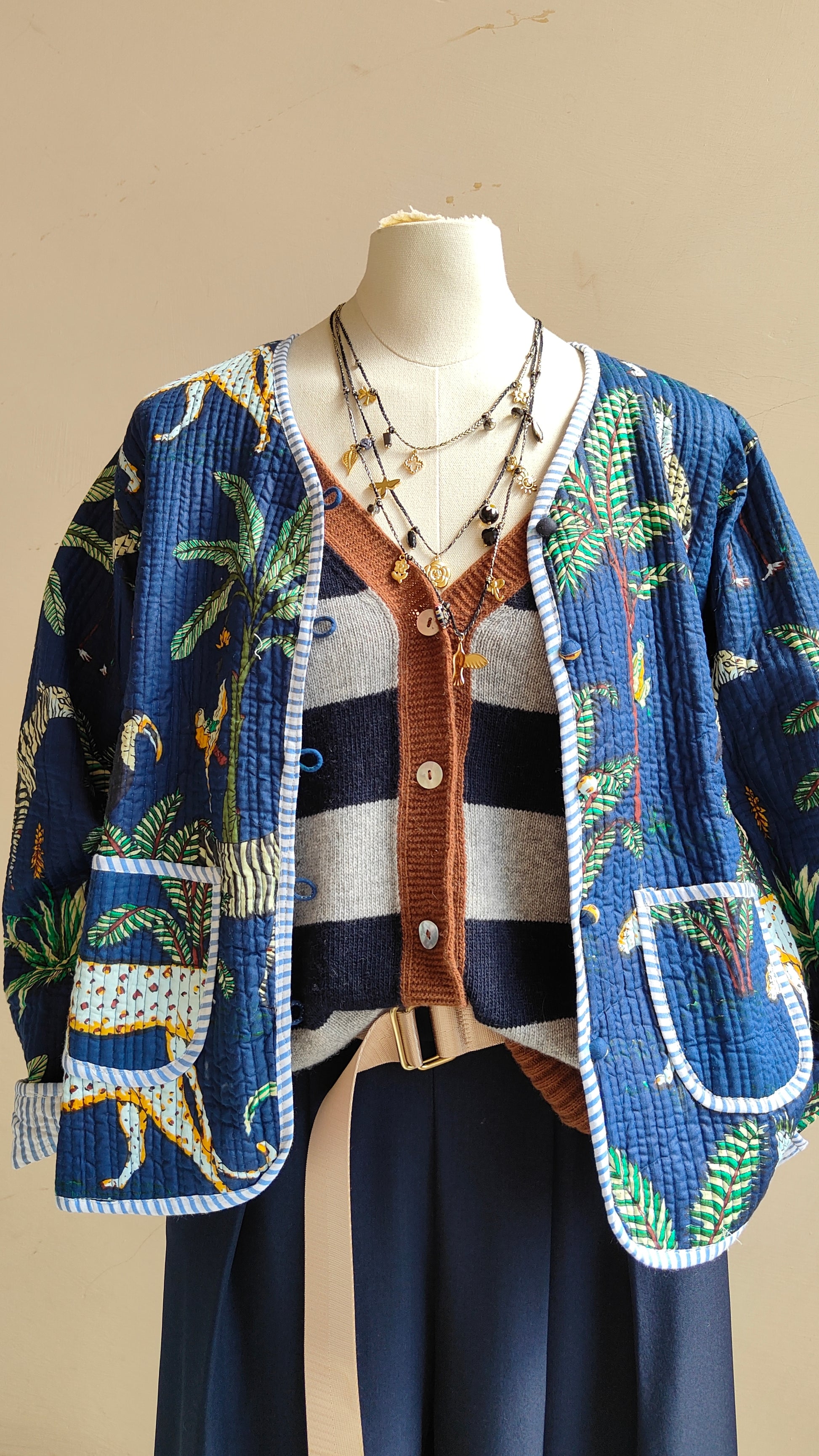 Trapuntata in cotone, morbida al tatto e con una vestibilità comoda, è ideale per completare look casual, ma anche per aggiungere personalità ad outfit più minimal.
