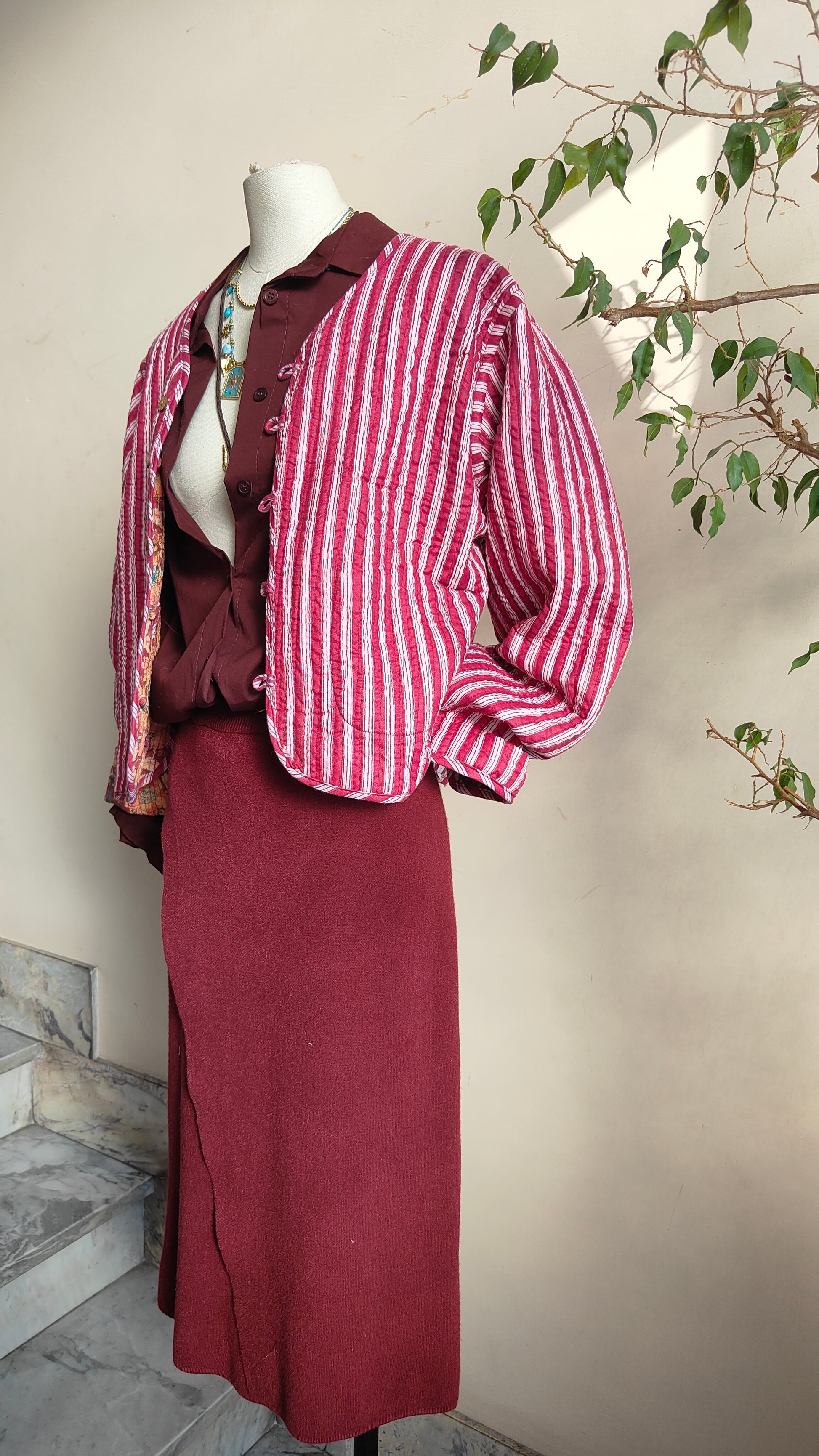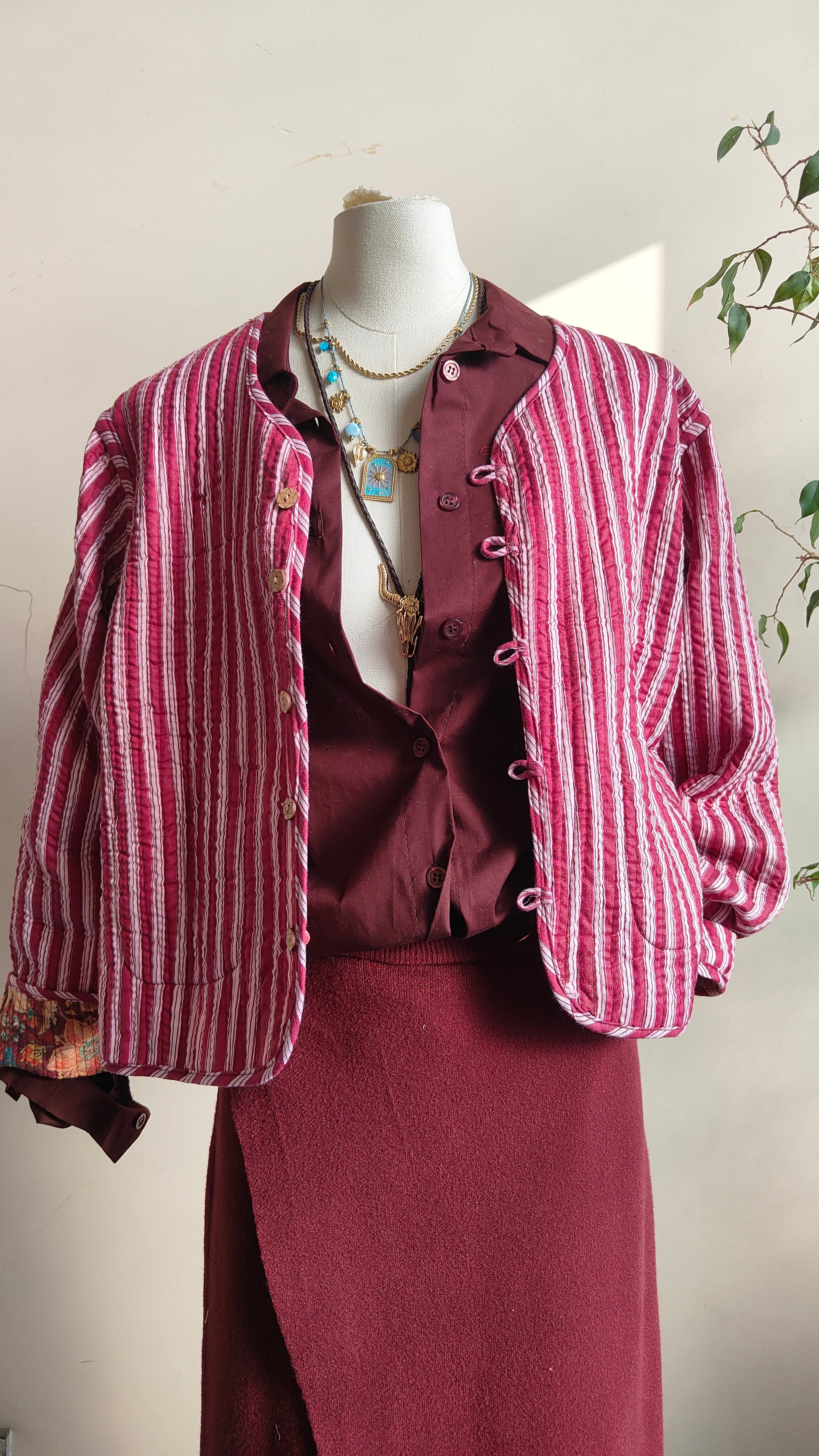Trapuntata in cotone, morbida al tatto e con una vestibilità comoda, è ideale per completare look casual, ma anche per aggiungere personalità ad outfit più minimal.