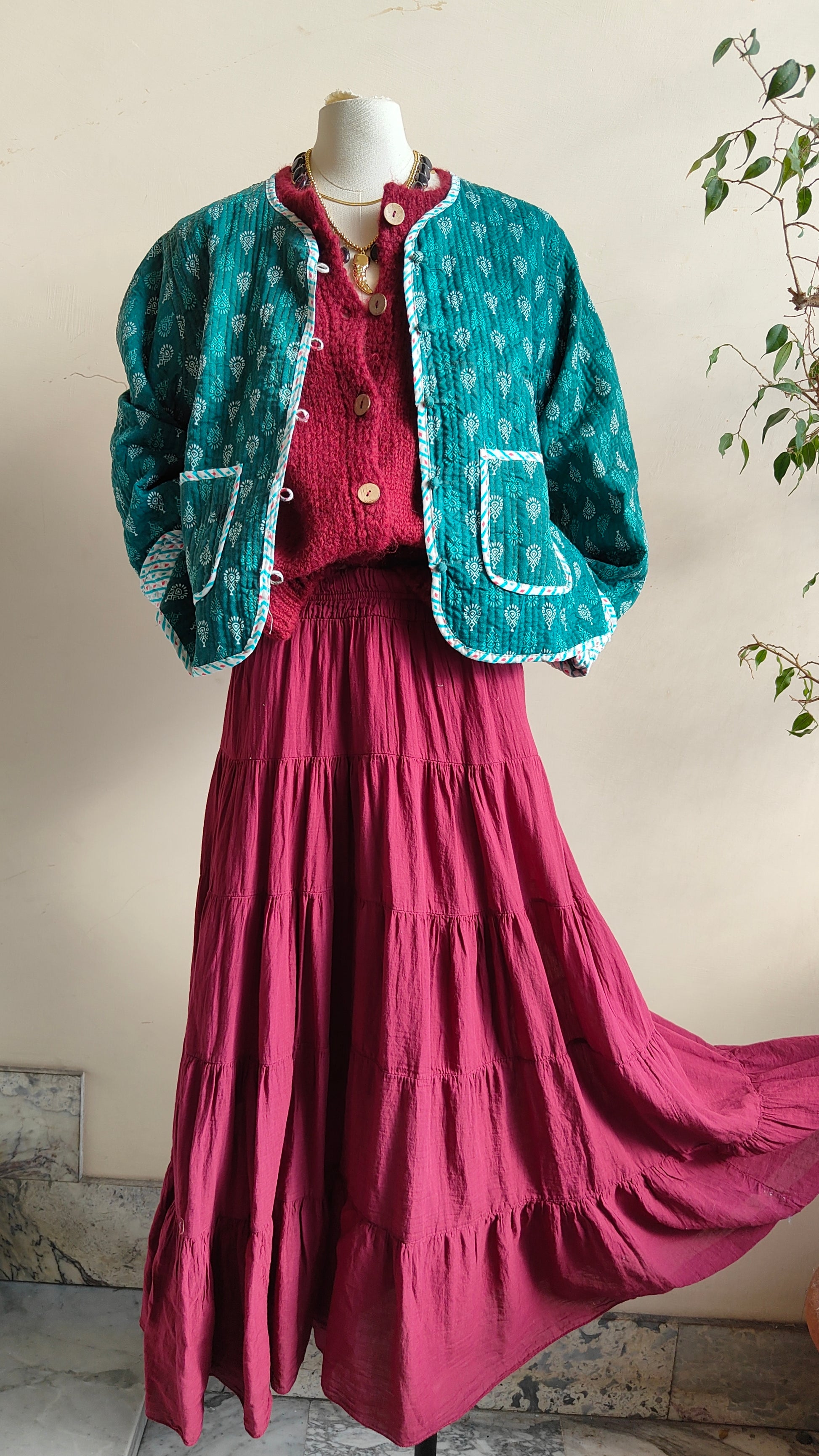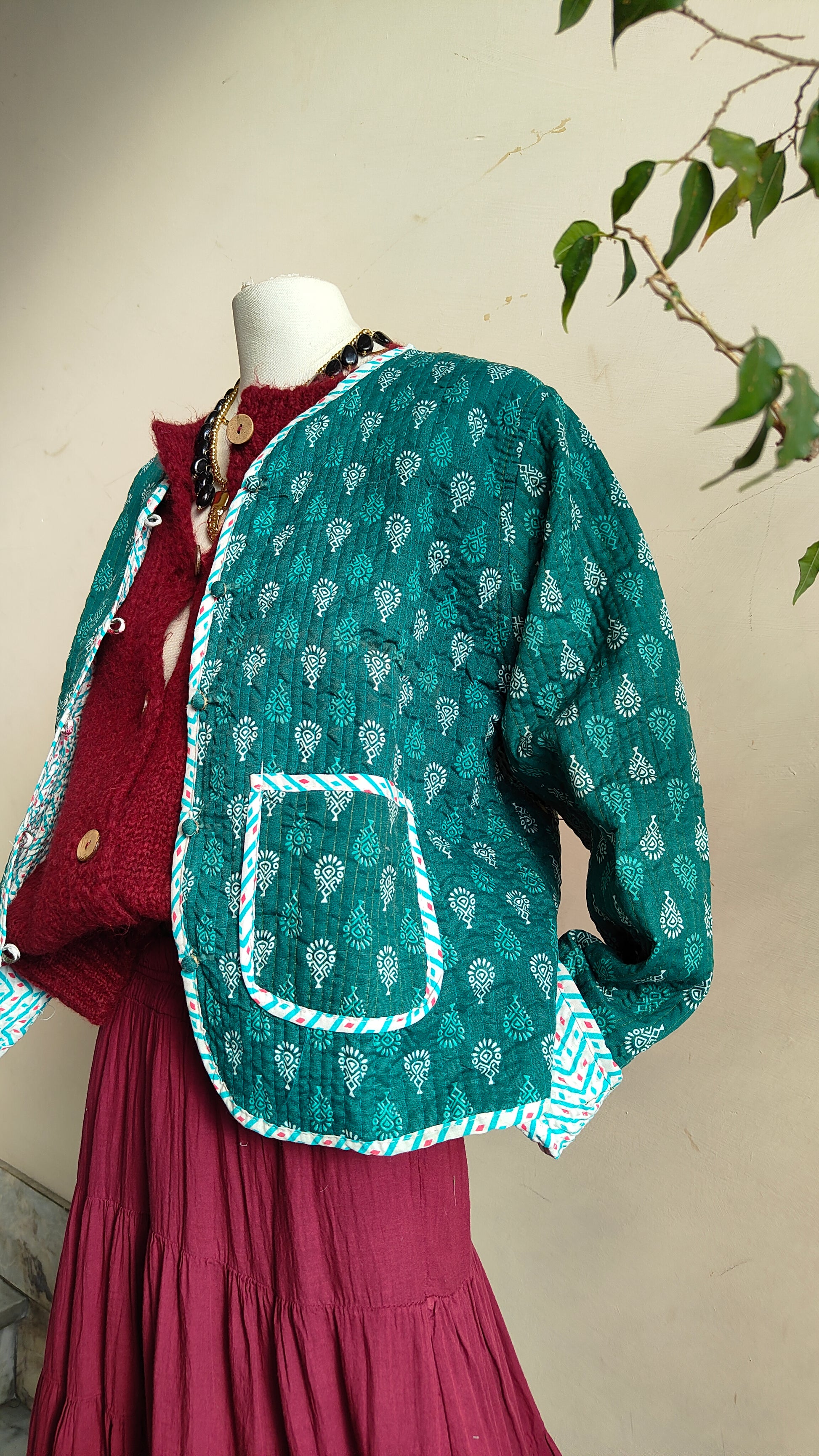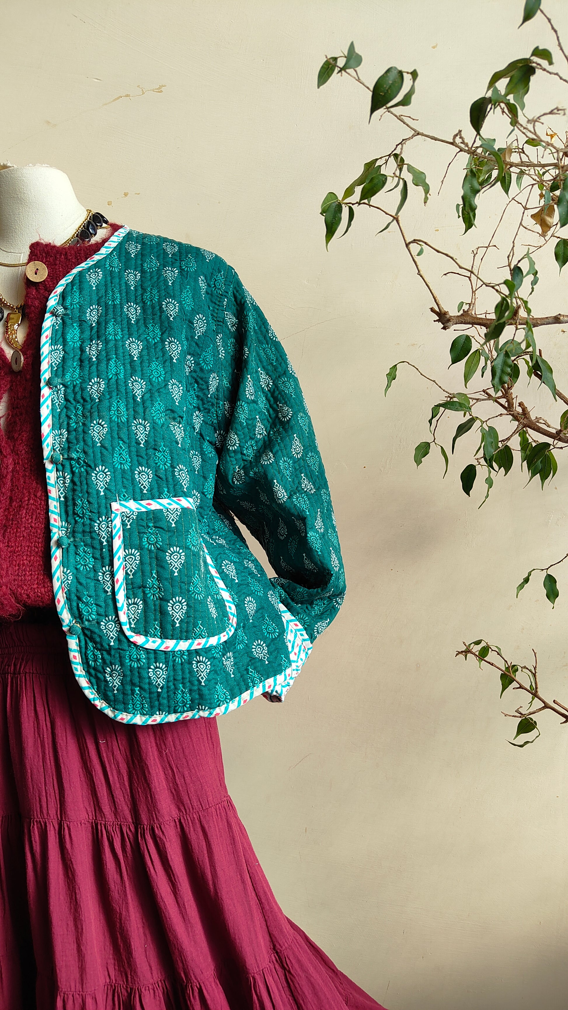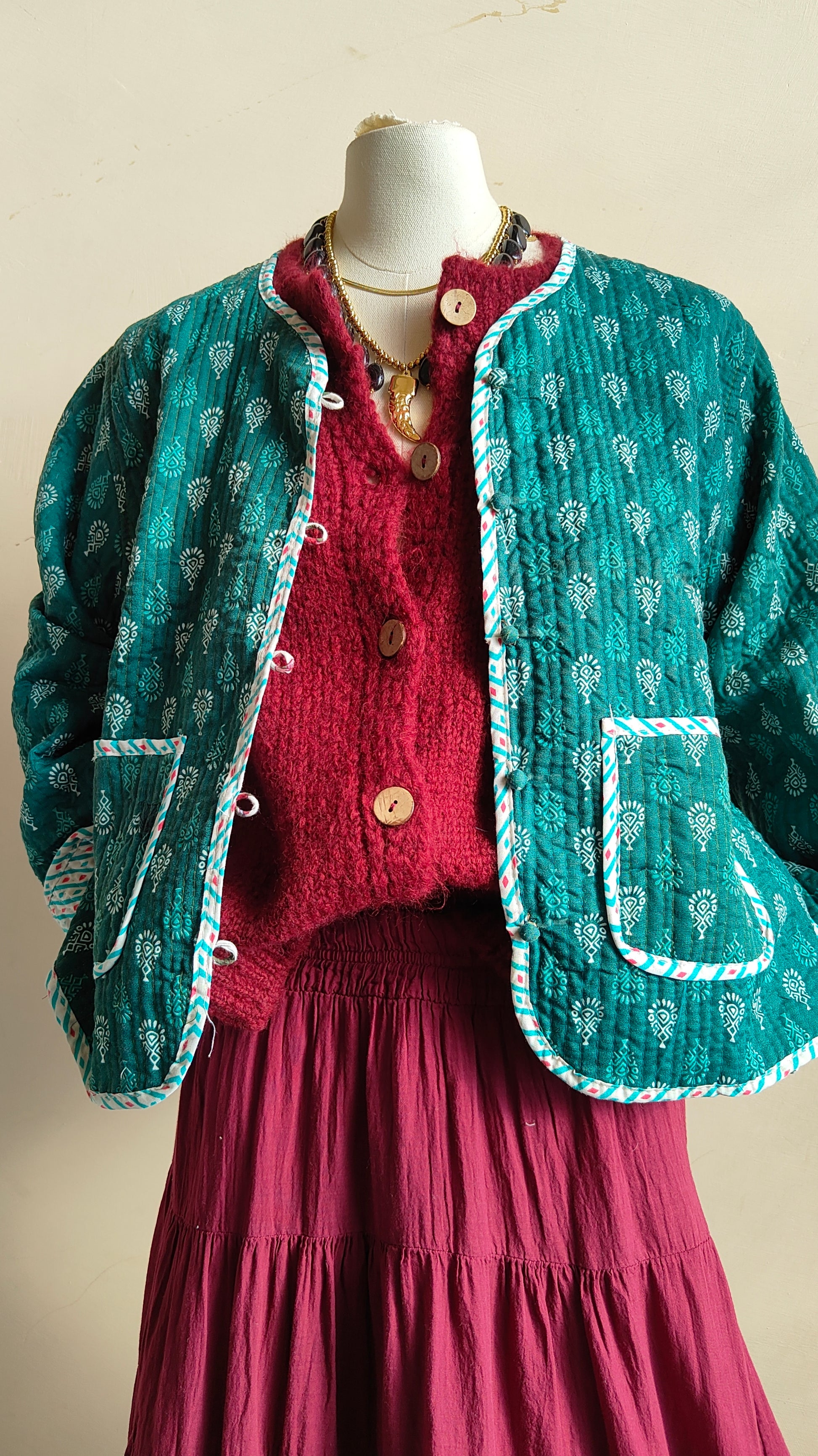 Trapuntata in cotone, morbida al tatto e con una vestibilità comoda, è ideale per completare look casual, ma anche per aggiungere personalità ad outfit più minimal.