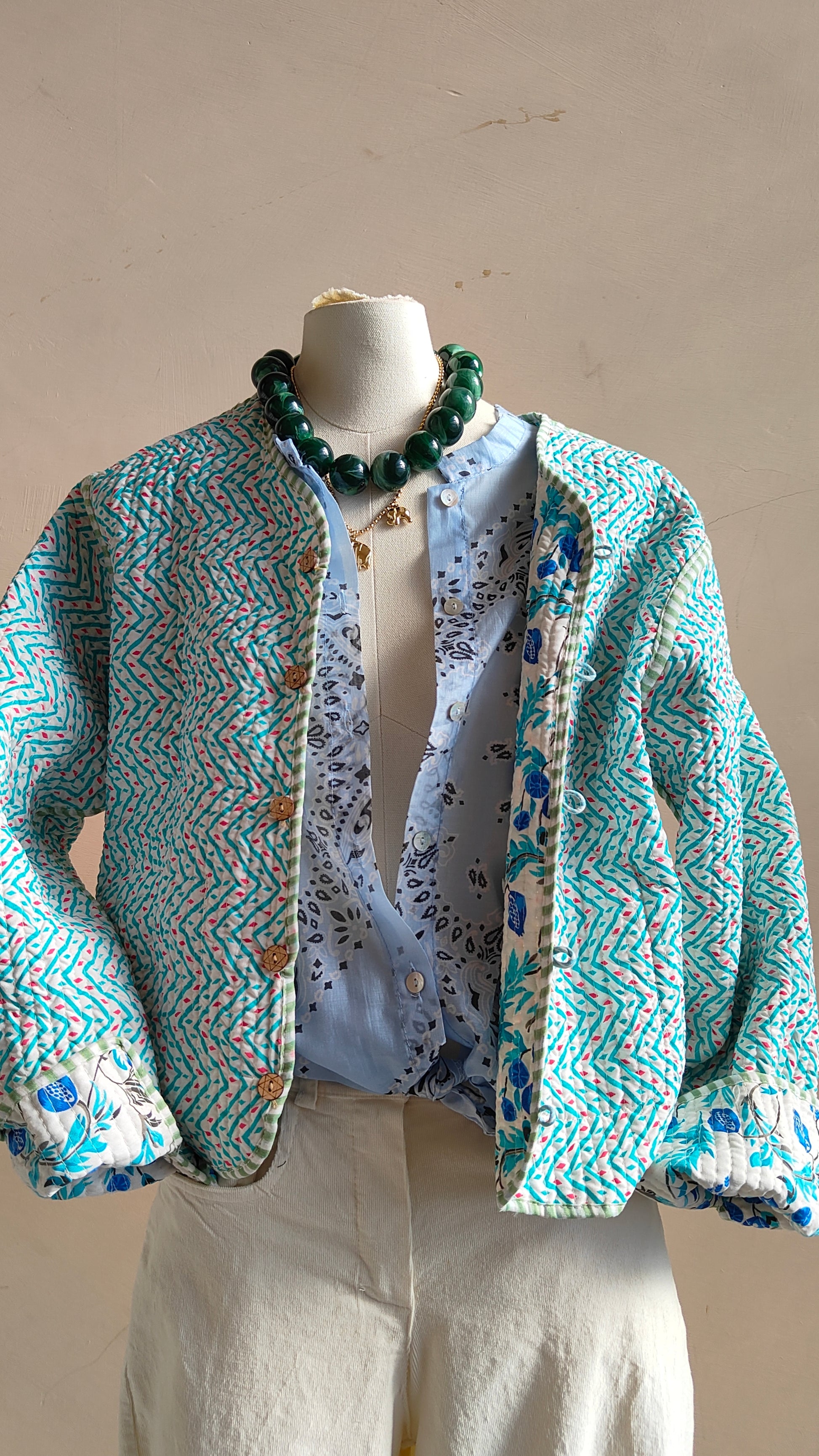 Trapuntata in cotone, morbida al tatto e con una vestibilità comoda, è ideale per completare look casual, ma anche per aggiungere personalità ad outfit più minimal.