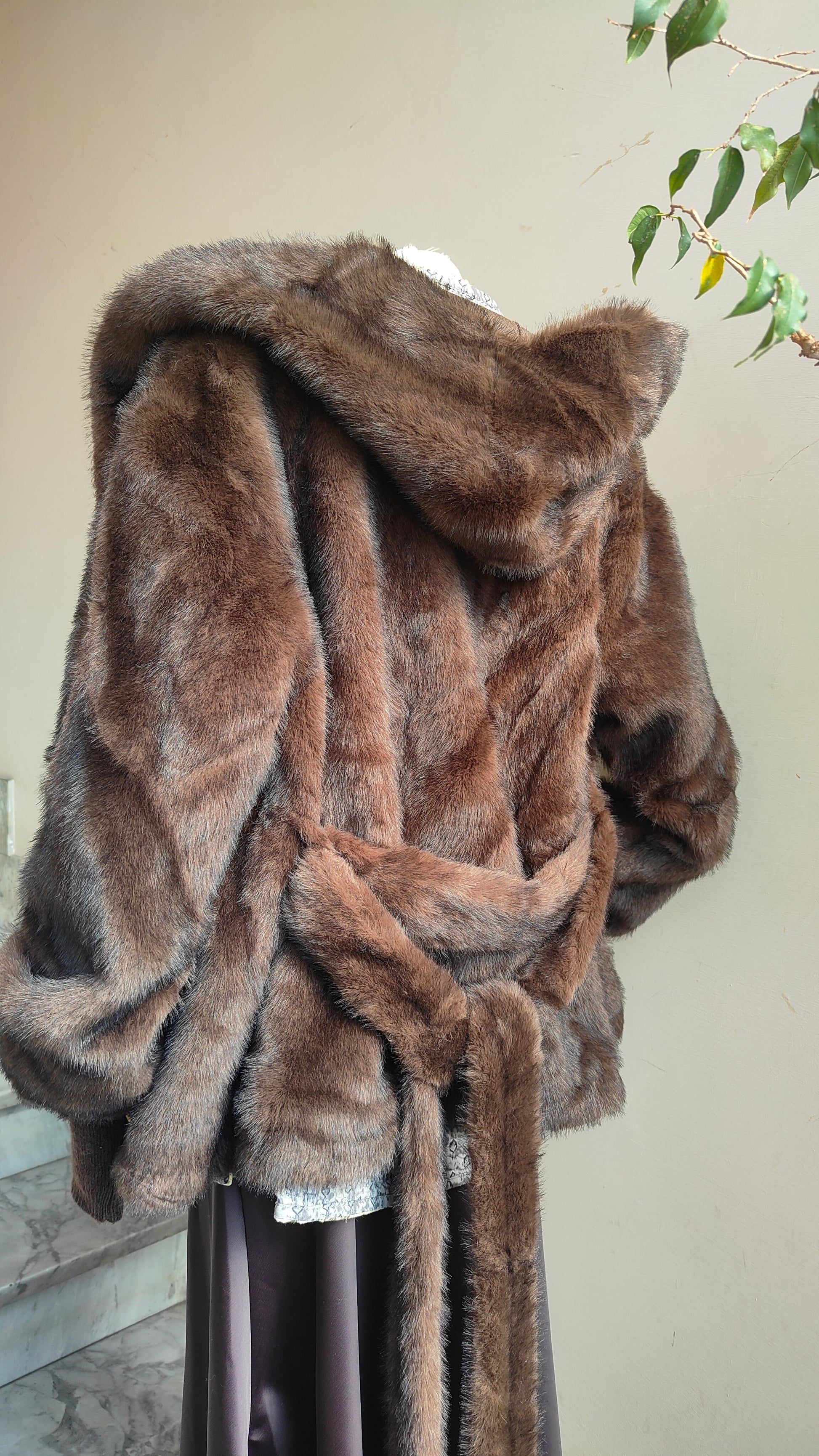 Un capo avvolgente e sofisticato, che unisce comfort e charme. La cintura in vita valorizza la silhouette, il cappuccio dona un tocco contemporaneo e le tasche laterali aggiungono praticità. Morbida e calda come un abbraccio, è la giacca perfetta per illuminare con stile le giornate più fredde.