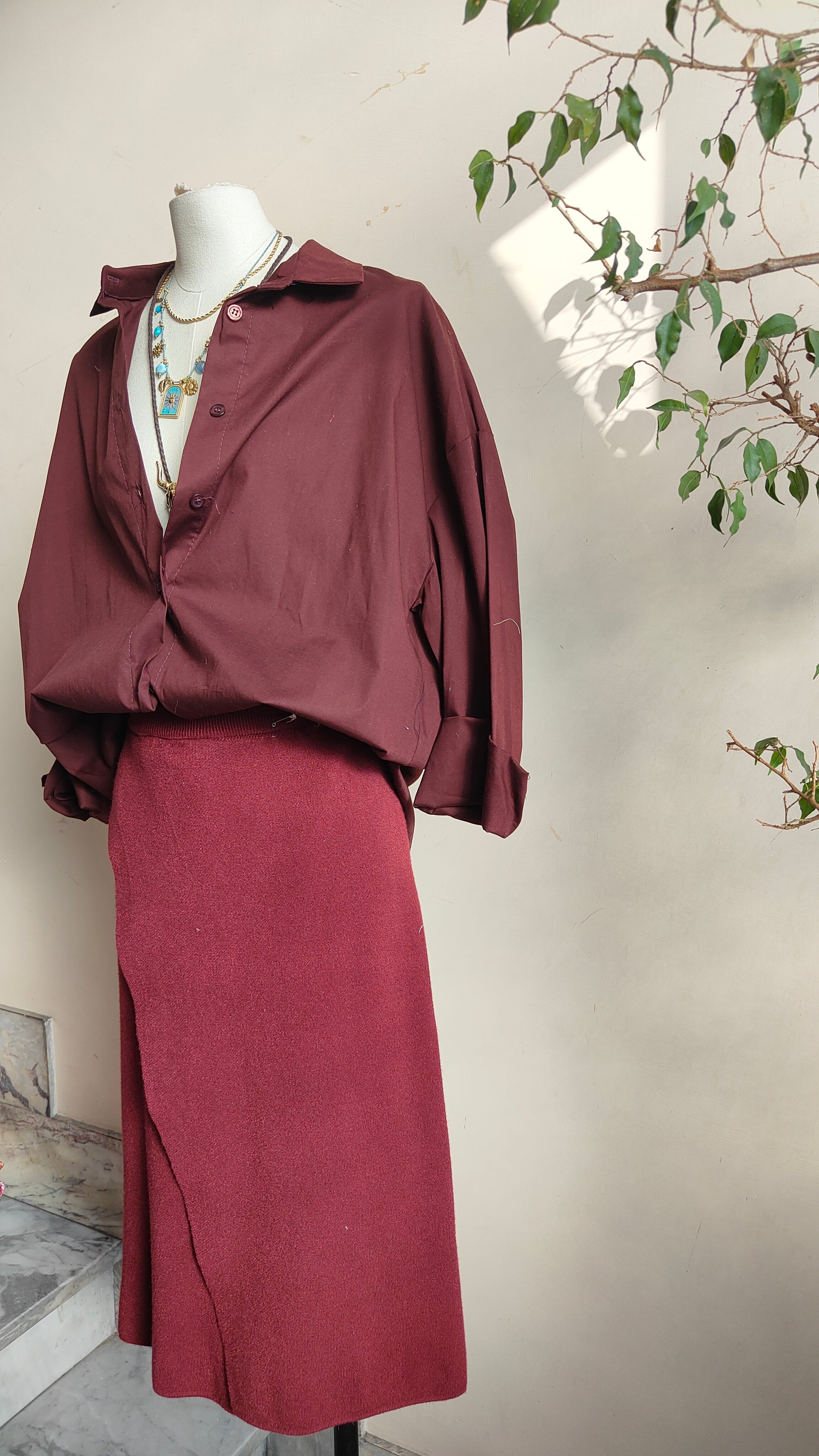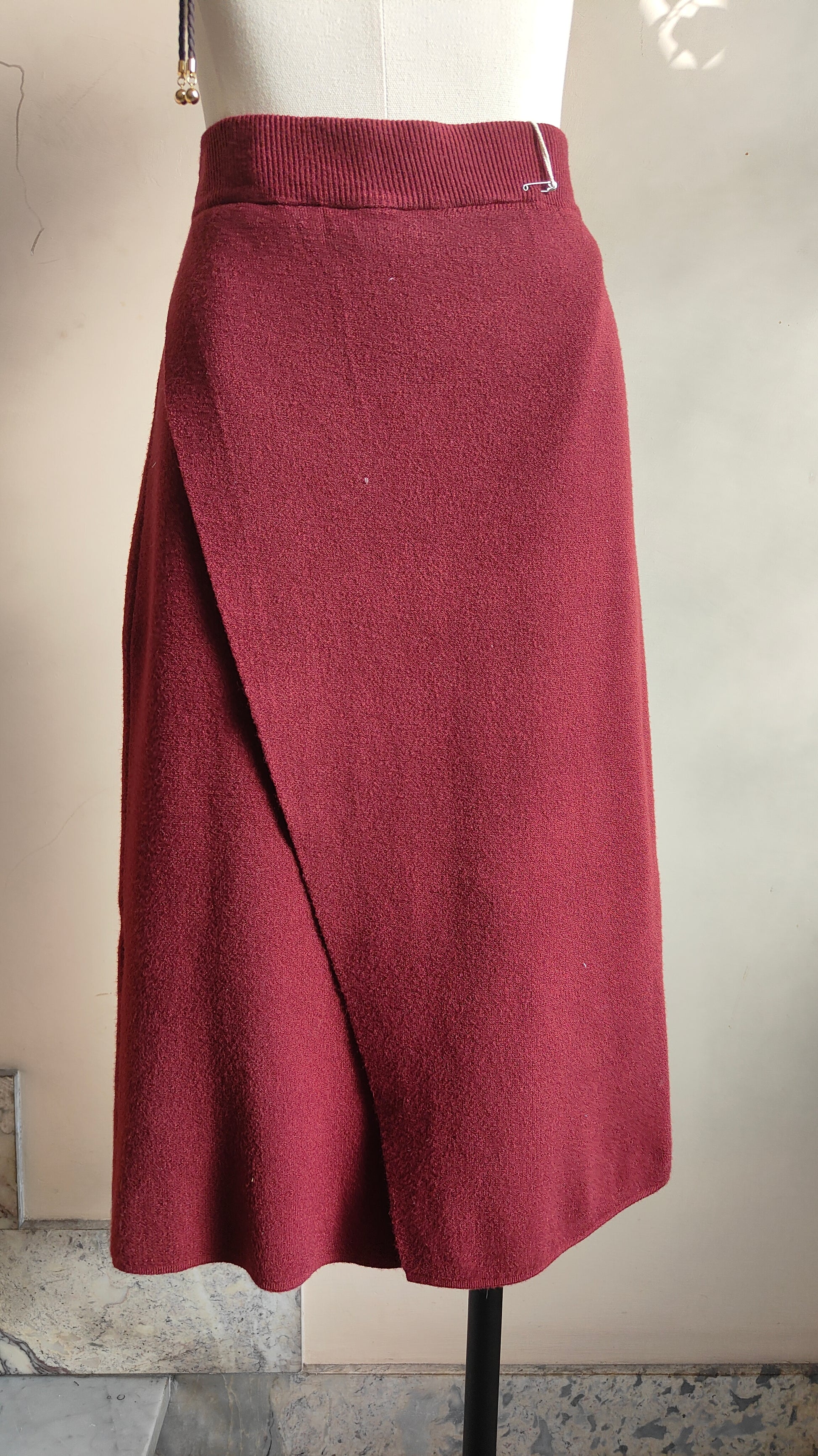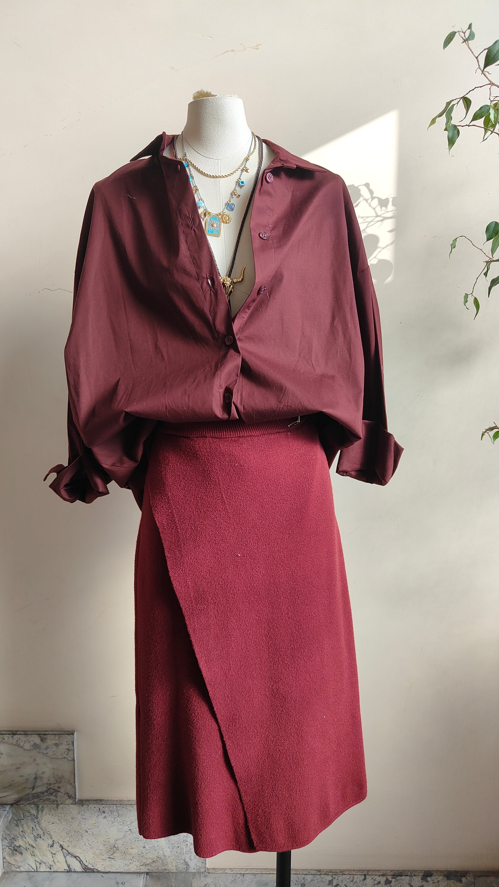Una gonna dallo stile raffinato e senza tempo, caratterizzata da una linea morbida e dall’elegante dettaglio sovrapposto sul davanti che ne valorizza il movimento. Facile da indossare e versatile, si abbina perfettamente sia a maglioni avvolgenti che a bluse leggere, diventando un capo essenziale del guardaroba femminile.