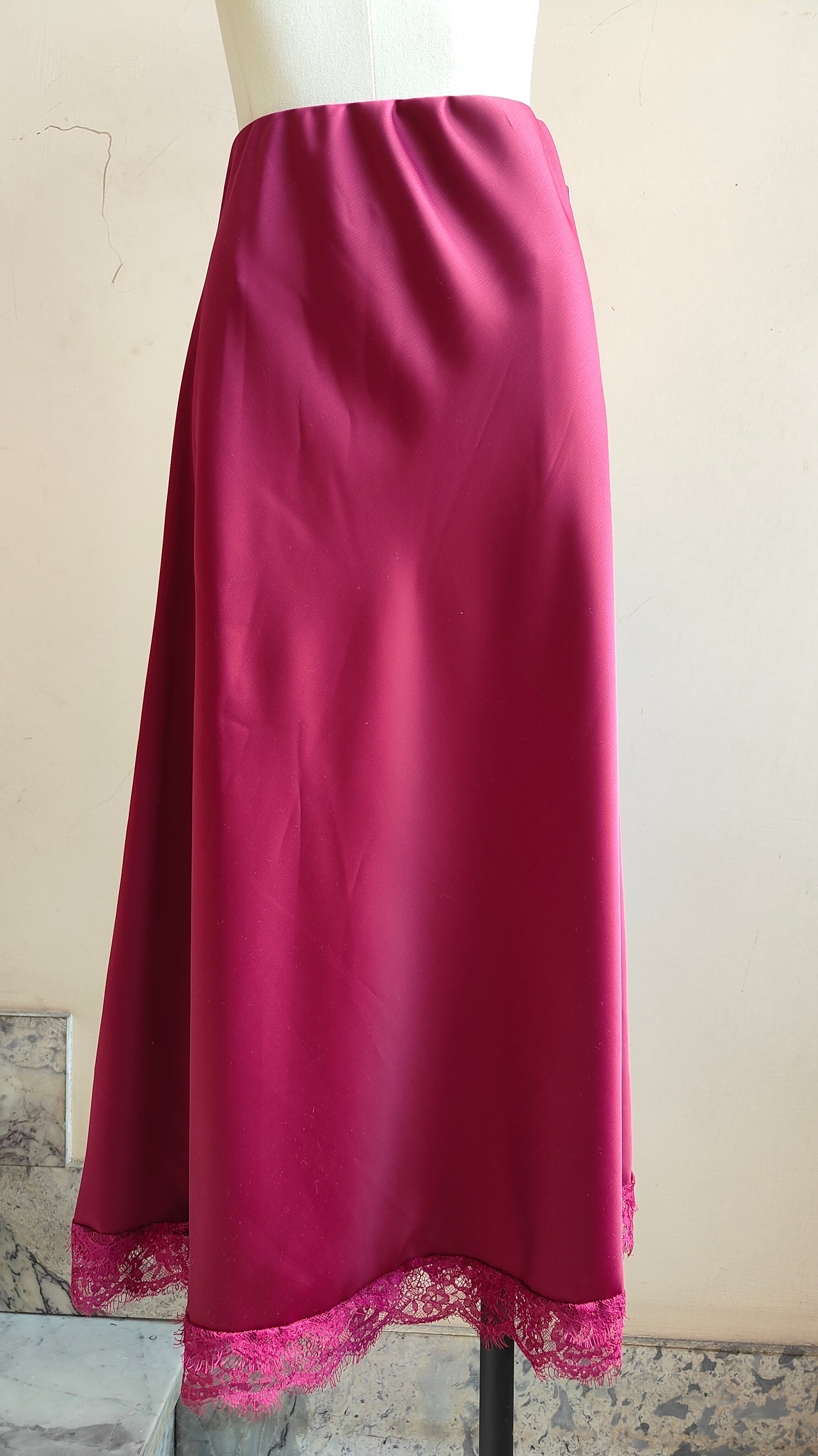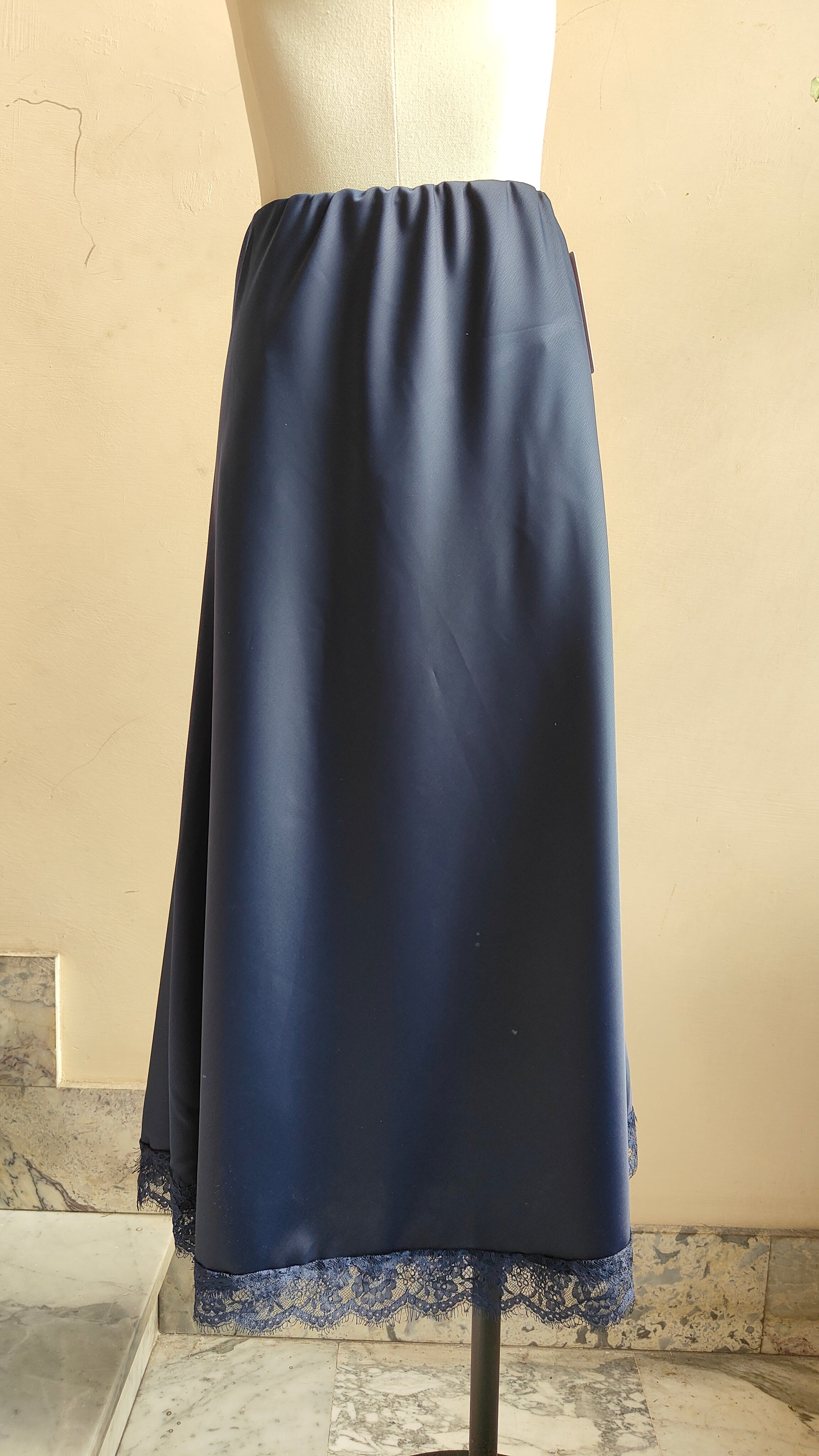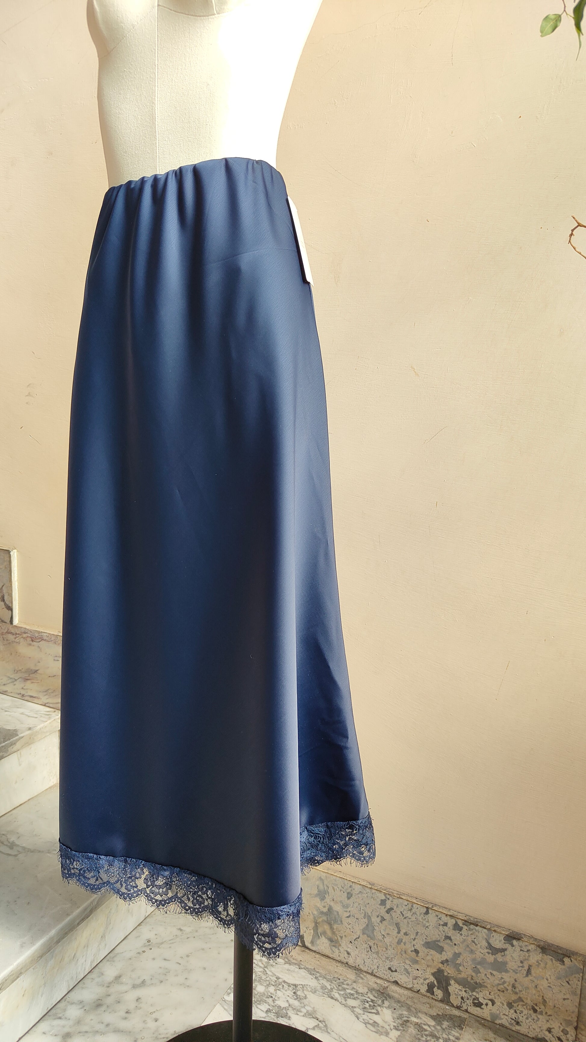 Eleganza essenziale in una gonna fluida dalla linea morbida, rifinita con delicato bordo in pizzo che aggiunge un tocco raffinato e femminile. Un capo versatile che si adatta sia a look da giorno con una camicia leggera, sia a mise serali abbinato a un top più ricercato.