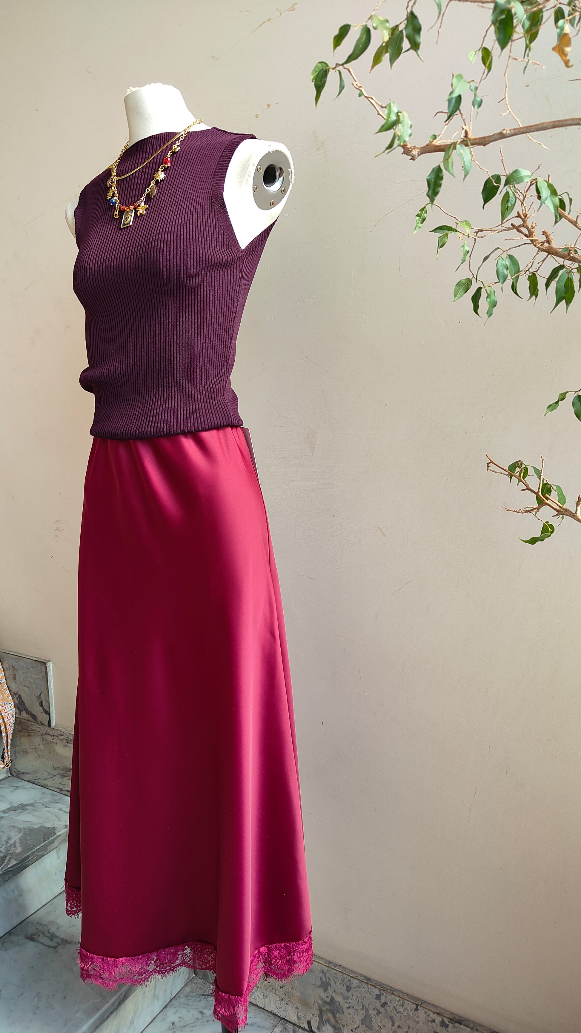 La vestibilità scivolata e l’elastico in vita la rendono comoda e facile da indossare, perfetta per creare outfit raffinati senza rinunciare al comfort.