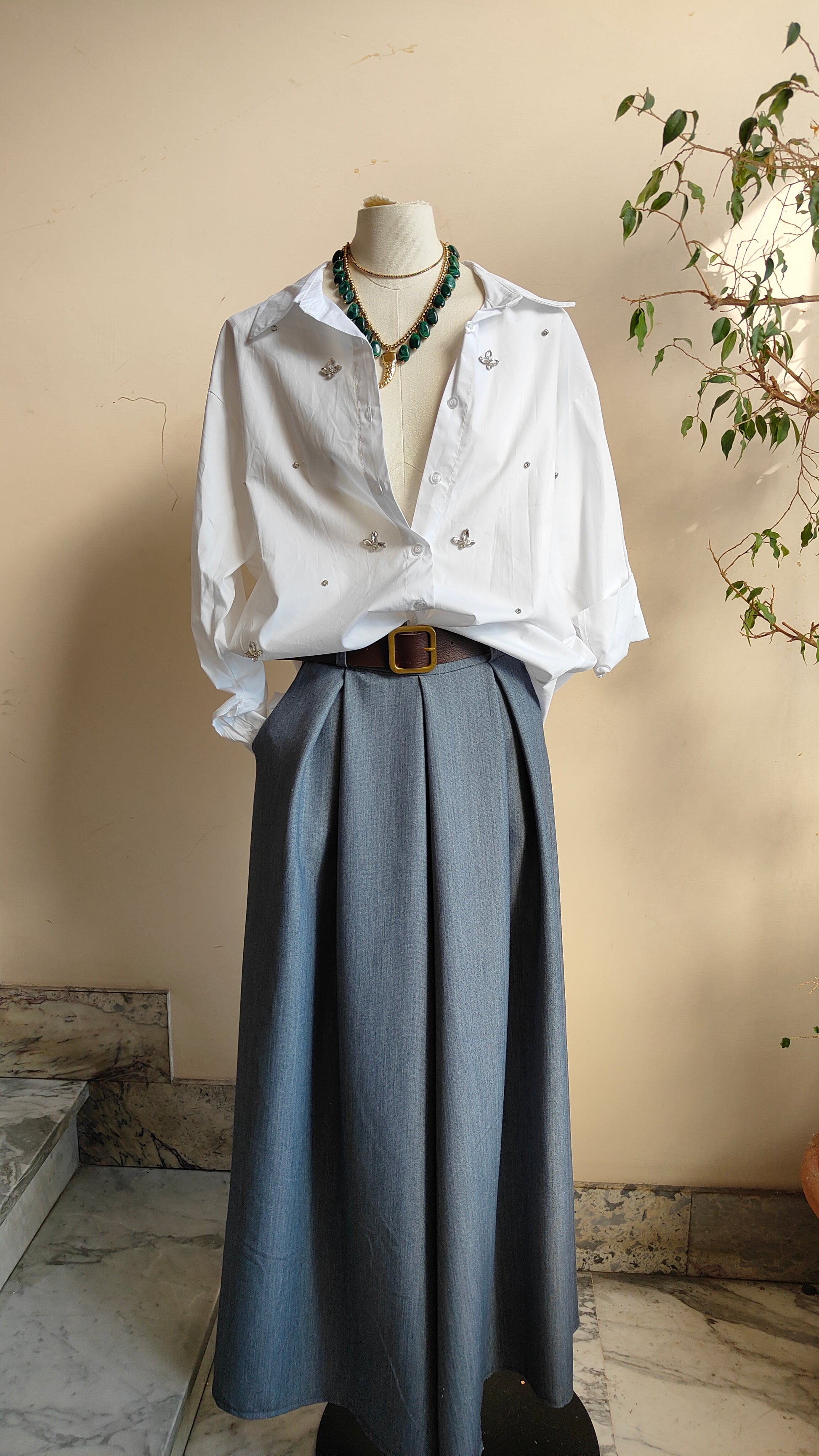 Un capo morbido, fluido e avvolgente, pensato per accompagnarti con stile durante le giornate d'autunno. Il taglio ampio dona l’effetto visivo di una gonna, pur mantenendo la praticità dei pantaloni. Il tessuto, corposo ma scorrevole, è ideale per la mezza stagione e si abbina con facilità a maglioni leggeri, camicie strutturate o cardigan oversize.