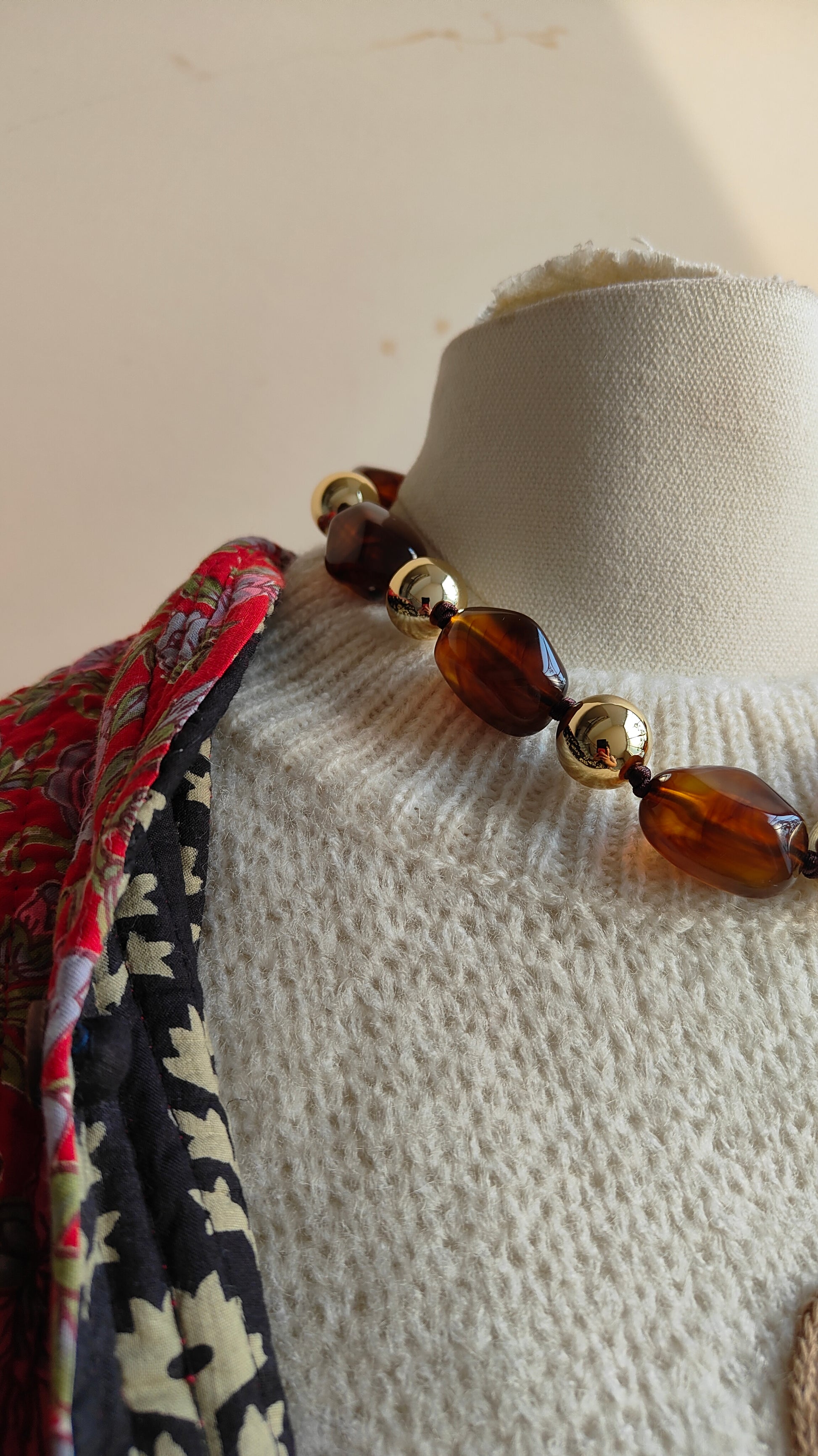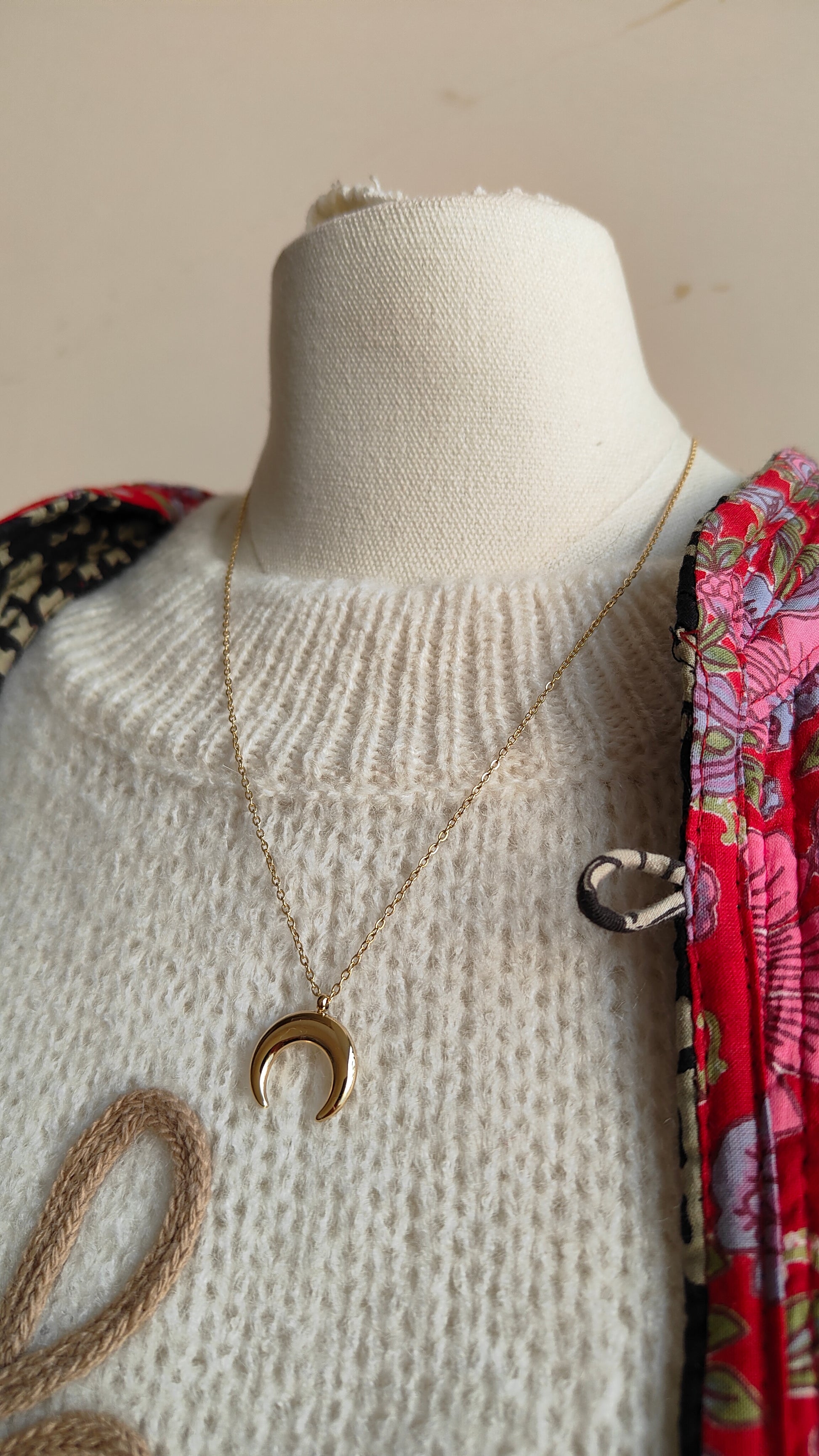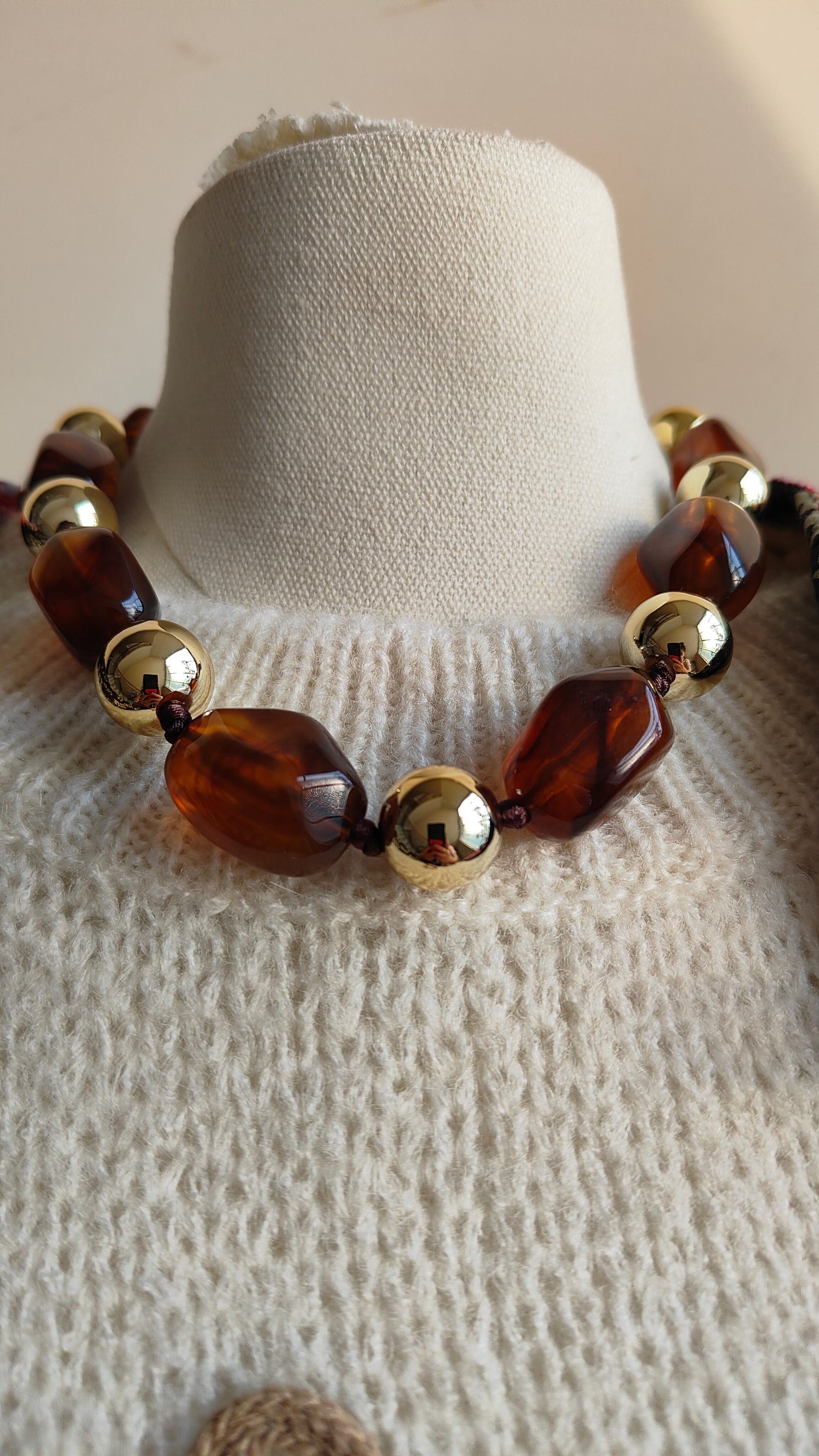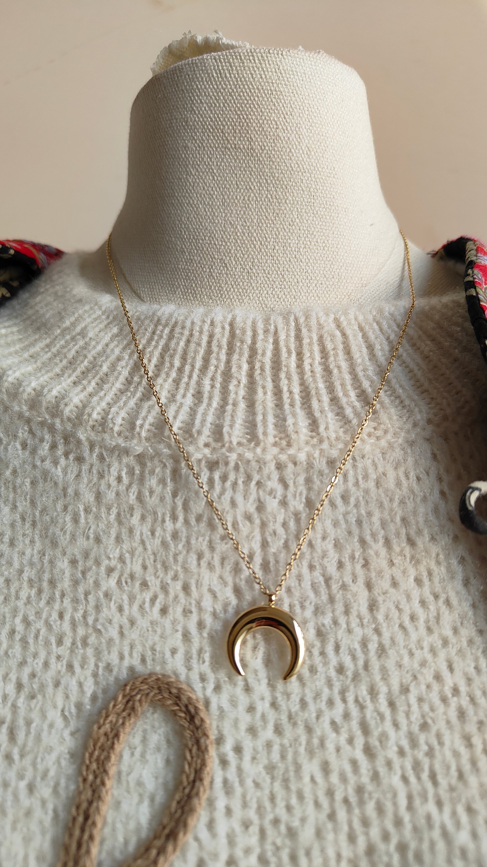 Un set pensato per completare ogni look con eleganza: una collana corta con perle irregolari effetto resina alternate a sfere metalliche, dall’anima decisa e raffinata, e una collana sottile con ciondolo a mezzaluna, delicata e luminosa. Da indossare insieme per un effetto layering ricercato oppure singolarmente per un tocco più essenziale.