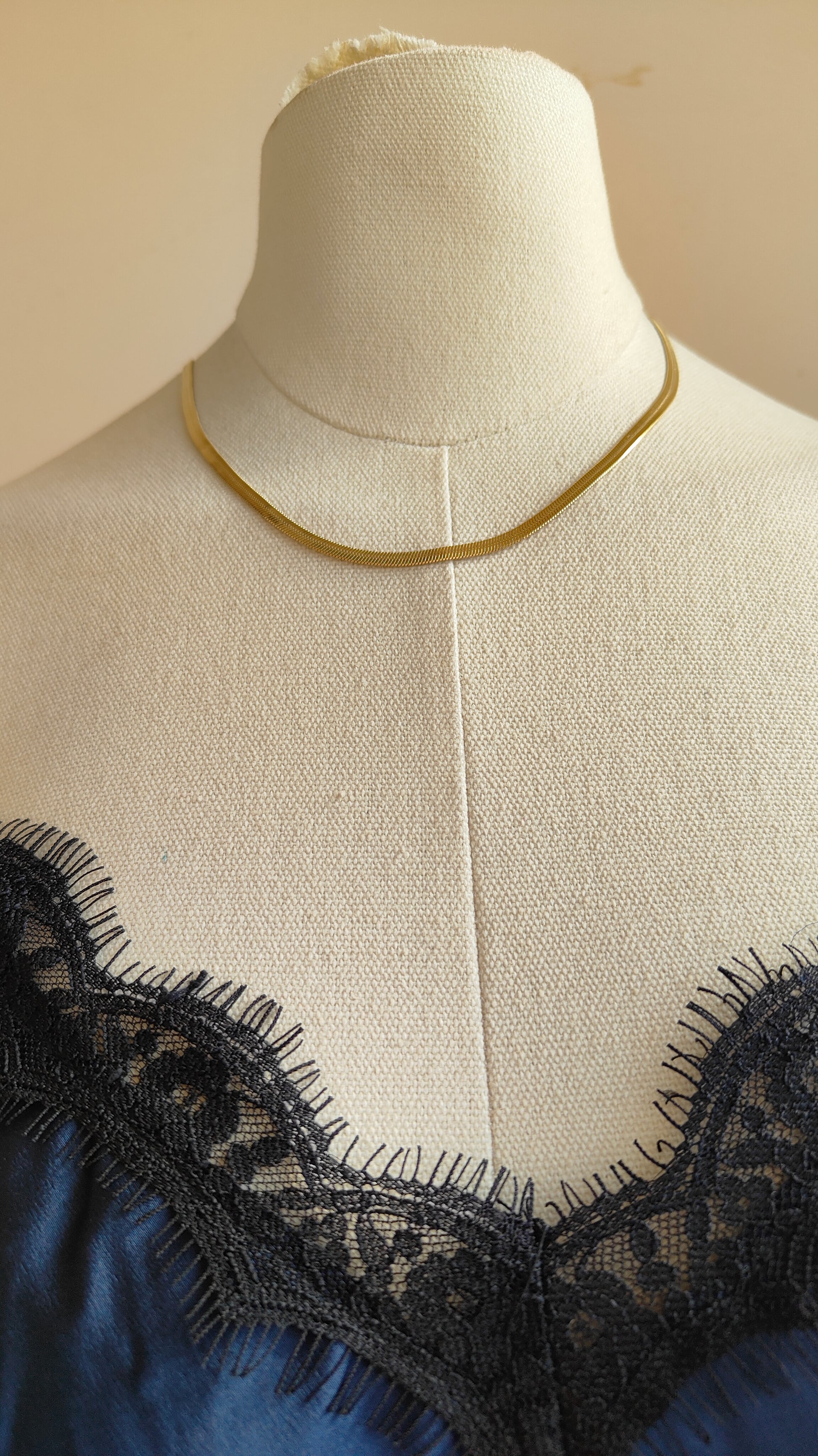 Collana Snake: catena piatta in acciaio inox dorato, essenziale e versatile, perfetta per ogni giorno.