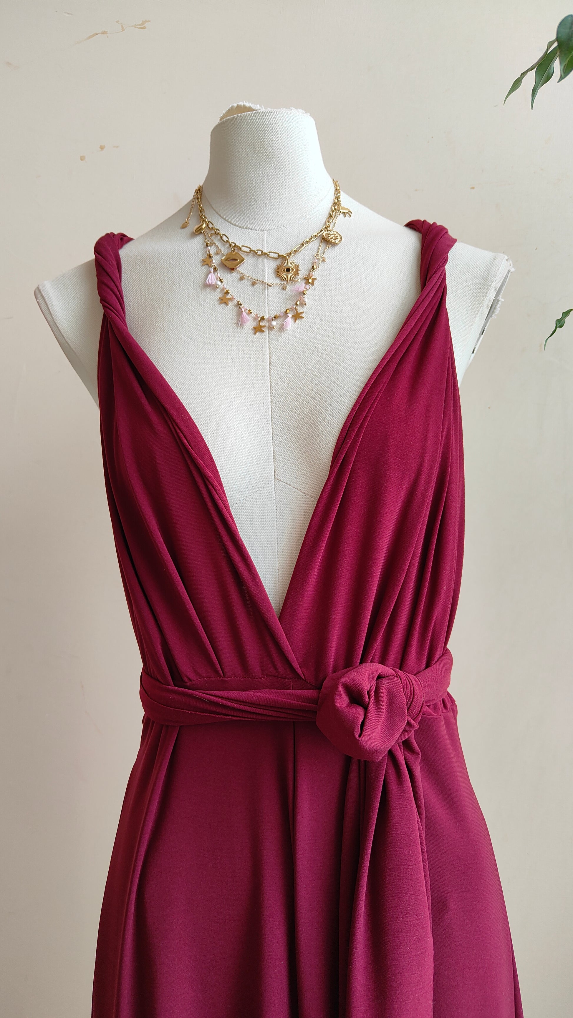 Realizzata in un tessuto fluido ed elasticizzato che valorizza ogni forma, è perfetta sia per occasioni eleganti che per serate estive, cerimonie, aperitivi o viaggi. Basta cambiare le scarpe e il gioco è fatto.